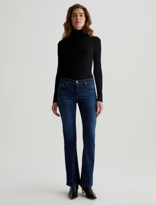 The Angel Vapor Wash low-rise bootcut jeans sit below the natural waist and fit close before opening to a subtle flare. Designed in 10 oz. Rouge Advanced Stretch Denim, this pair features a dark indigo wash that’s been achieved using our eco-friendly AG Vapor Wash™ technology. Our AG Vapor Wash™ process significantly r