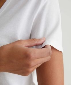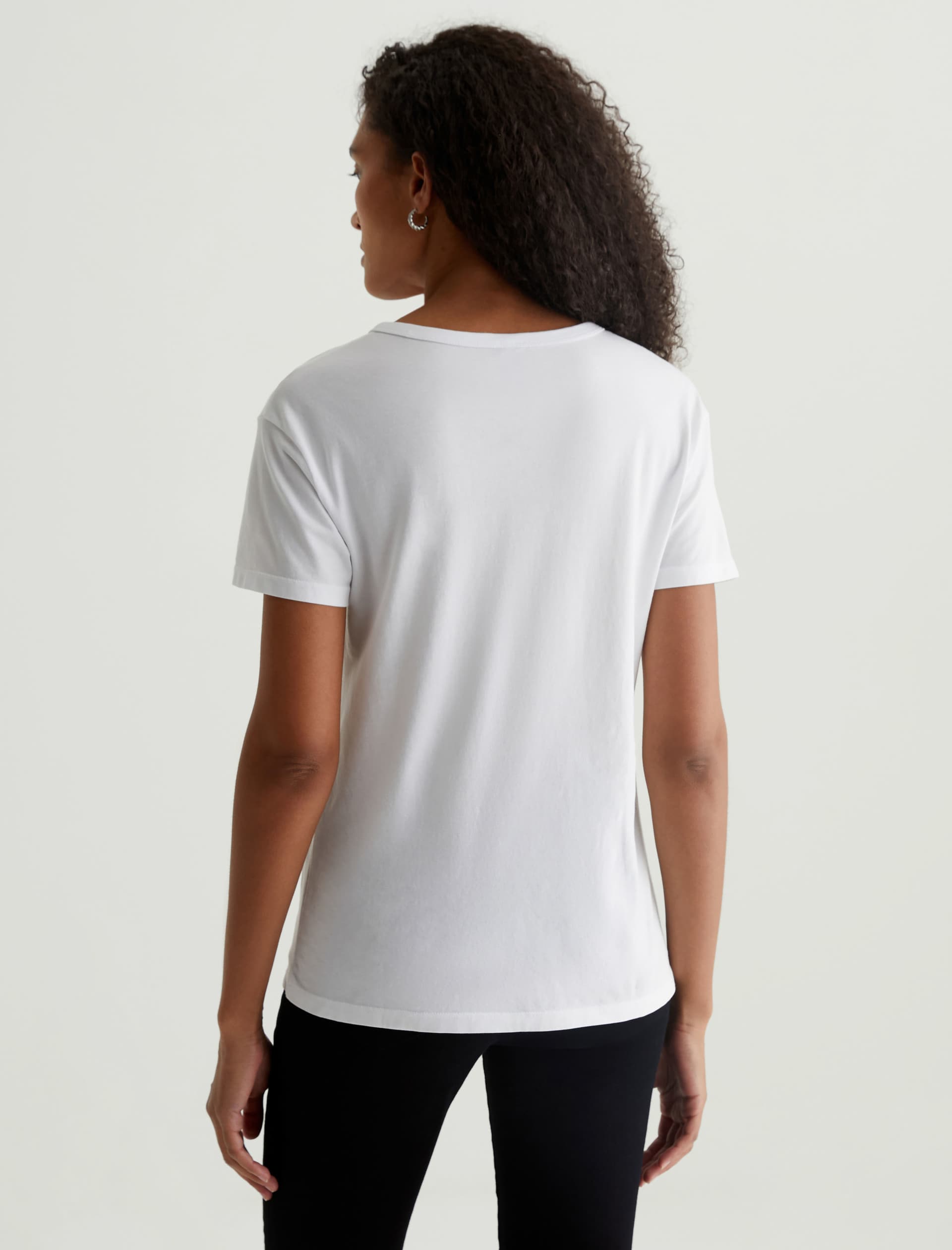 Aspen U-Neck is our classic U-neck tee that has a very easy neckline with a touch of femininity. The white tee offers a relaxed fit with a slightly dropped shoulder. An easy styling piece to dress up or down with a vintage style jean. Our Jersey Knit offers a luxurious comfort that is unrivaled—knitted with both S-twis