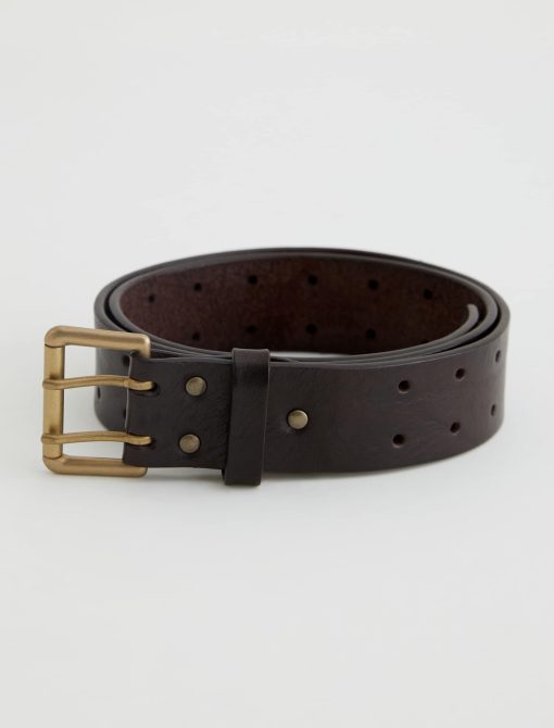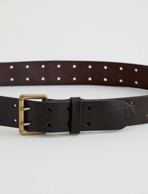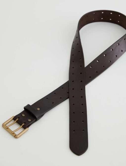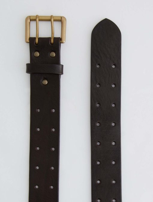 This Italian leather belt offers the perfect finishing touch to your ensembles. Smooth and supple in rich brown, it’s got two rows of holes and a double-pronged brass buckle.