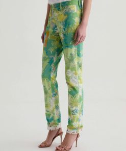 The Brinley Pant is a mid-rise straight jean made from suede stretch sateen. It features a slim fit that sits comfortably at the hips, complete with five pockets, belt loops, and cuffed hems for a clean, tailored finish. About the Art Project: Inspired by nature left to grow wild, this design captures the silhouettes o