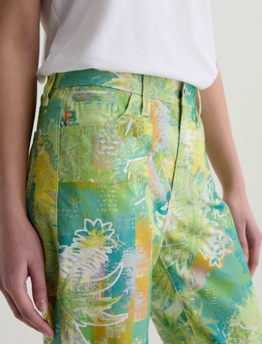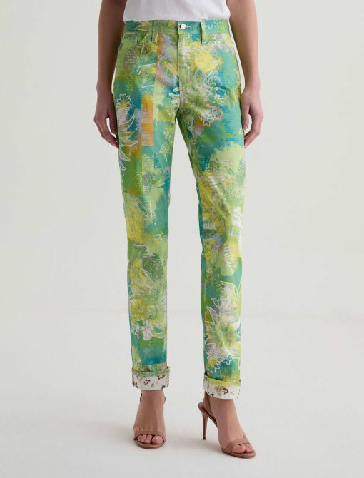 The Brinley Pant is a mid-rise straight jean made from suede stretch sateen. It features a slim fit that sits comfortably at the hips, complete with five pockets, belt loops, and cuffed hems for a clean, tailored finish. About the Art Project: Inspired by nature left to grow wild, this design captures the silhouettes o