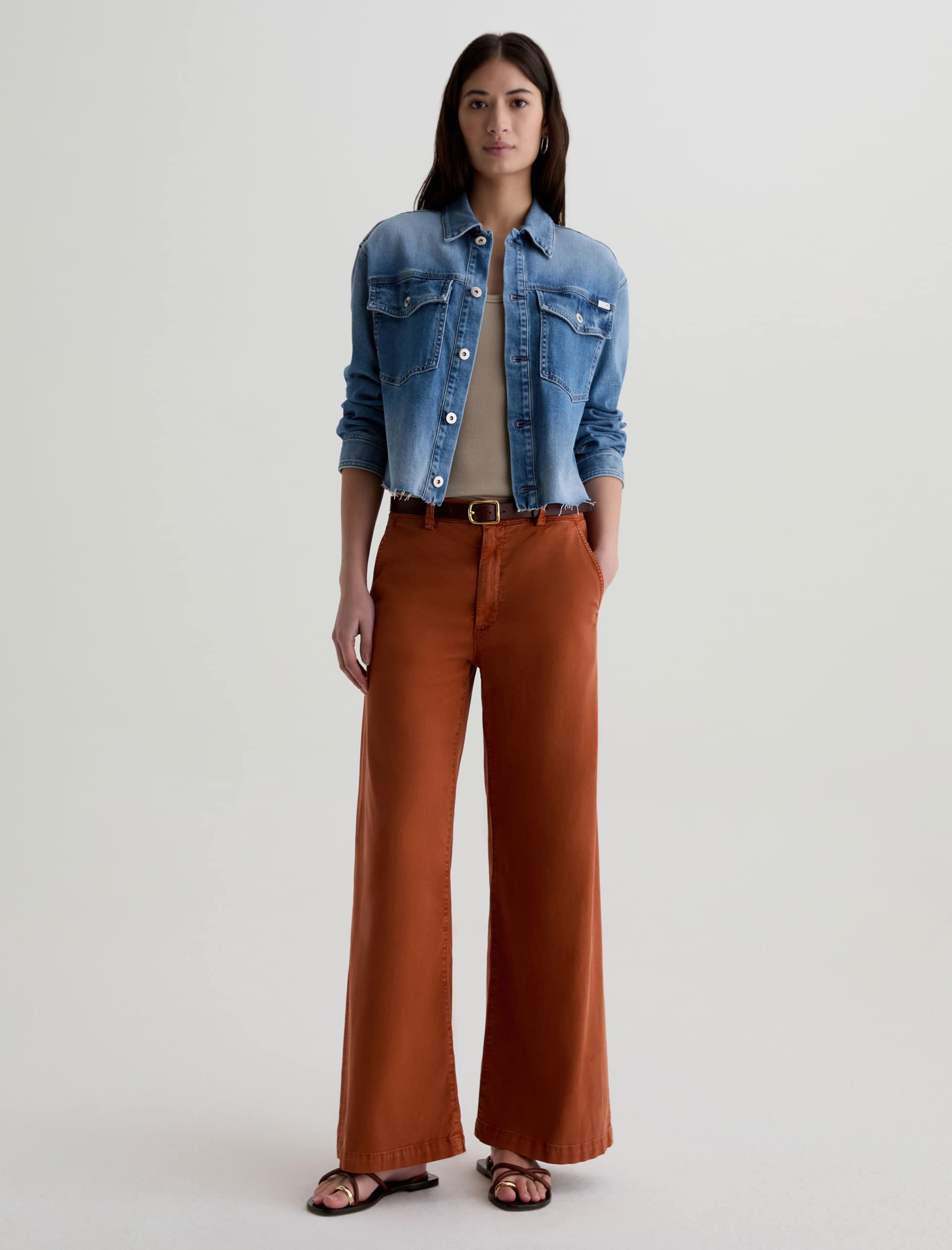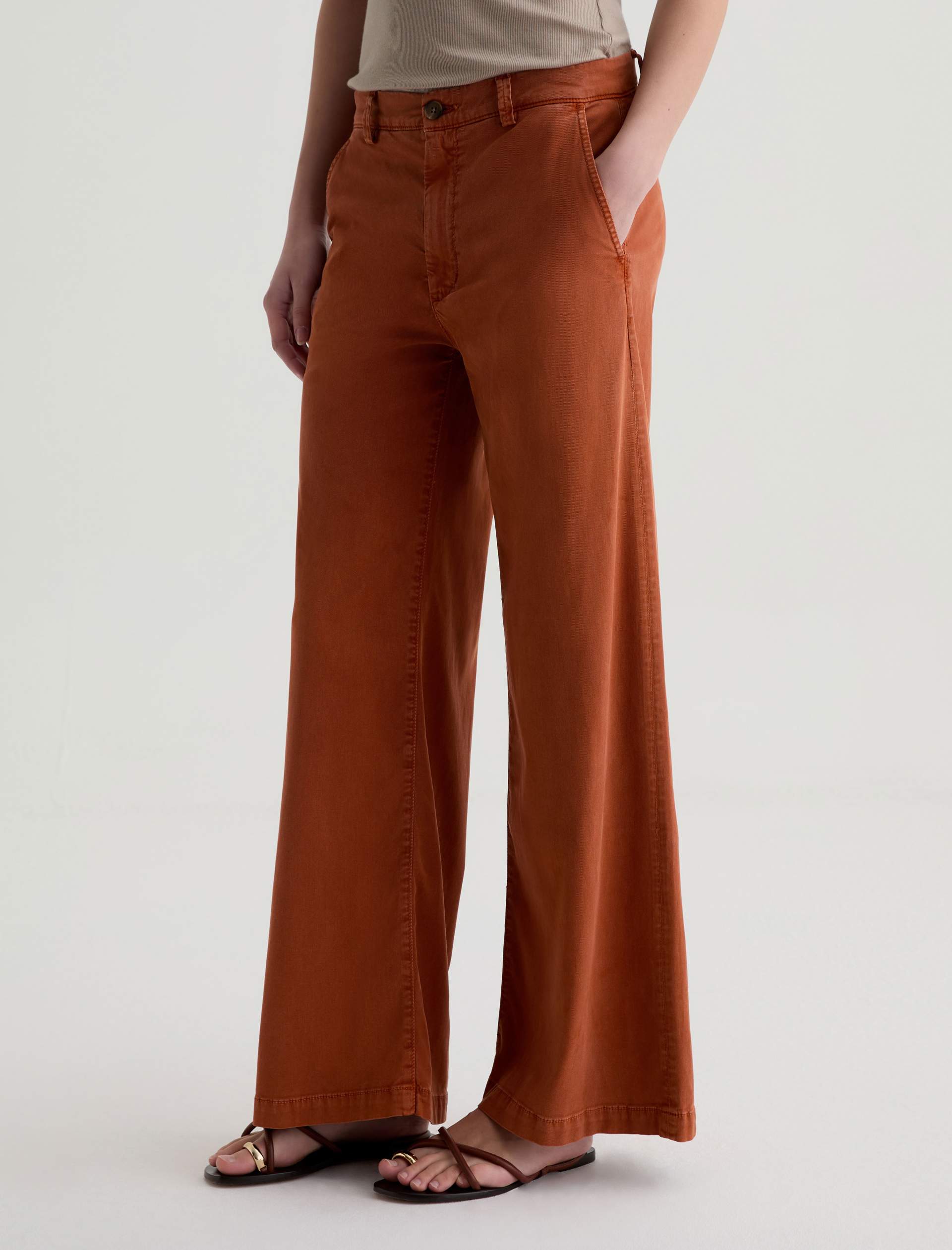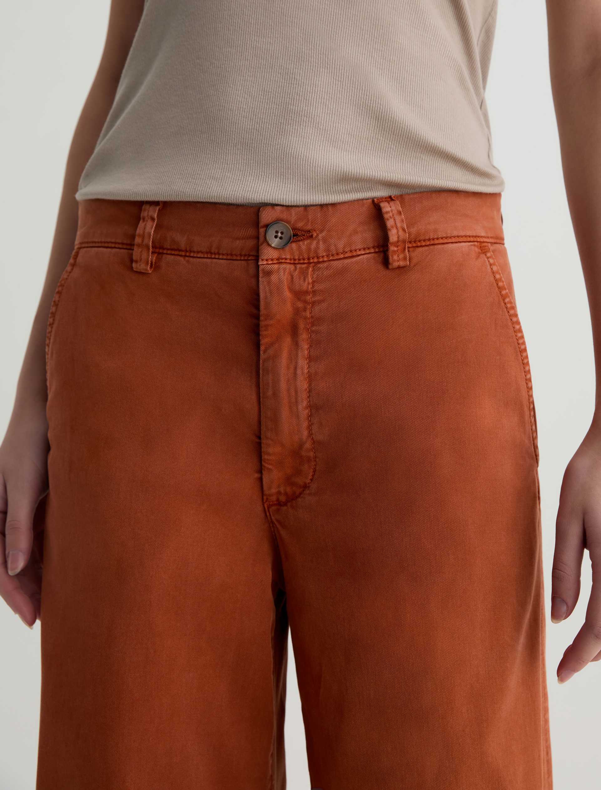 The Caiden Wide Leg is a tailored trouser with a mid-rise fit and a 29” inseam. Crafted from Coated Micro Ripstop in an orange wash, it features a structured wide-leg silhouette with welt pocket detailing for a polished finish.