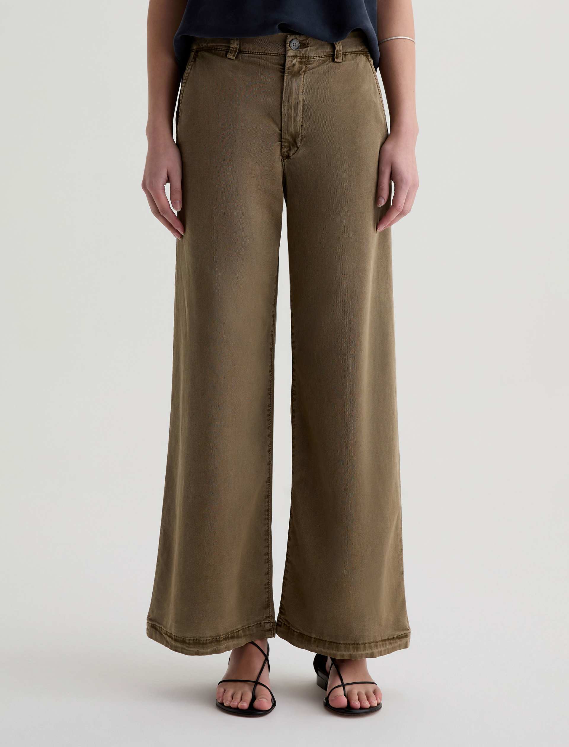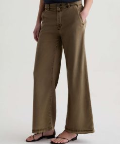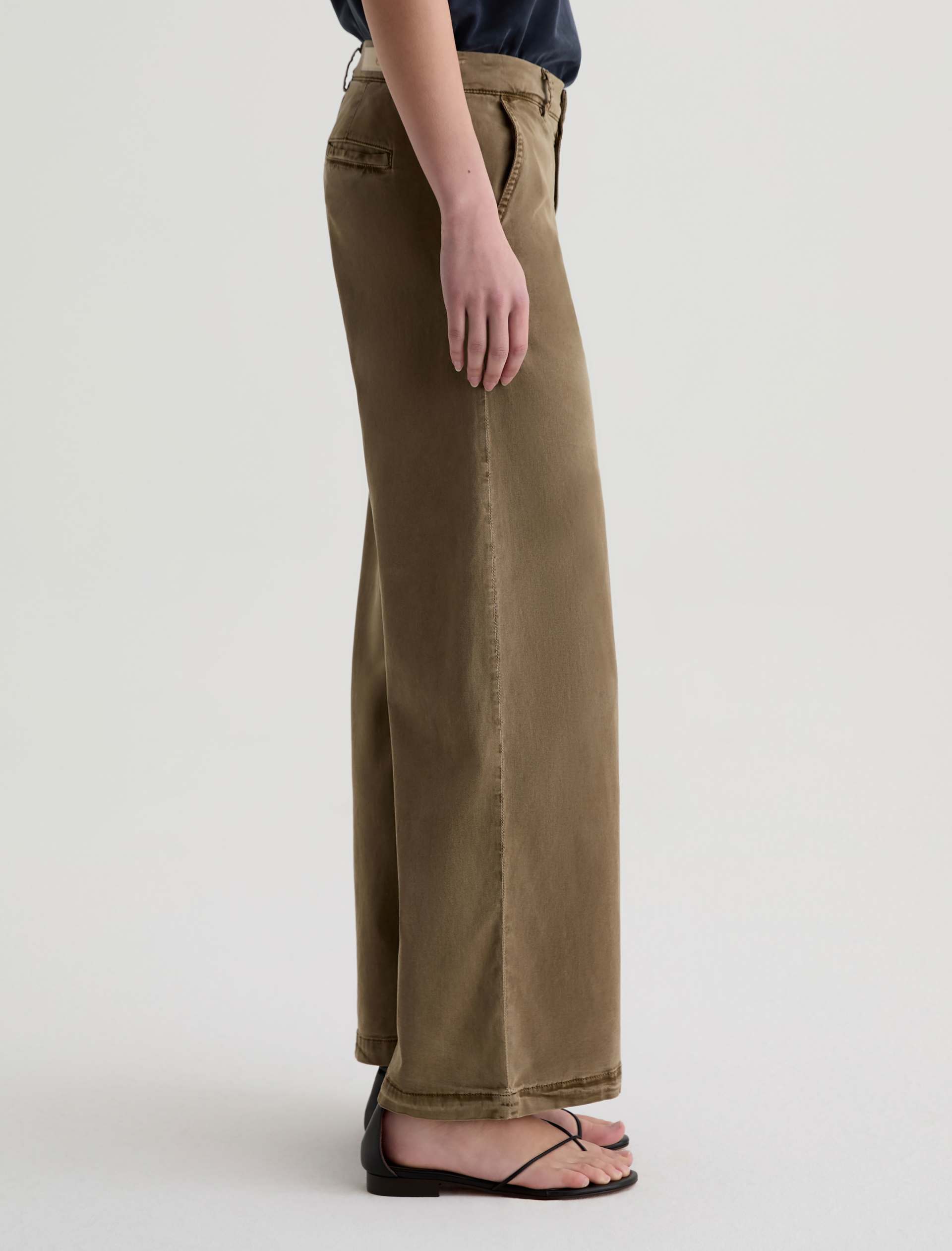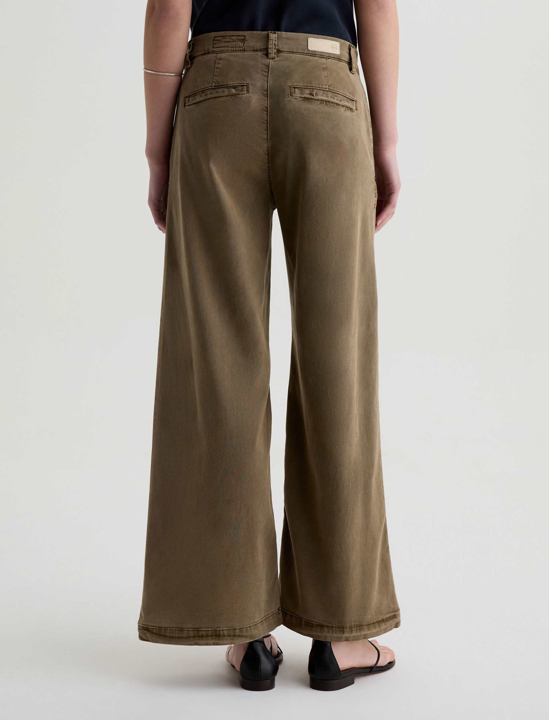 The Caiden Wide Leg is a tailored trouser with a mid-rise fit and a 29” inseam. Crafted from 6.2 oz Stretch Cotton Tencel Twill coated micro ripstop in an green wash, it features a structured wide-leg silhouette with welt pocket detailing for a polished finish.