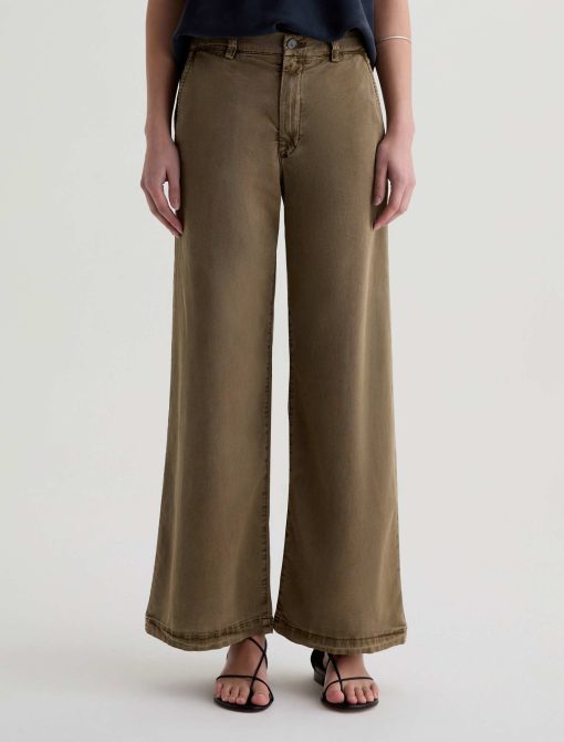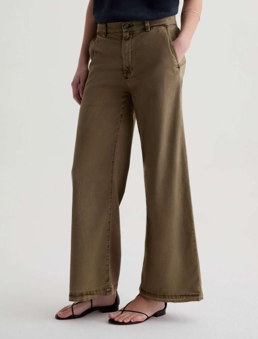 The Caiden Wide Leg is a tailored trouser with a mid-rise fit and a 29” inseam. Crafted from 6.2 oz Stretch Cotton Tencel Twill coated micro ripstop in an green wash, it features a structured wide-leg silhouette with welt pocket detailing for a polished finish.