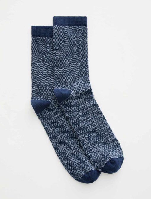 This sock is our classic crew sock. Featuring a diamond pattern, this pair has been knitted from a comfortable cotton blend and ribbed through the ankles.