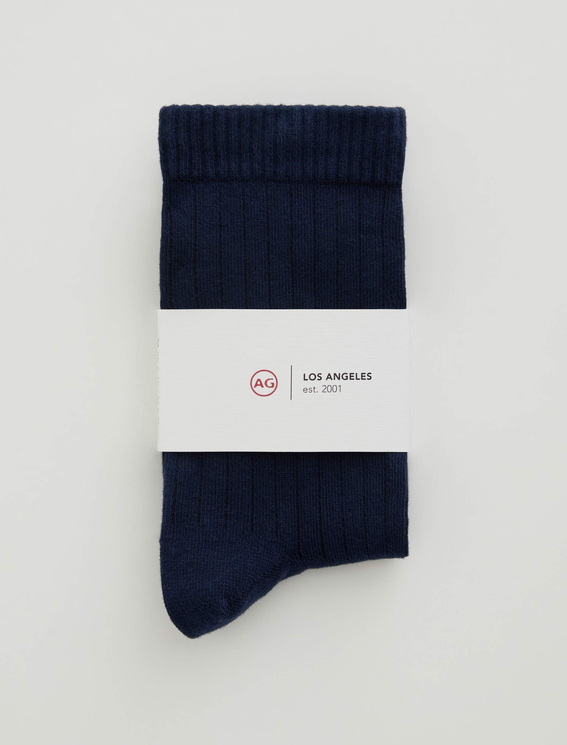 This sock is our classic ankle sock. Featuring a a solid black color, this pair has been knitted from a comfortable cotton blend and ribbed through the ankles.