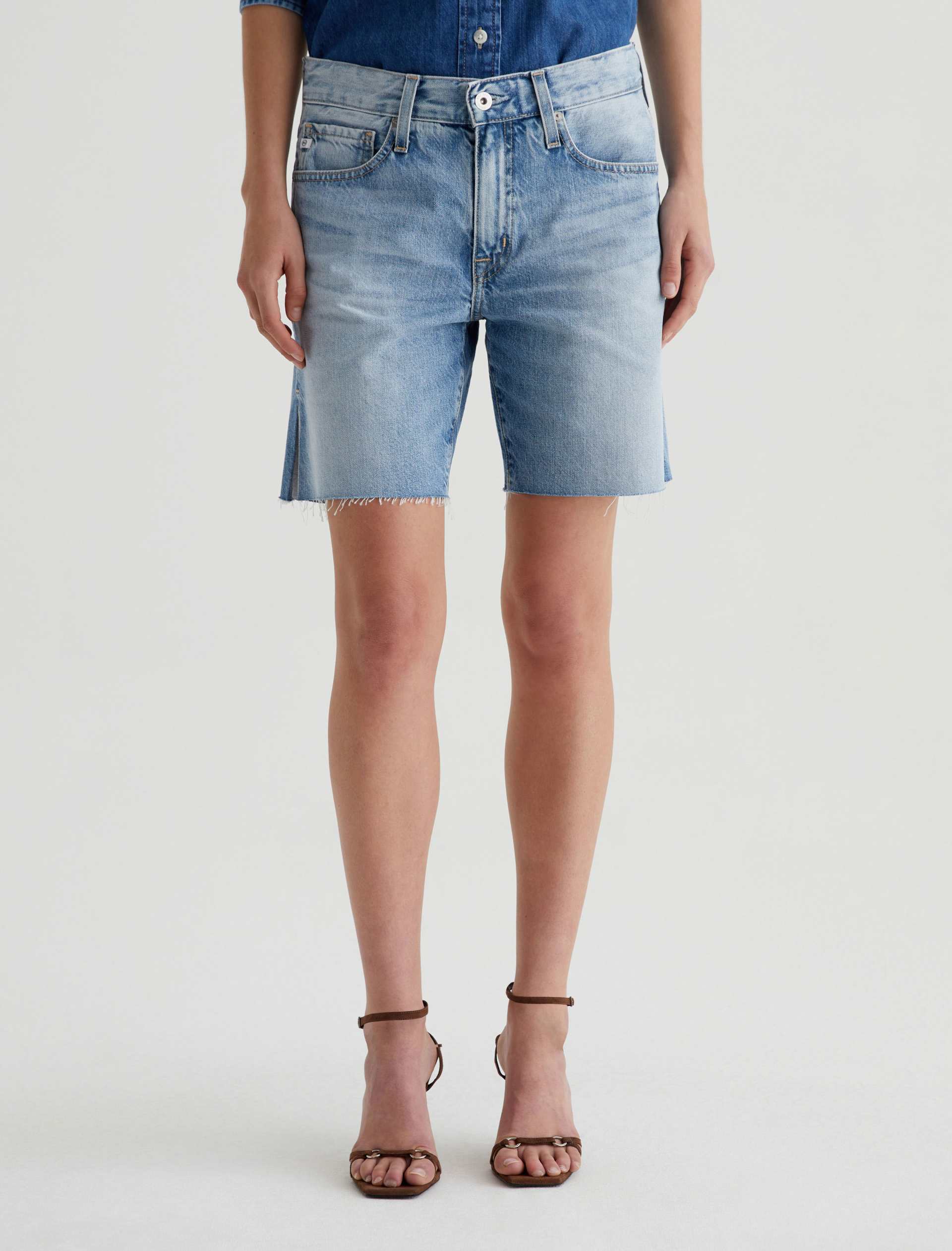 The Ex-Boyfriend Short is a mid-rise bermuda style with a slouchy fit, raw hems, and slit detailing at the sides. Designed in rigid 11.75 oz. Legion Denim from Japan, these five-pocket cutoff shorts come in a light wash that’s faded down for a naturally lived-in character.