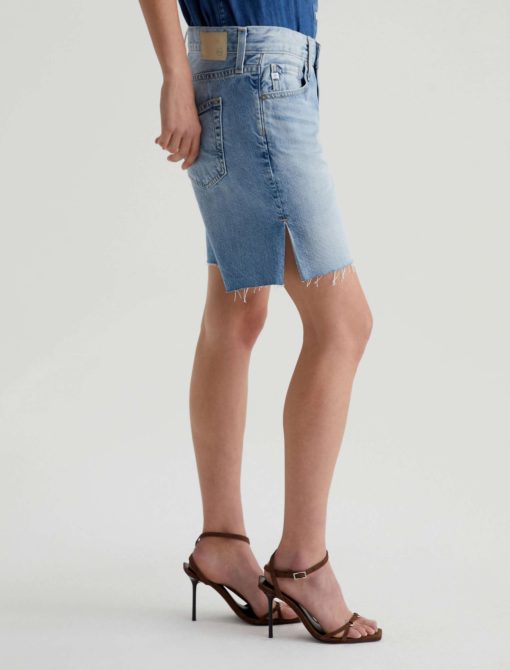 The Ex-Boyfriend Short is a mid-rise bermuda style with a slouchy fit, raw hems, and slit detailing at the sides. Designed in rigid 11.75 oz. Legion Denim from Japan, these five-pocket cutoff shorts come in a light wash that’s faded down for a naturally lived-in character.