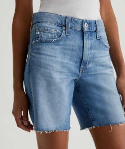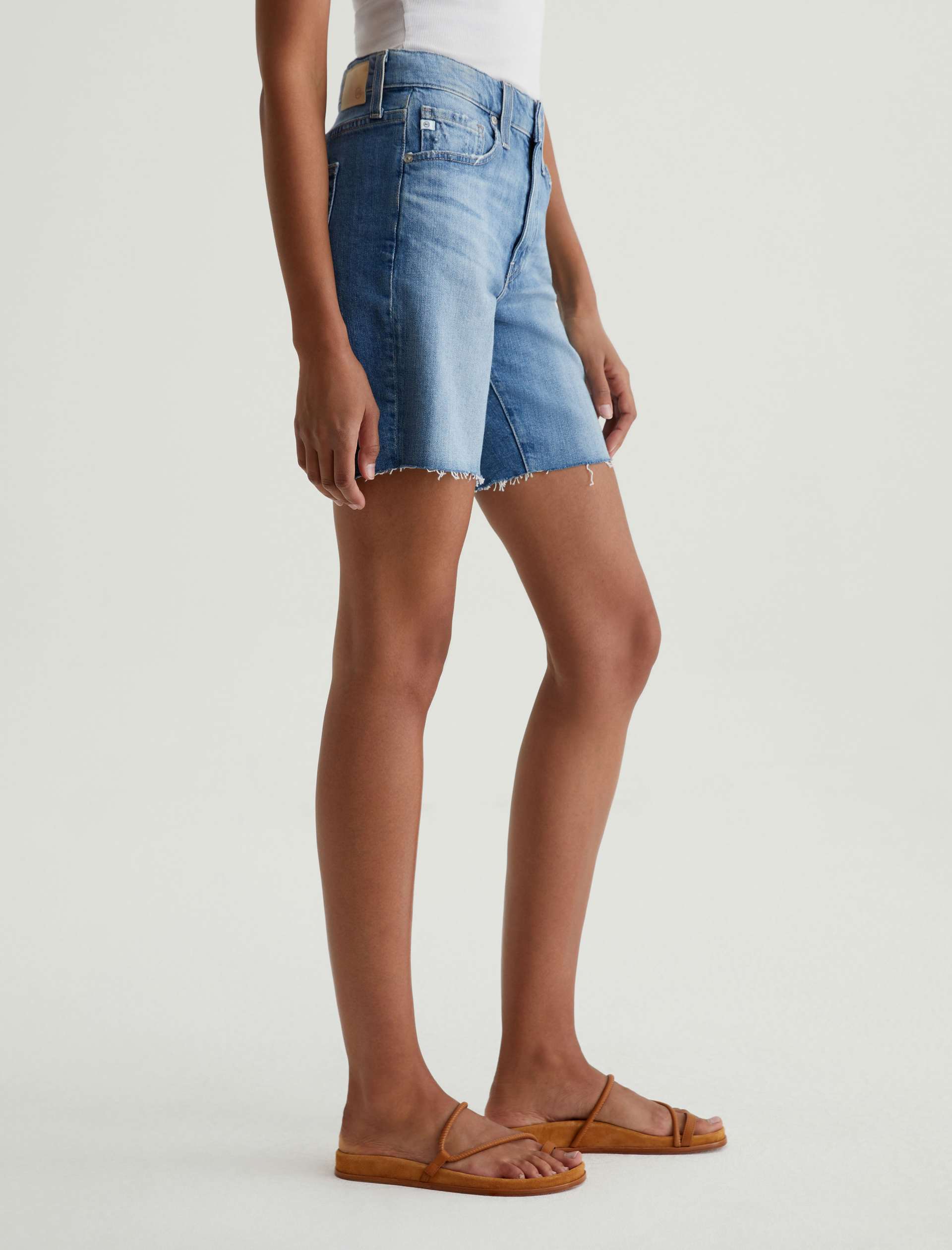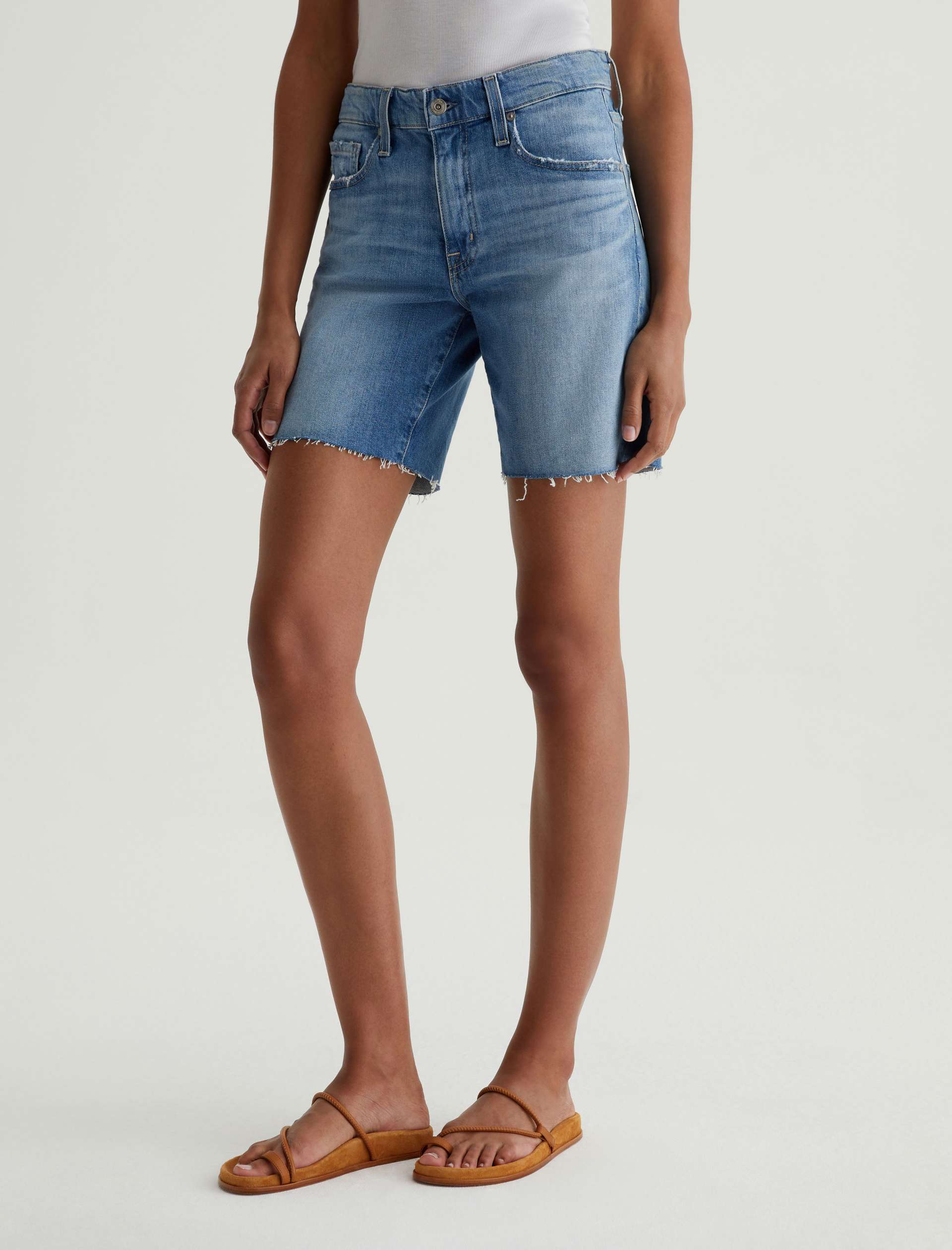 The Ex-Boyfriend Short is a mid-rise bermuda style with a slouchy fit and raw hems. Designed in 11.75 oz. Vintage Comfort Stretch Denim from Italy, these women’s cutoff shorts come in a faded medium wash with hints of distressing at the pockets.