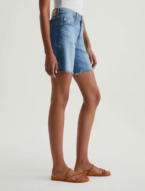 The Ex-Boyfriend Short is a mid-rise bermuda style with a slouchy fit and raw hems. Designed in 11.75 oz. Vintage Comfort Stretch Denim from Italy, these women’s cutoff shorts come in a faded medium wash with hints of distressing at the pockets.