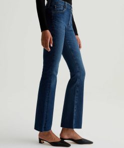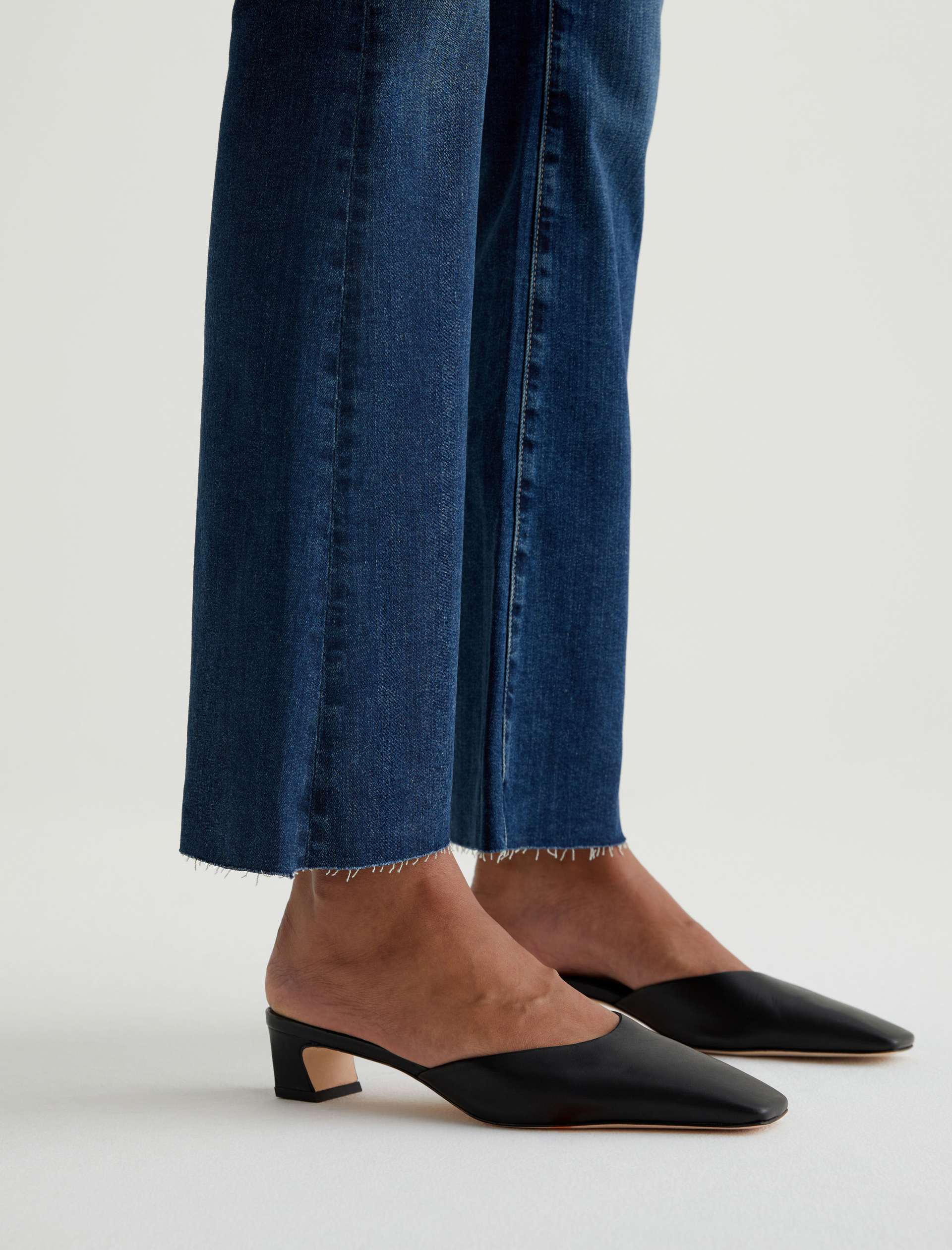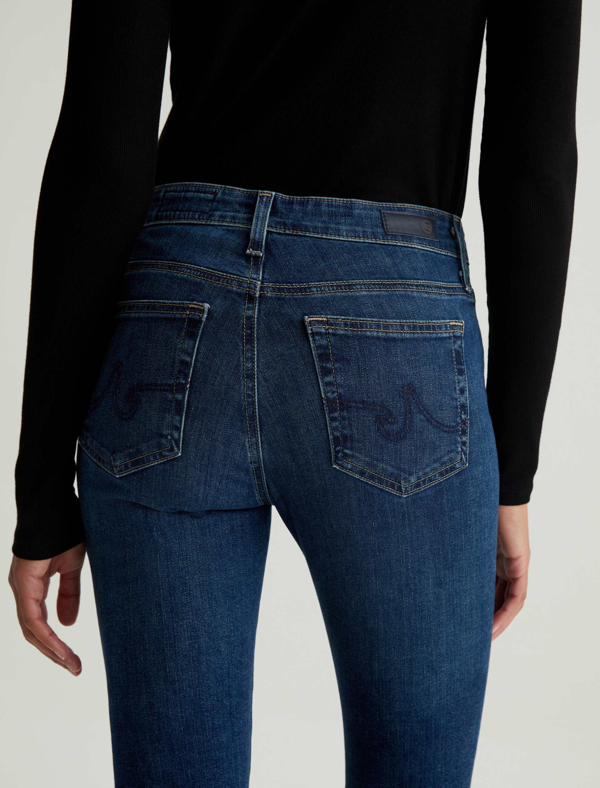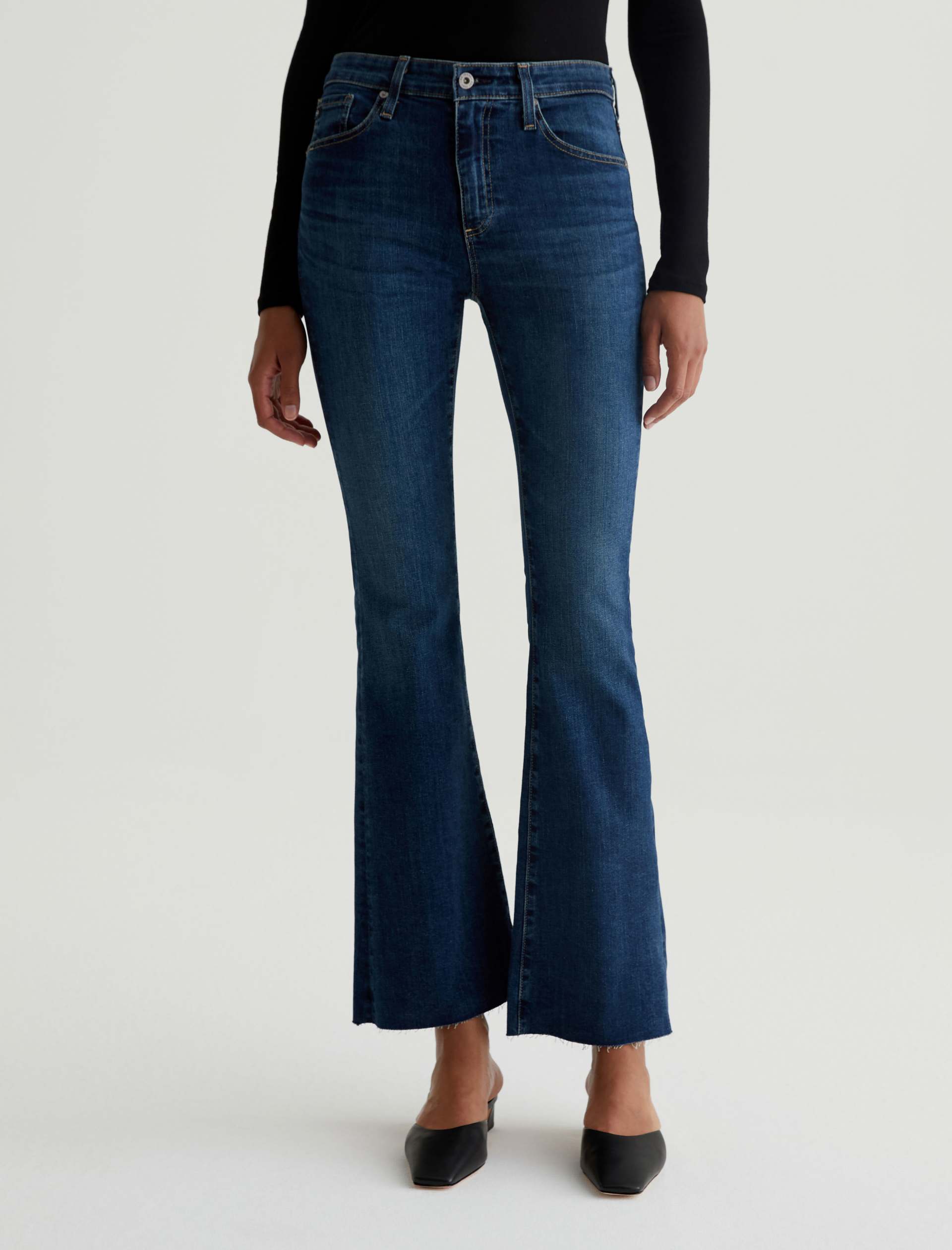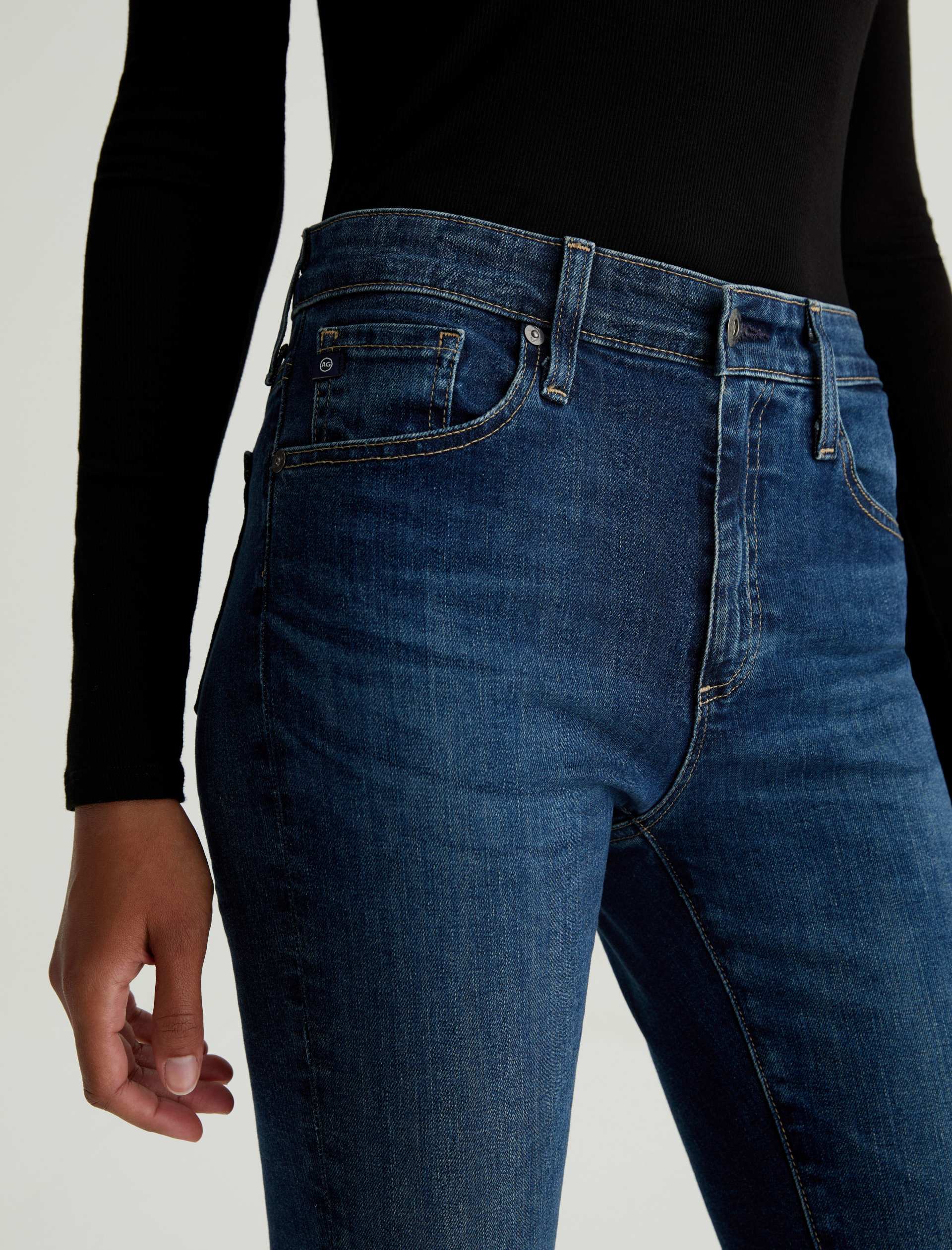The Farrah Boot is a mid-rise bootcut jean in a dark blue wash with fading and whiskering. The pair sits right at the natural waist and has a skinny fit through the leg before opening into a subtly flared raw hem. This women’s bootcut jean is designed in 10 oz. Rouge Advance Stretch Denim for a flattering, comfortable