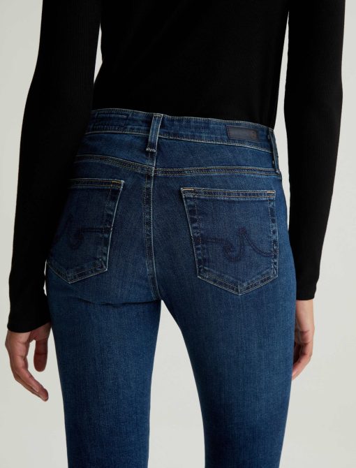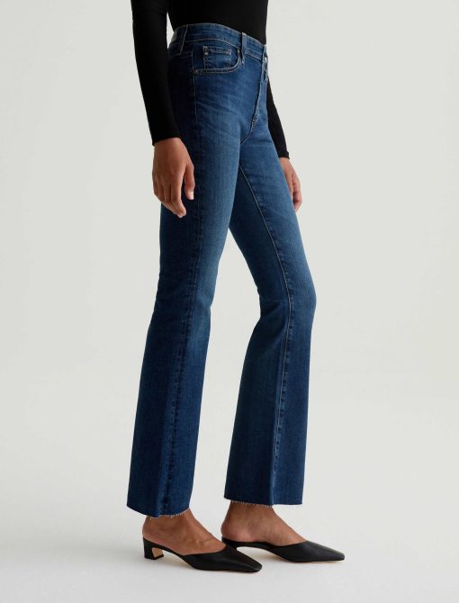 The Farrah Boot is a mid-rise bootcut jean in a dark blue wash with fading and whiskering. The pair sits right at the natural waist and has a skinny fit through the leg before opening into a subtly flared raw hem. This women’s bootcut jean is designed in 10 oz. Rouge Advance Stretch Denim for a flattering, comfortable