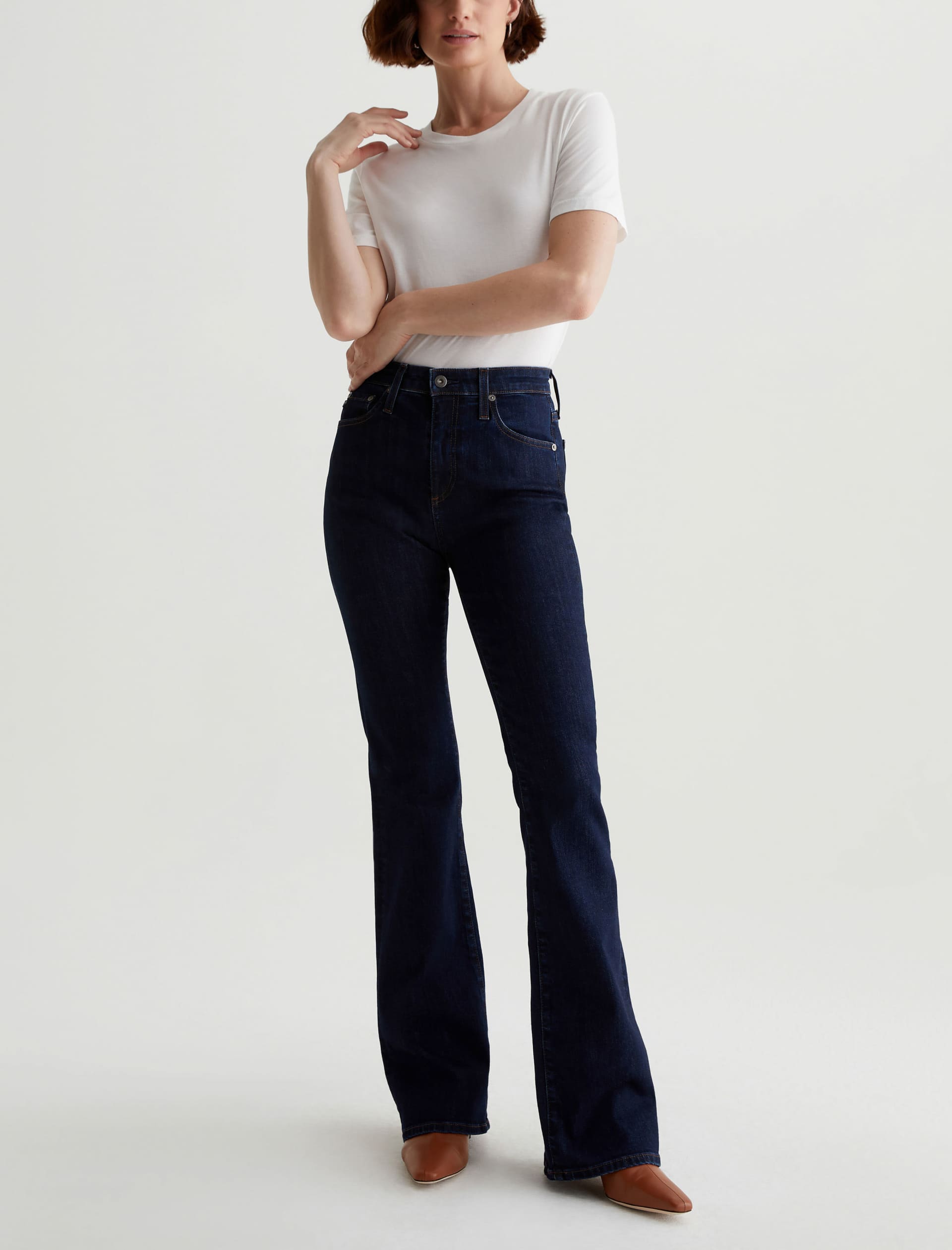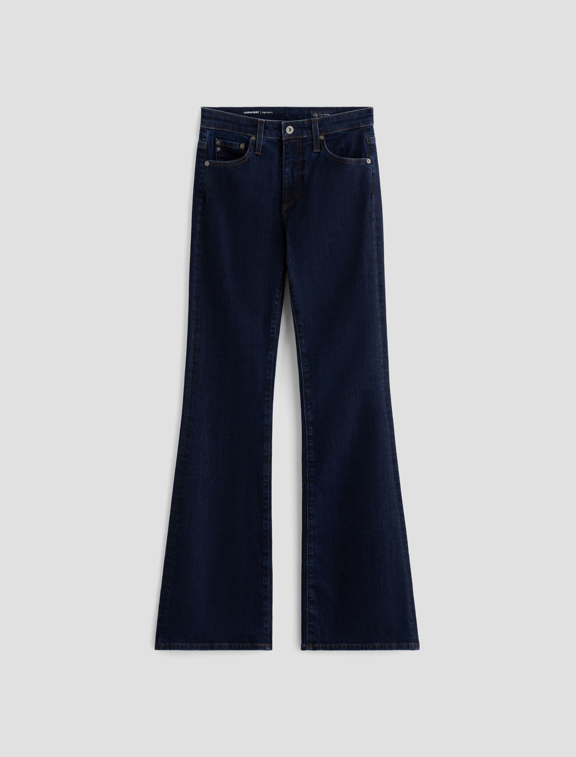 The Farrah Boot is our mid-rise bootcut jean updated in a dark, even shade of indigo. Crafted from 10 oz. Rouge Advanced Stretch Denim, the pair sits right at the natural waist and has a skinny fit through the legs before opening into a subtly flared shape. Marigold stitching finishes the look.Some styles previously la
