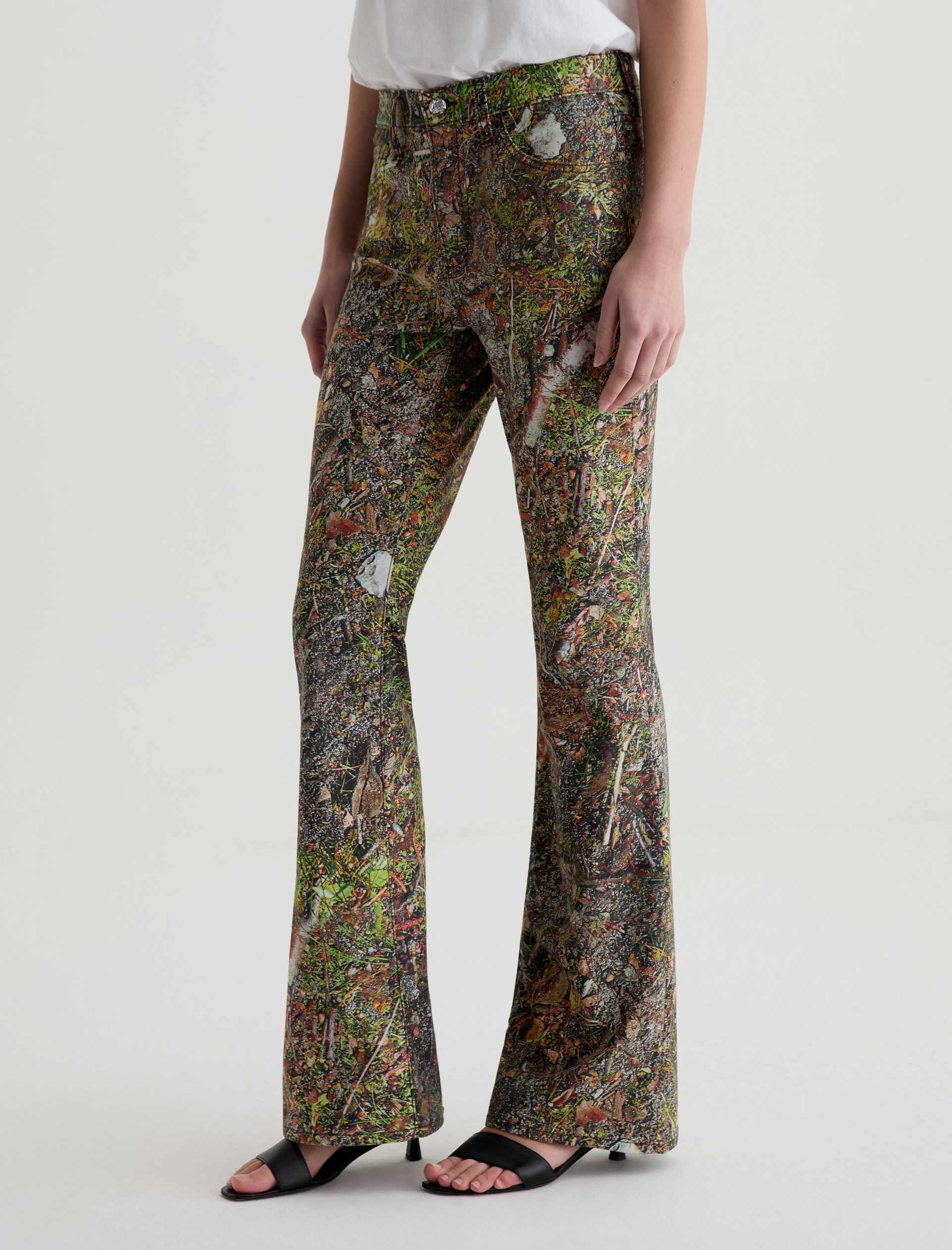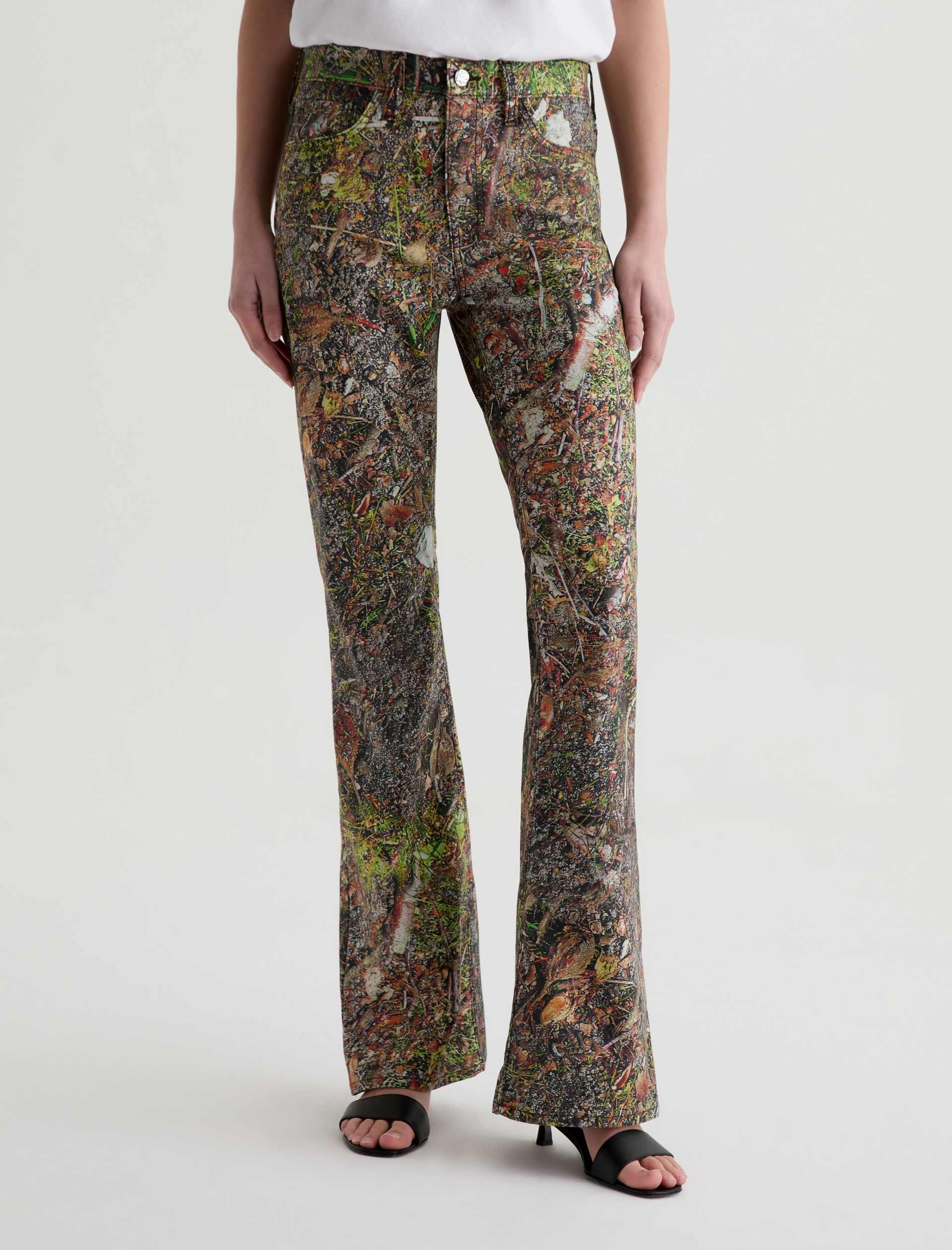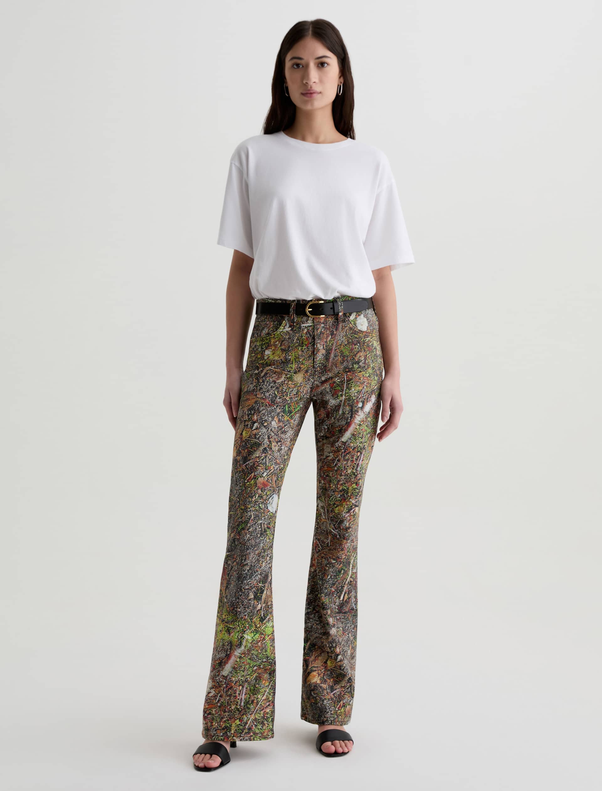 Crafted from super stretch twill for all-day comfort, the Farrah Bootcut features a mid-rise waist, a skinny fit through the legs, and soft flared hems. Finished with a five-pocket design. About the Art Project: Inspired by tropical getaways, this collection blends soft shapes and layered tones to evoke a sense of calm