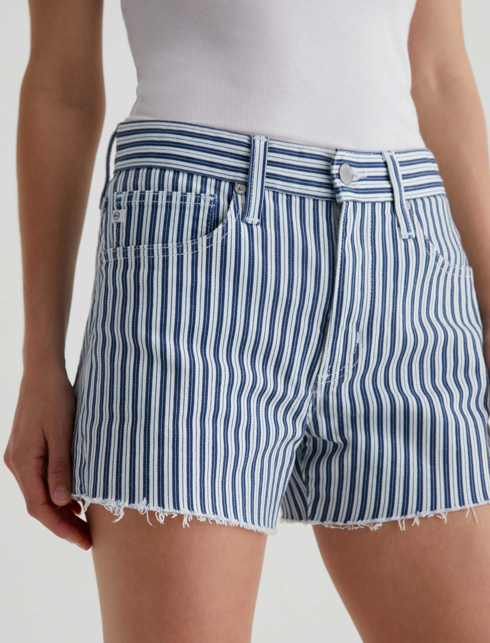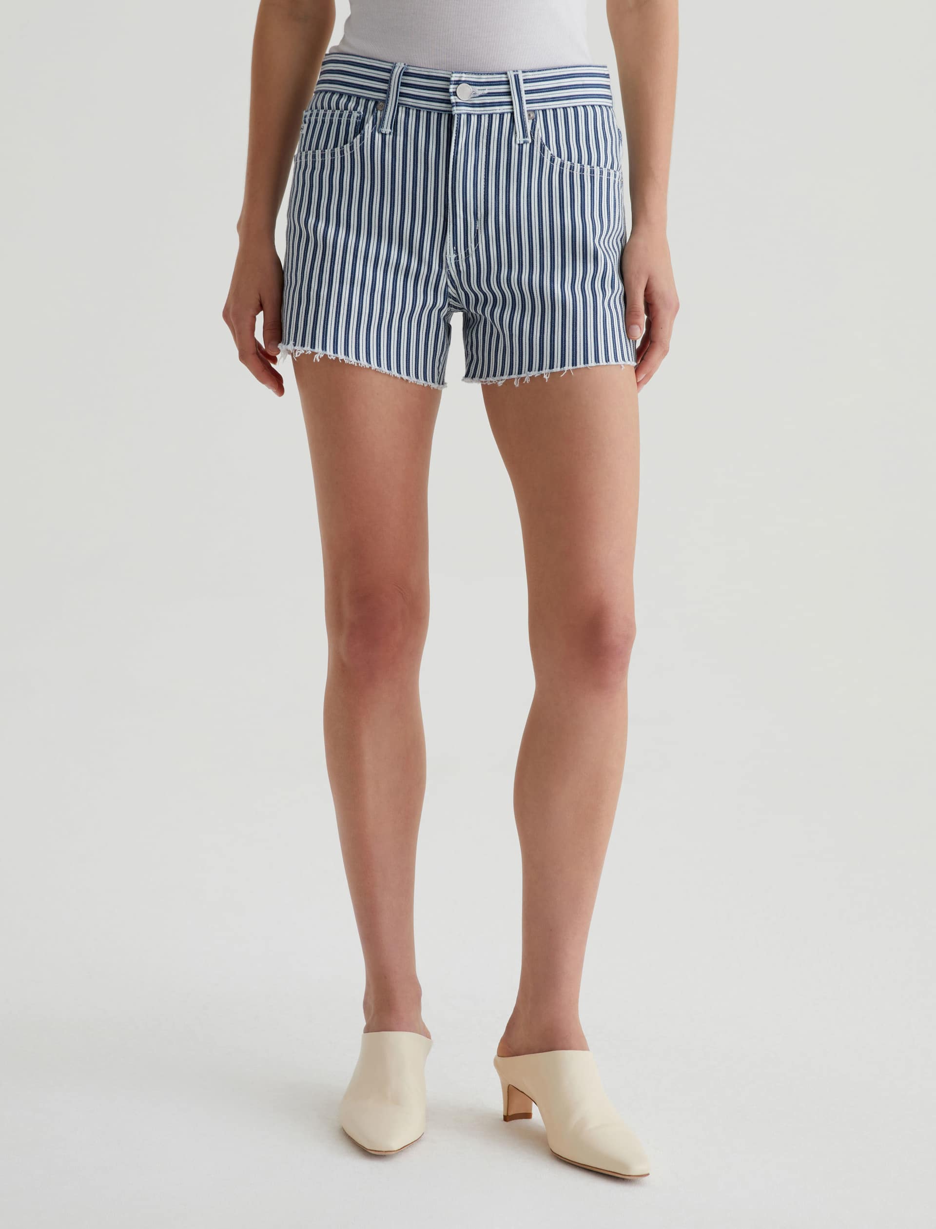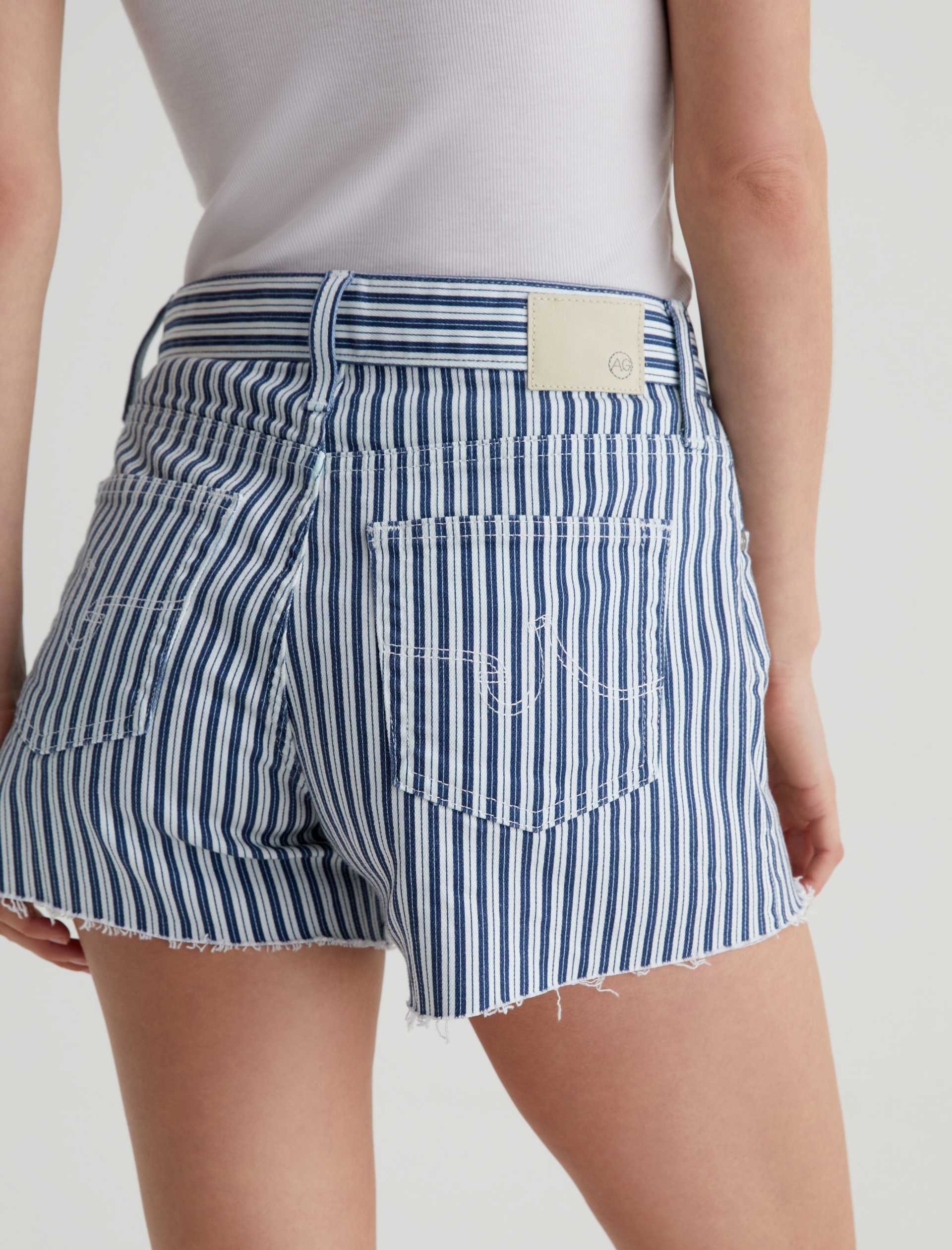 The Halle Short hints at a vintage nautical influence in comfort-stretch denim with an indigo yarn-dye stripe pattern. These high-rise cutoffs are cut for a relaxed silhouette with ease through the hips and raw, cut hems.