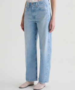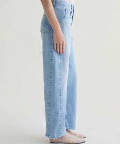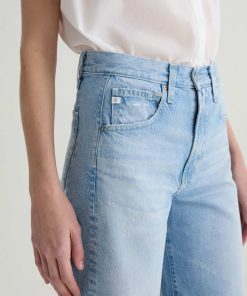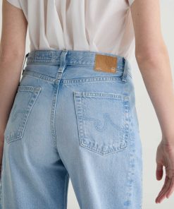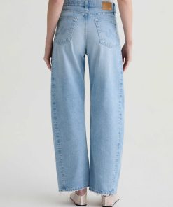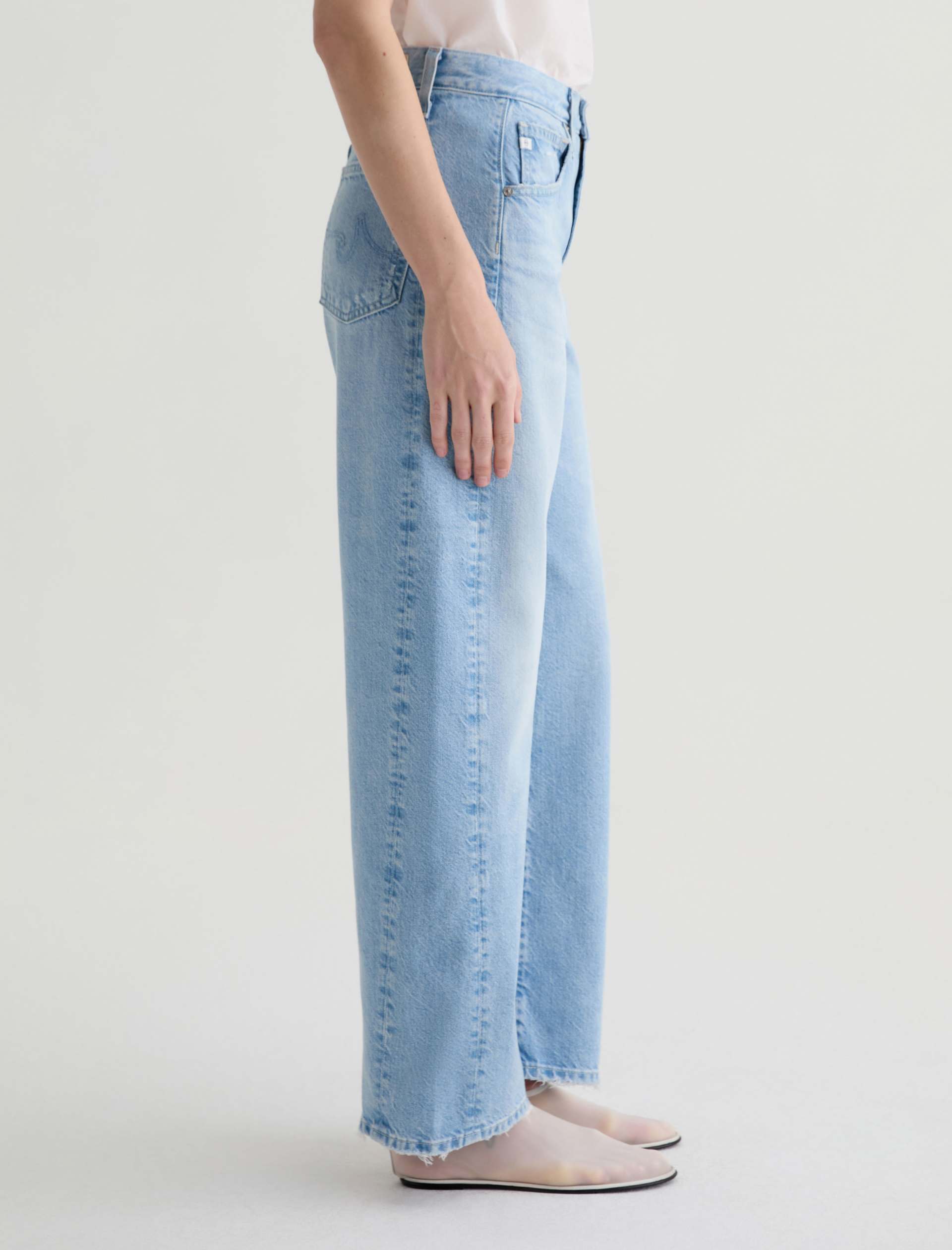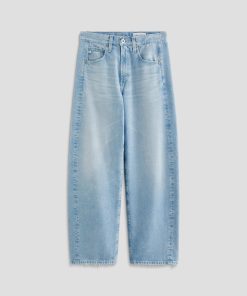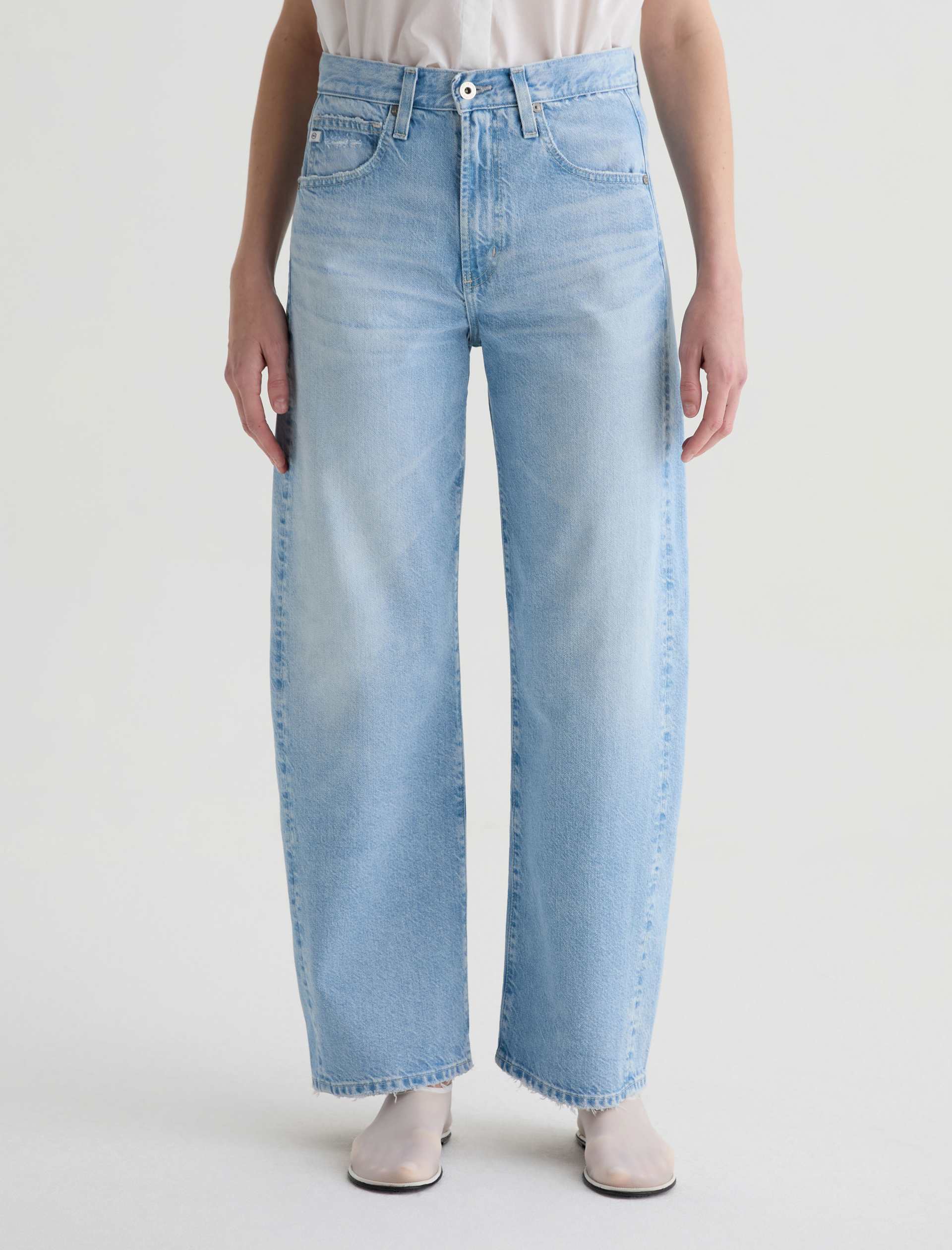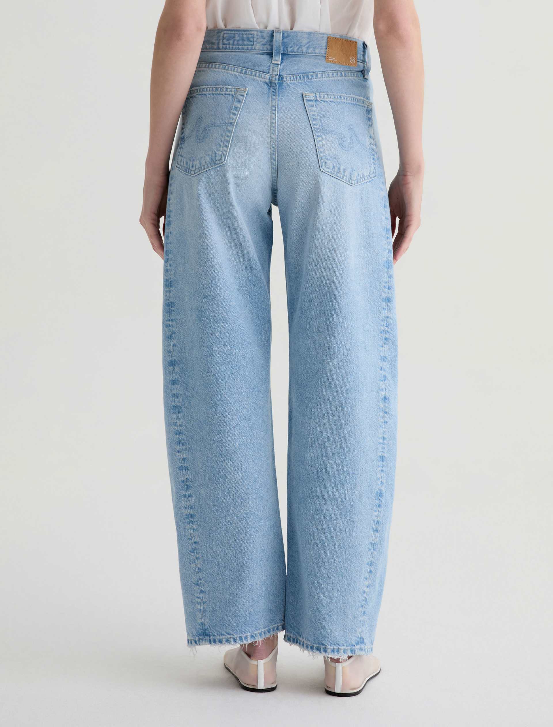 The Hattie is a high-rise barrel jean with a 28” inseam and ankle-grazing frayed hems. Made from 12 oz. Drapey Ridged Denim in a light wash, this style offers a structured look with a comfortable stretch feel.