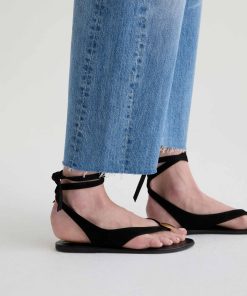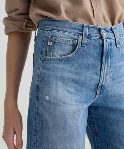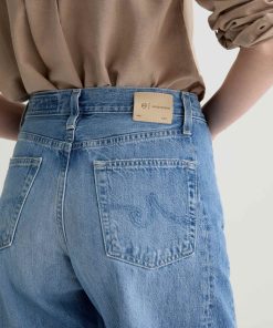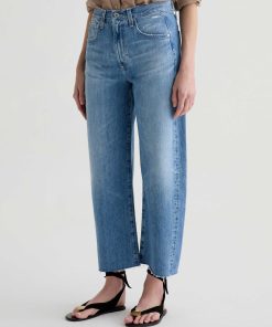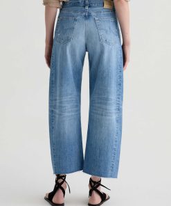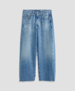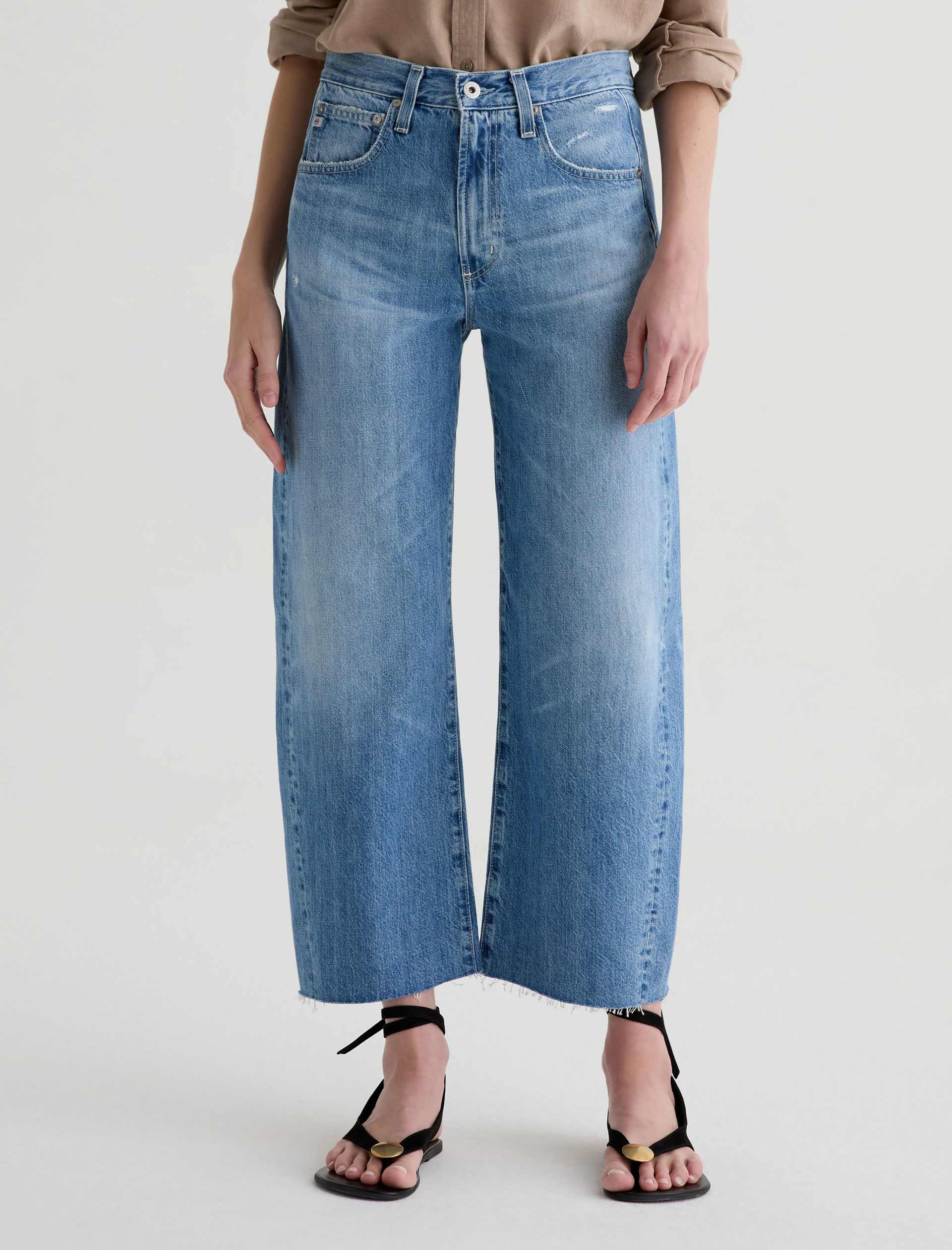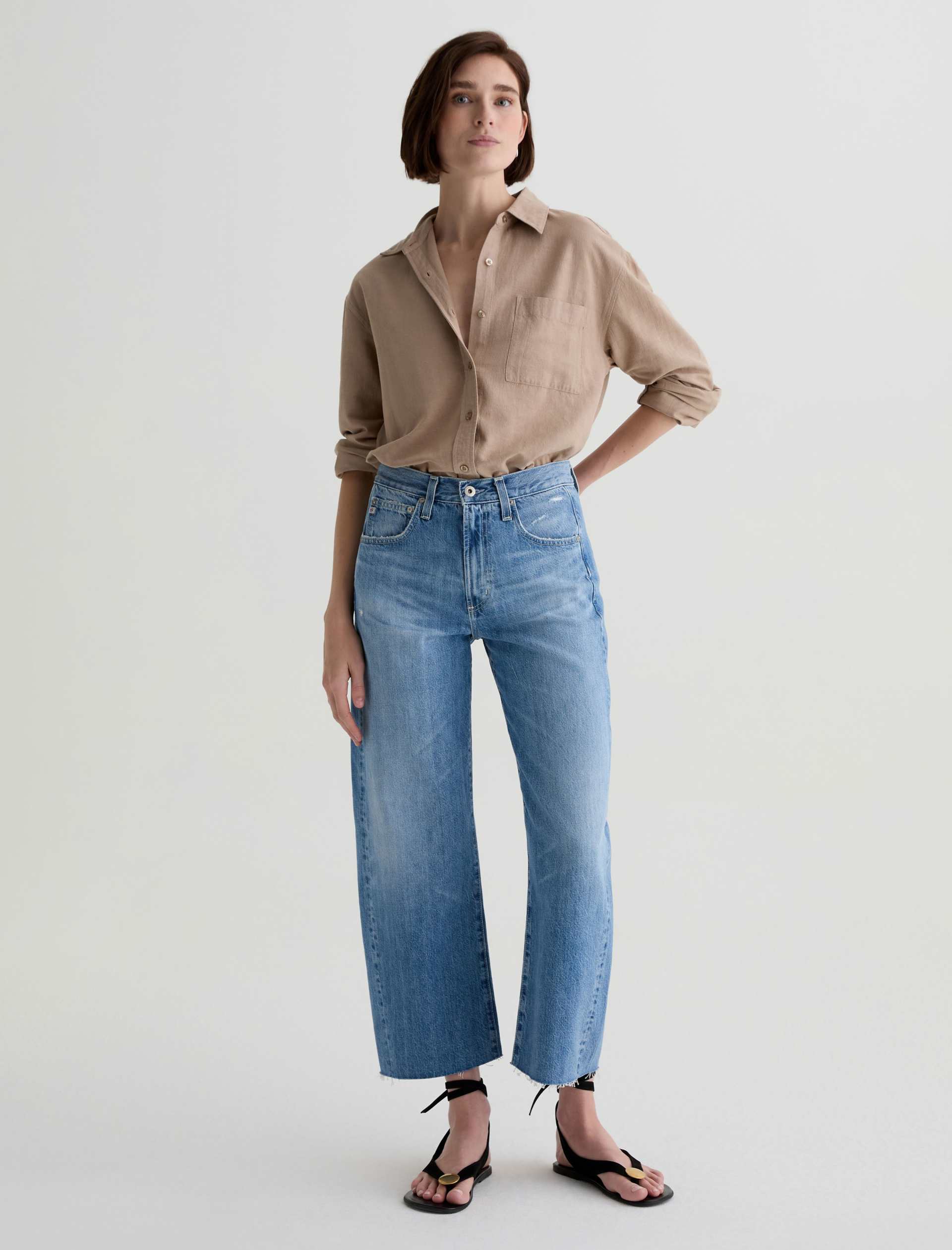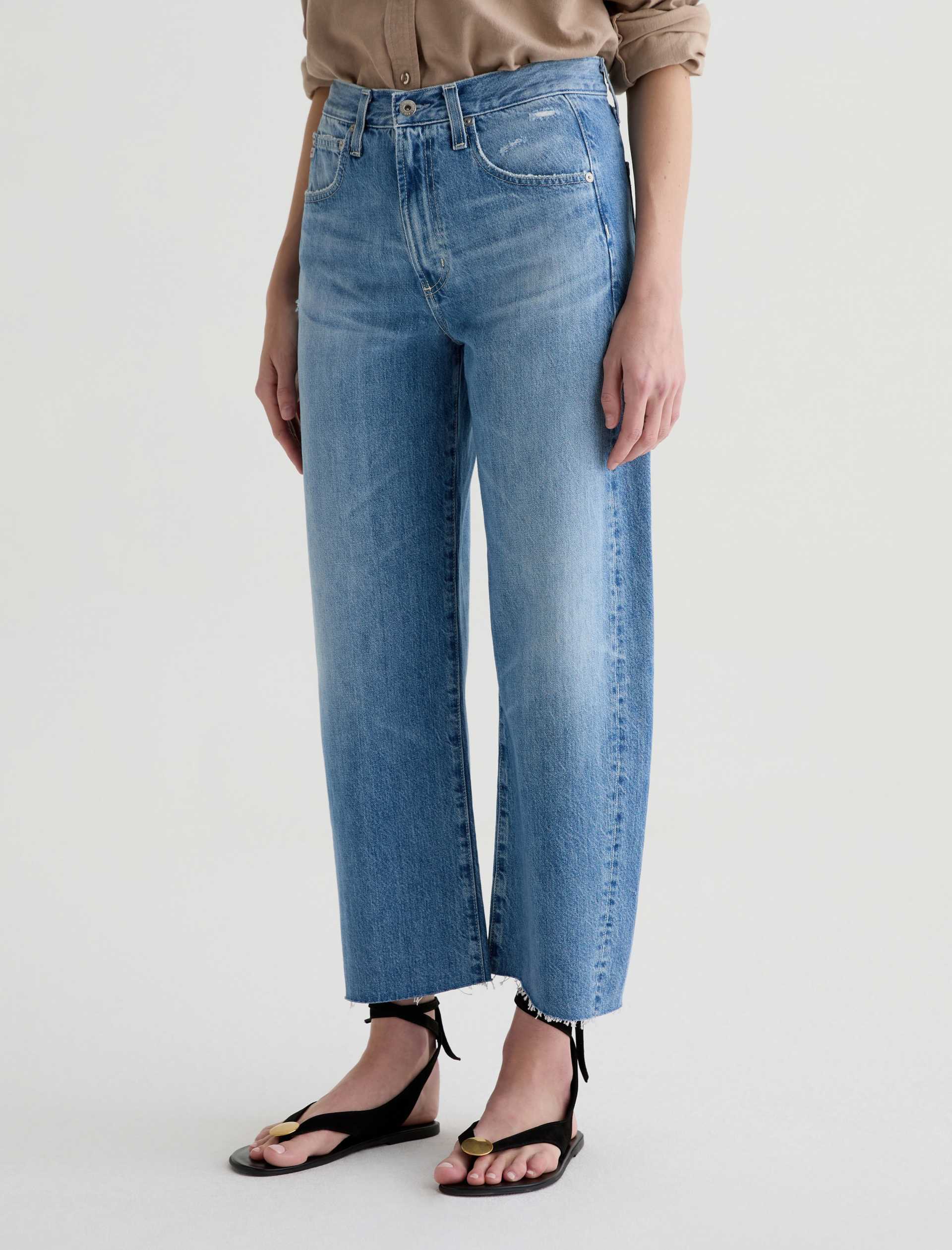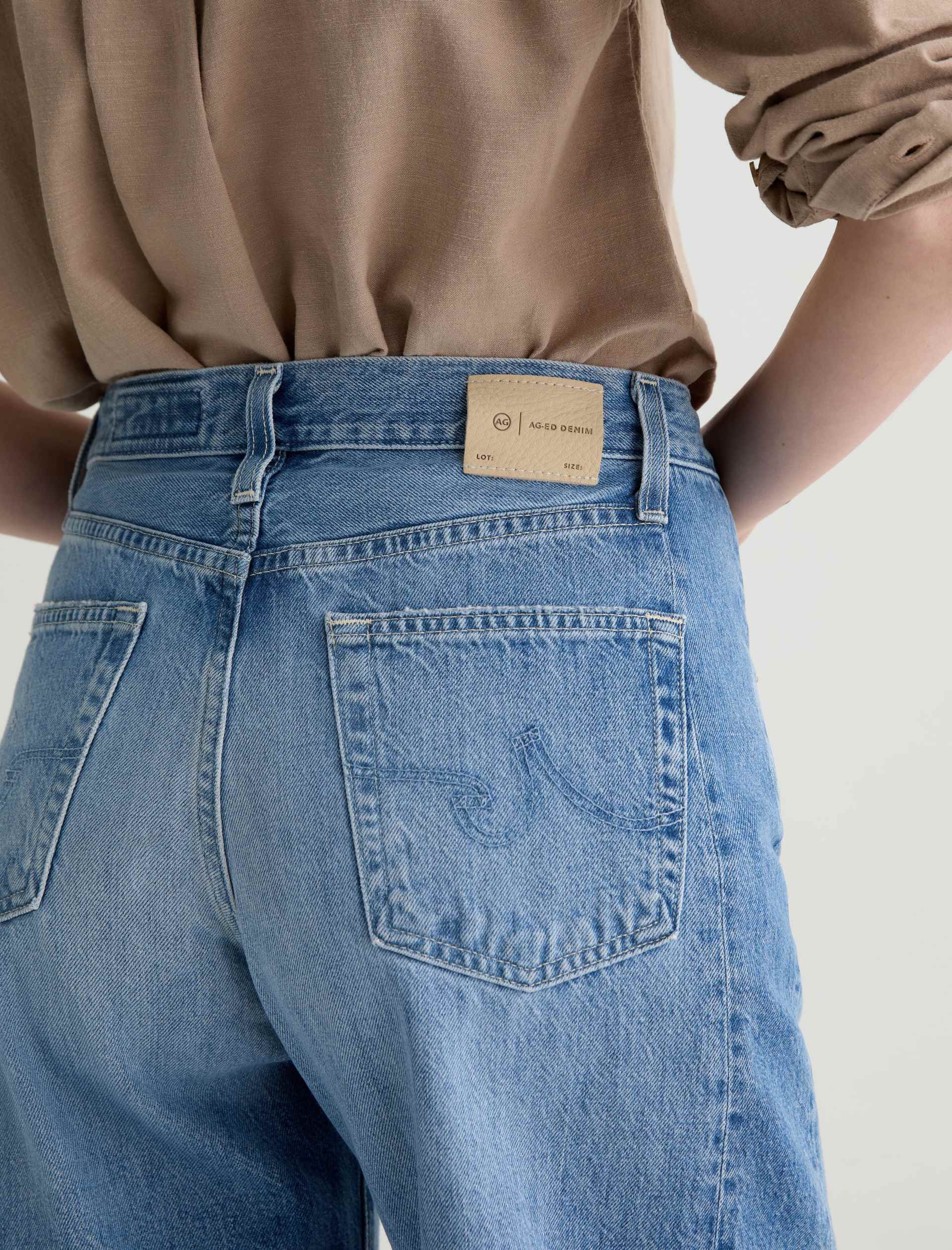 The Hattie Crop is a high-rise barrel made from non-stretch denim. In an AG-ed™ light wash to resemble 17 years of authentic wear, it is designed with raw hems, and offers a structured shape with a casual, lived-in finish.