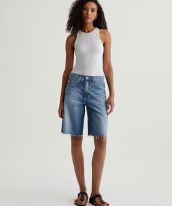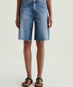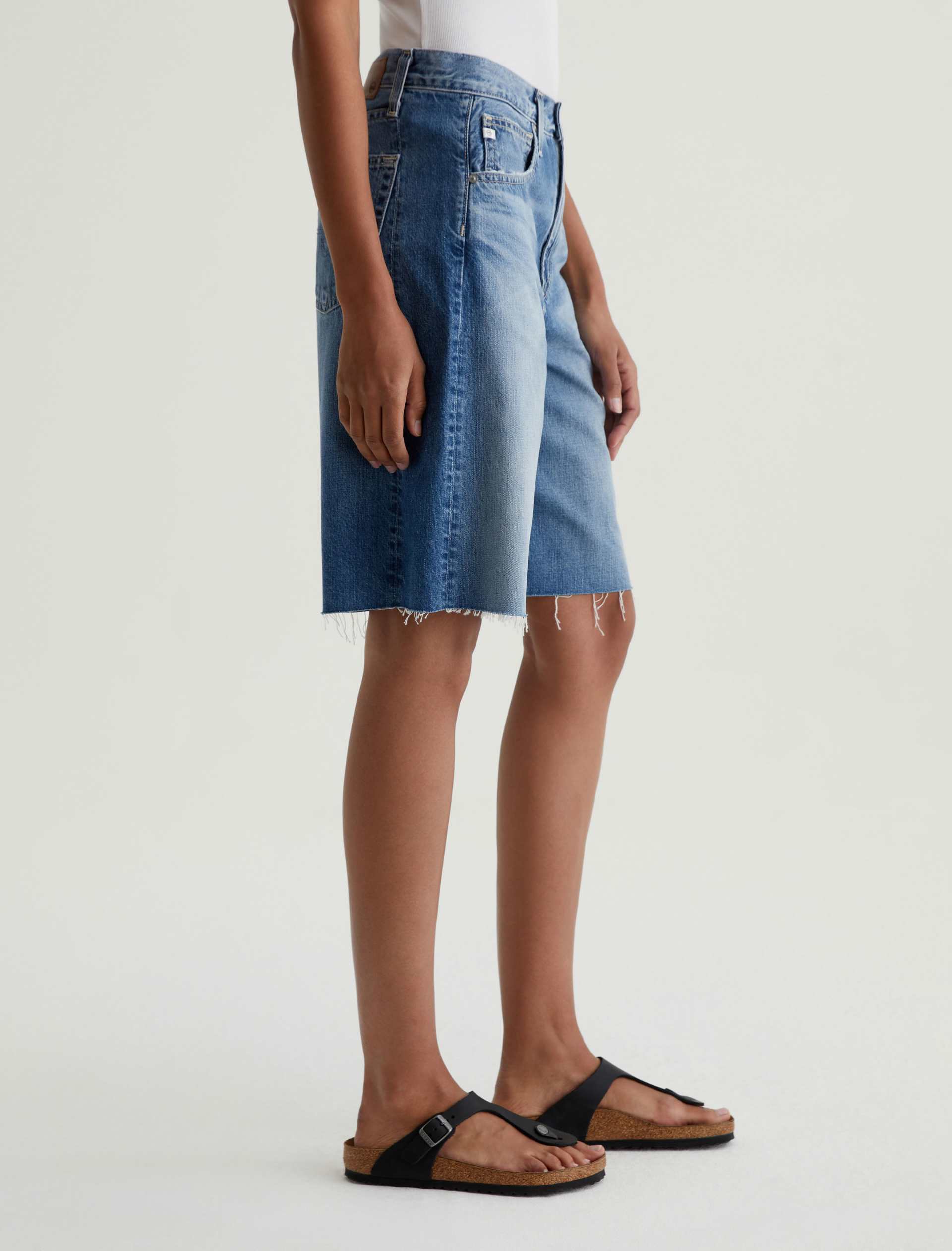 Inspired by our full-length Hattie barrel fit, the Hattie Short has a relaxed high-rise silhouette with side-seam paneling and raw hems that skim just above the knee. This pair comes in 100% cotton Legion Denim from Japan and features a faded medium-blue wash with worn pocket edges.
