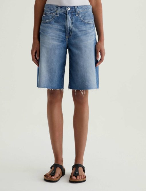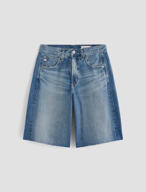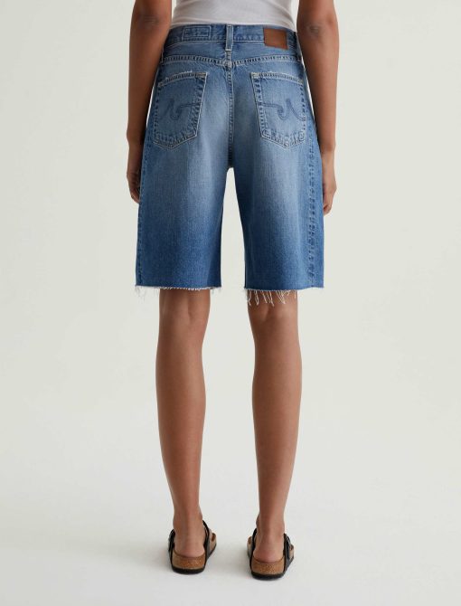 Inspired by our full-length Hattie barrel fit, the Hattie Short has a relaxed high-rise silhouette with side-seam paneling and raw hems that skim just above the knee. This pair comes in 100% cotton Legion Denim from Japan and features a faded medium-blue wash with worn pocket edges.