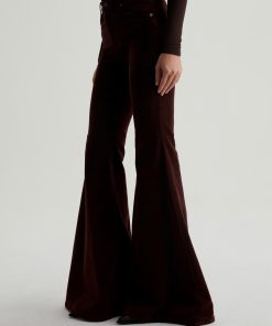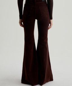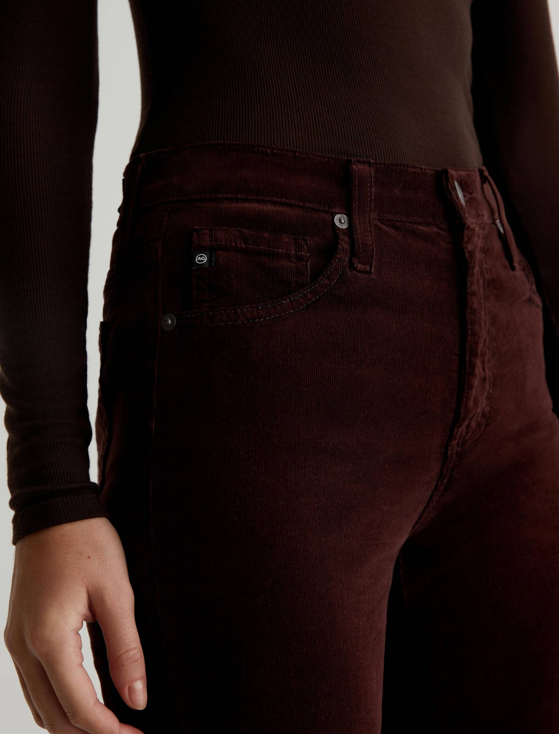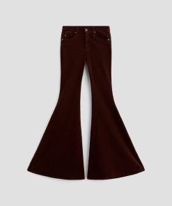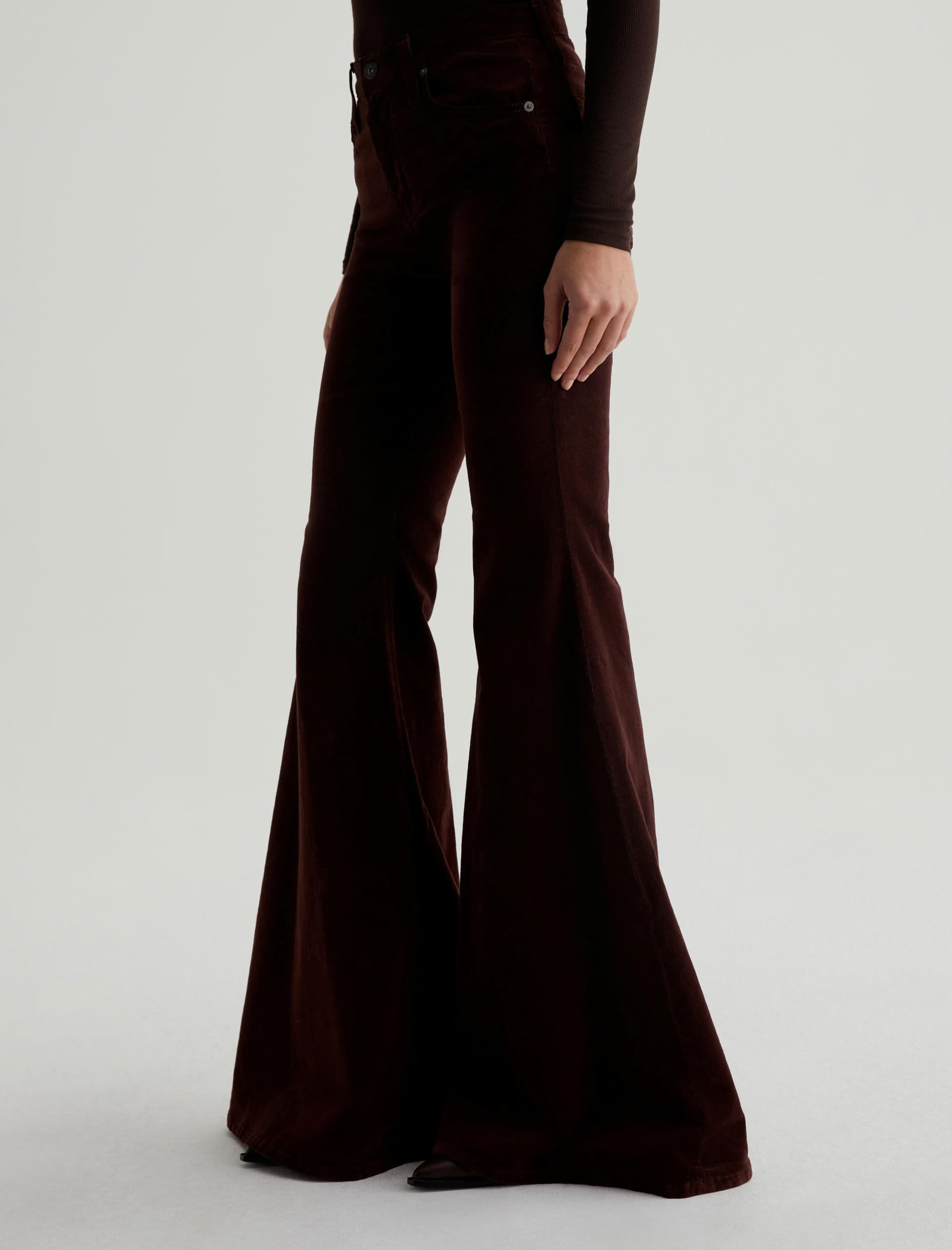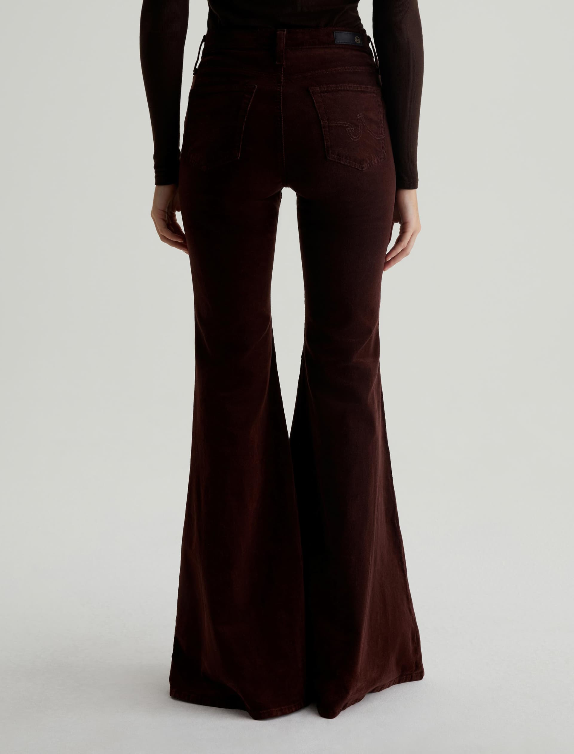 Designed for high drama, Joni is our new mid-rise super flare. It’s fitted through the hip and thigh before kicking out from the knee, falling to an ultra-wide hem. This pair has a velvety feel and lustrous sheen in rich brown mini corduroy with shape-hugging stretch. The inseam clocks in at a 36 inches for a dropped-t