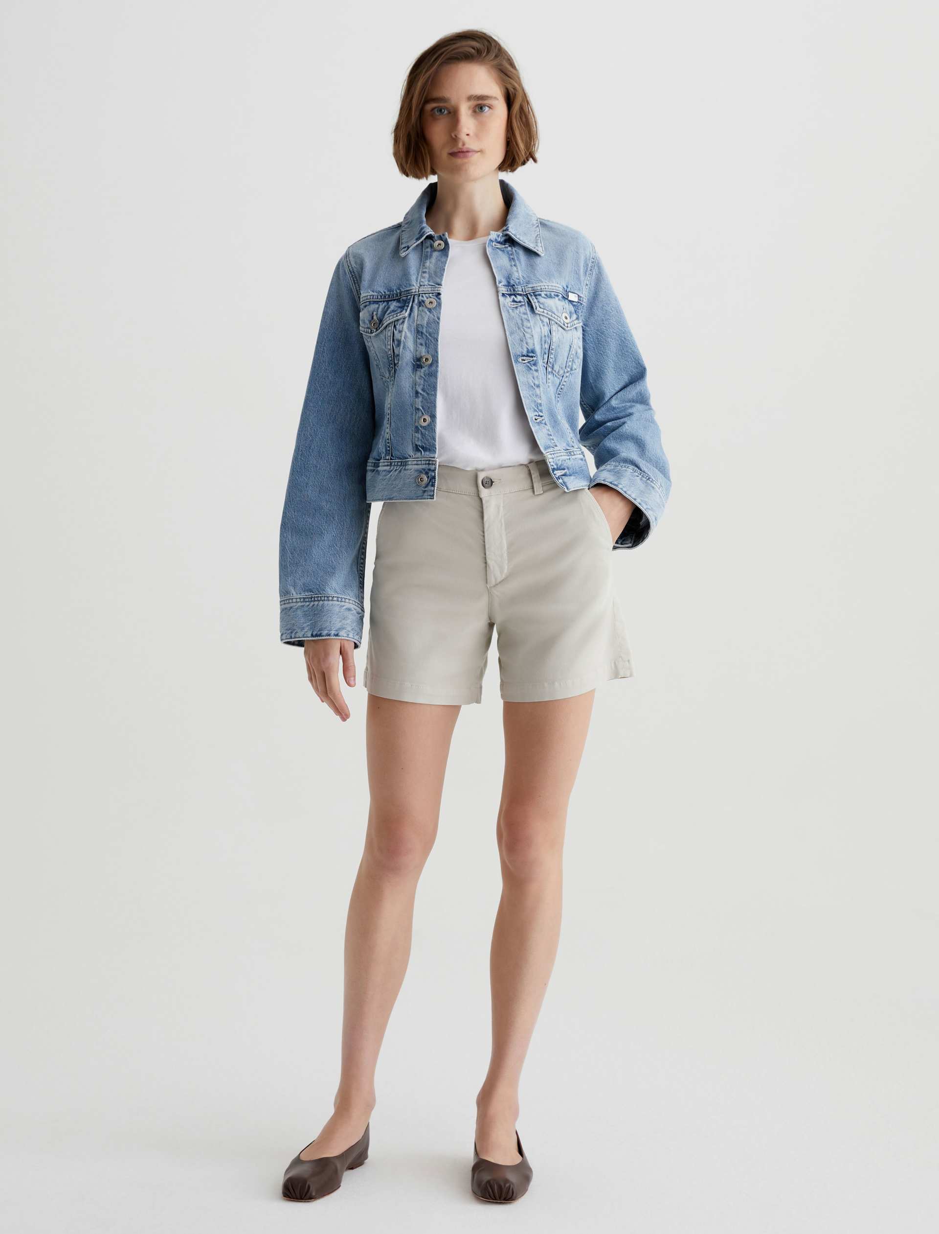 An update on our Caden shorts, Jude has a relaxed fit through the hips and a wider leg opening. Made from Sumptuous Stretch Broken Twill, these off-white chino shorts are perfect for transitioning into warmer seasons.
