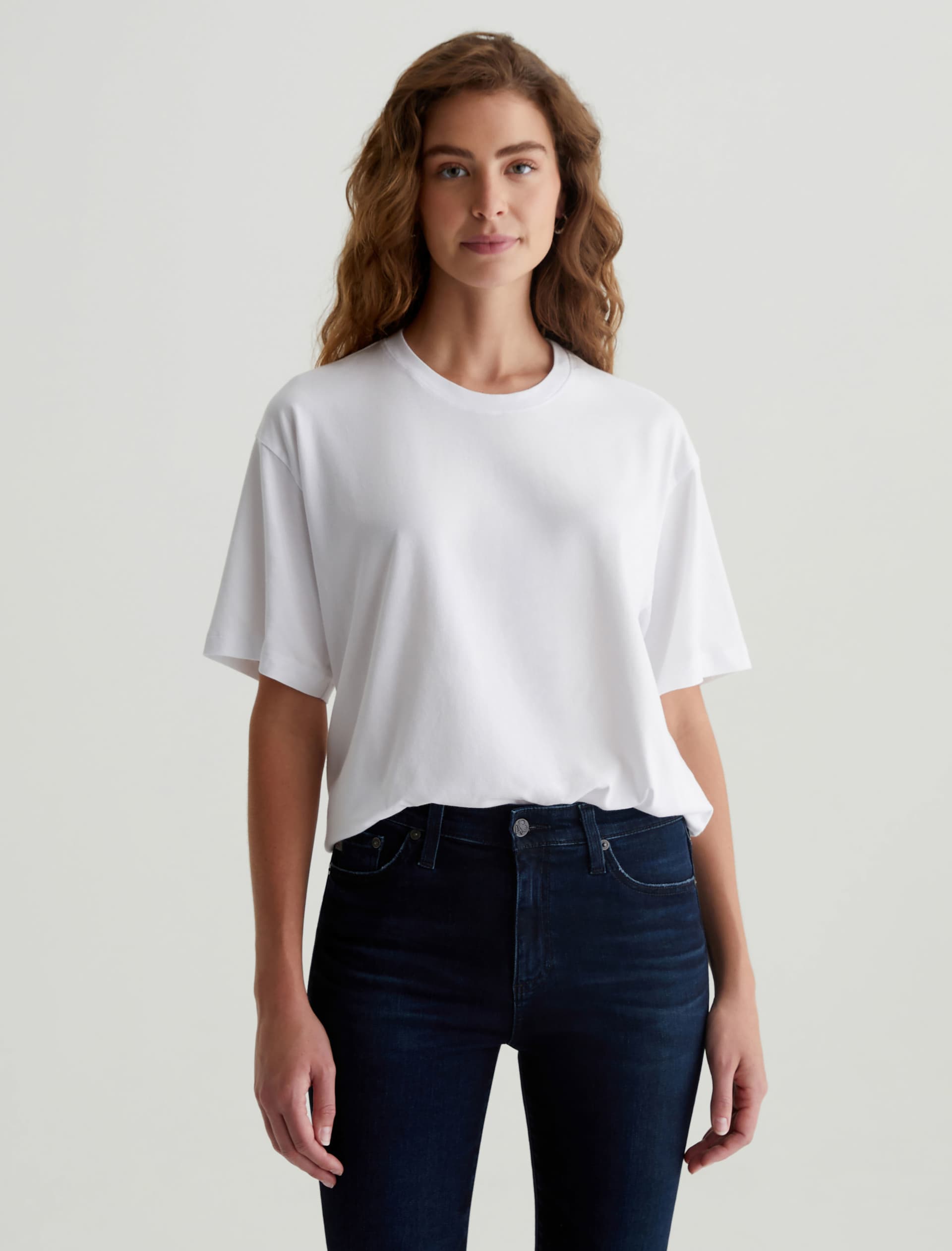 The Karter Ex-Boyfriend S/S Crew in white is our first introduction to a relaxed fit short sleeve crew. Drop shoulders creates a modern, oversized take on the “borrowed from your boyfriend” look. Our Jersey Knit offers a luxurious comfort that is unrivaled—knitted with both S-twist and Z-twist yarn to sustain longevity