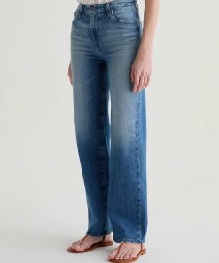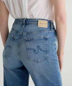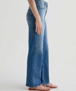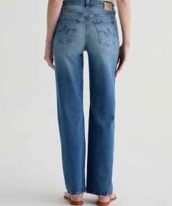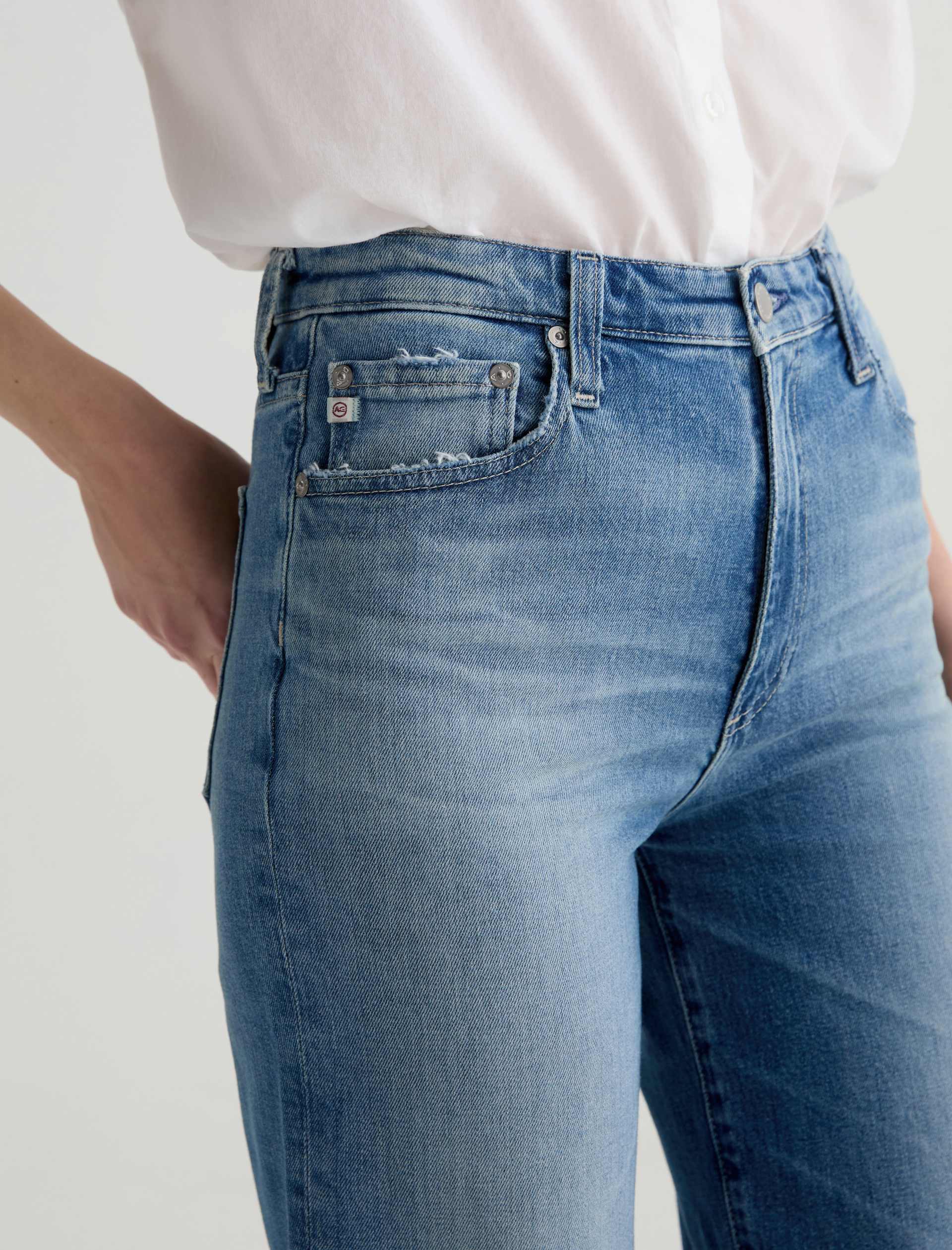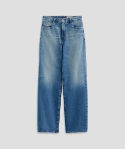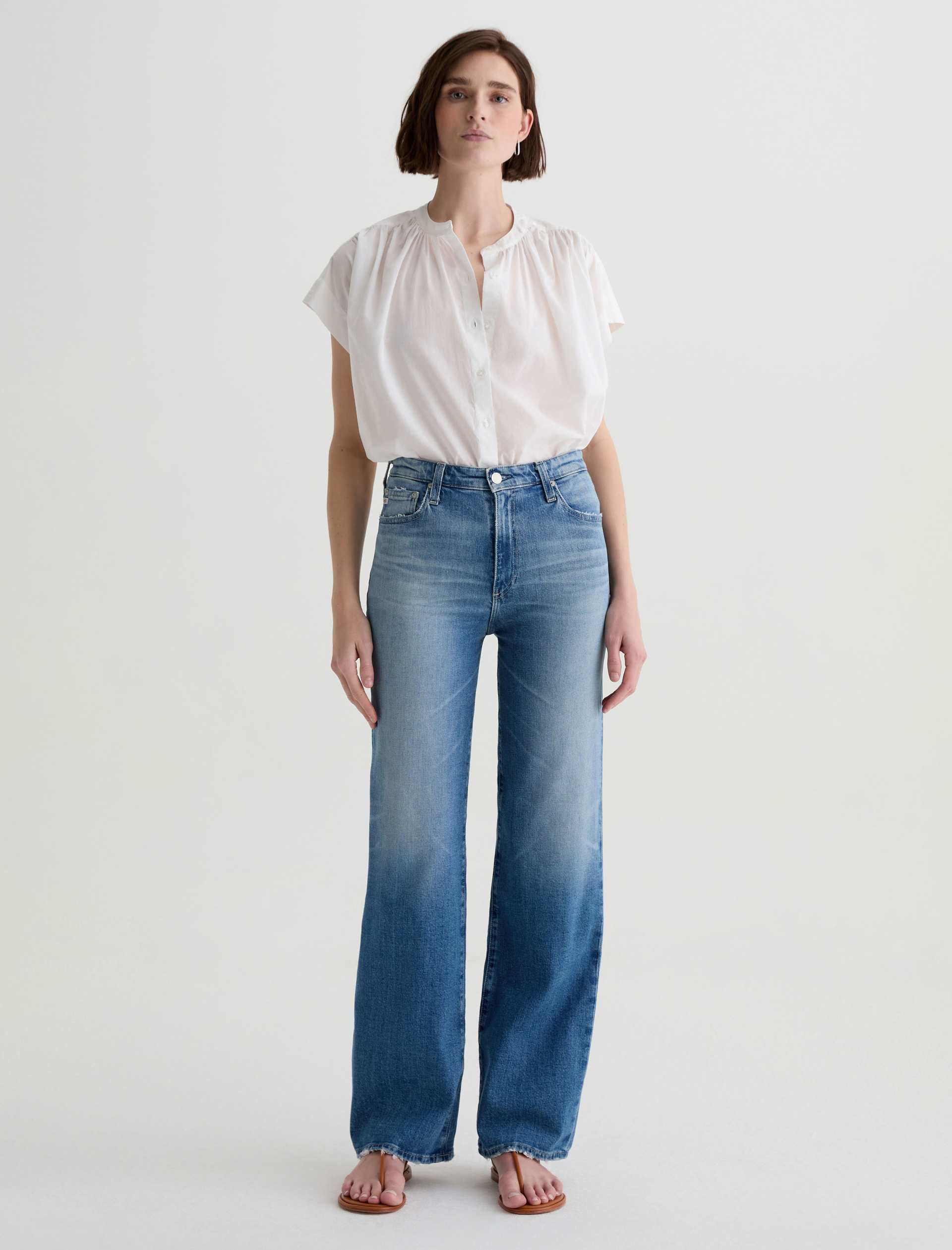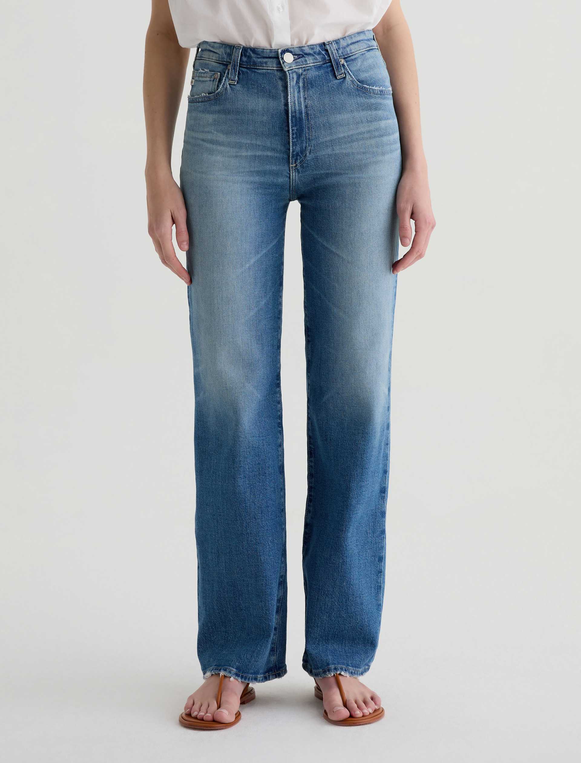The Kora jean is a high-rise style with a 32” inseam and a subtly wide-leg feel throughout. Made from Italian 11 oz. Journey Denim, its medium wash is AG-ed™ to resemble 13 years of wear.