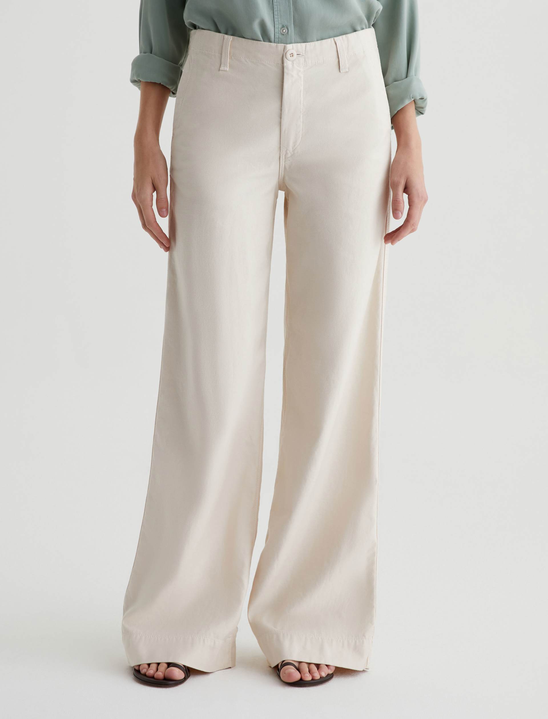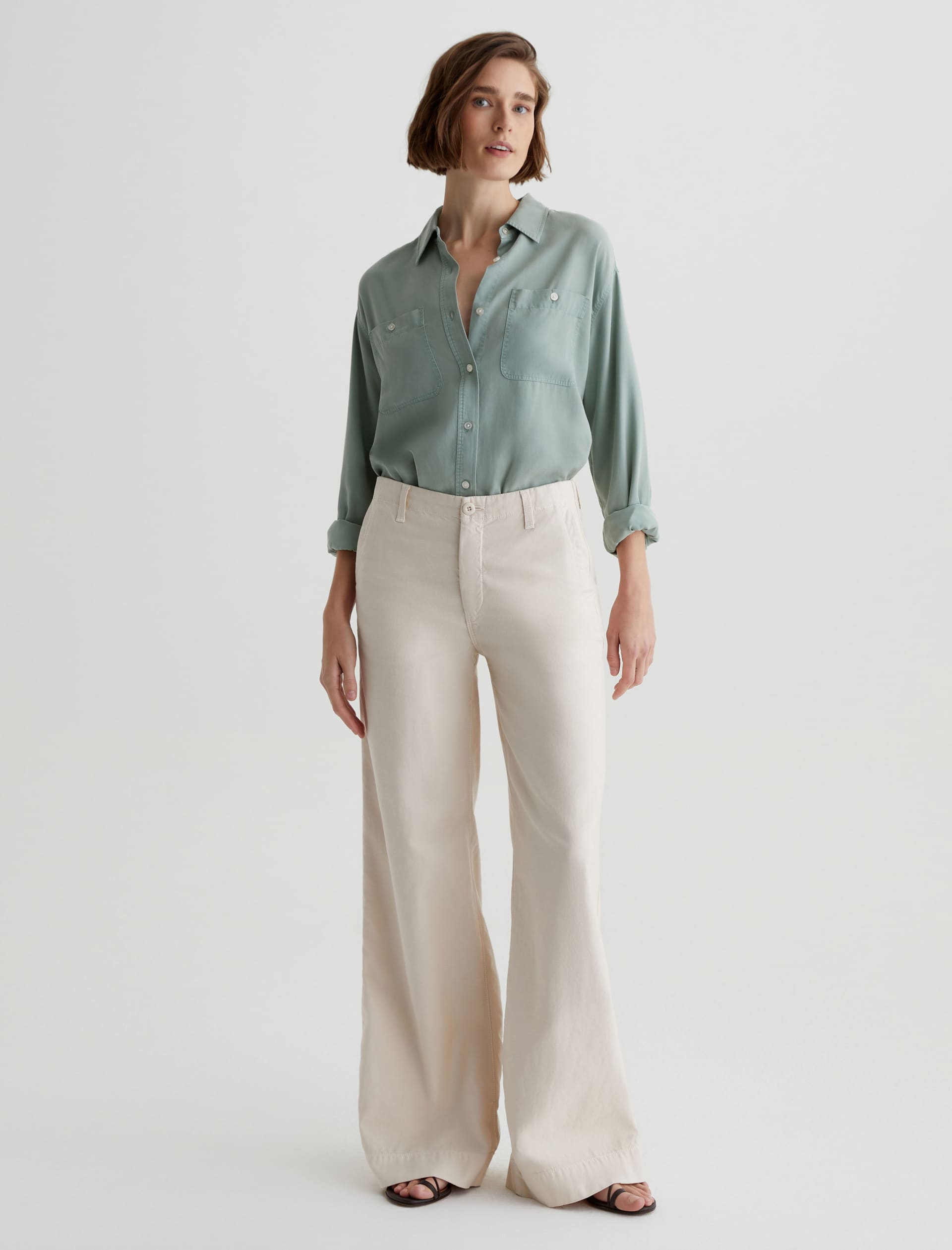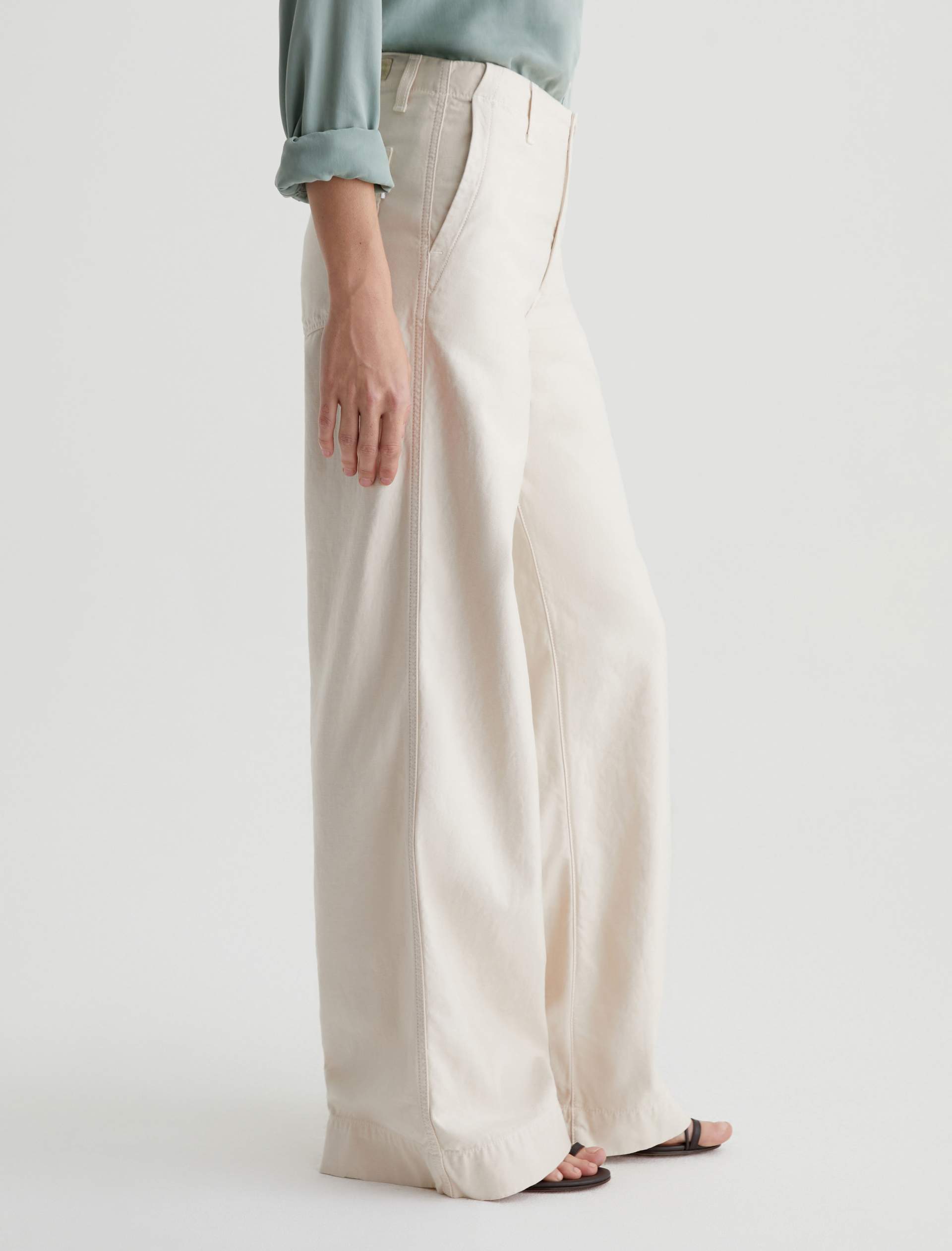 Designed to be worn low slung, the Laurent wide-leg utility pants are cut with a mid-rise waist and a roomy, full-length silhouette. This pair comes in off-white Sternway Reverse Sateen and features clean, trouser-style front pockets. Patch pockets at the back add a workwear-inspired touch.