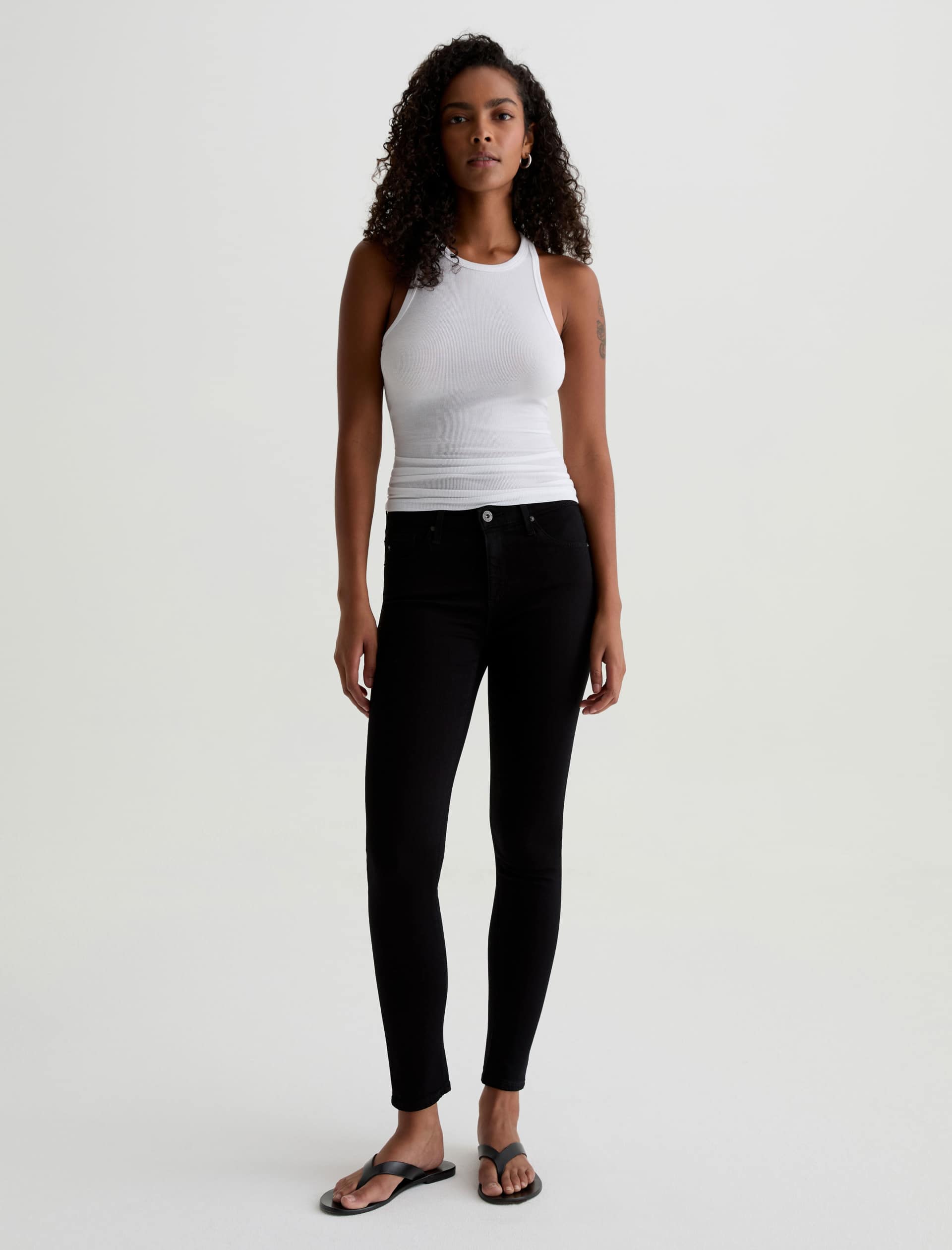 The Legging Ankle for women has a mid-rise super skinny fit that contours the body from hip to hem and lands at ankle length. Done in saturated black, this women’s skinny jean is crafted from 10 oz. Superior Stretch Black Denim.