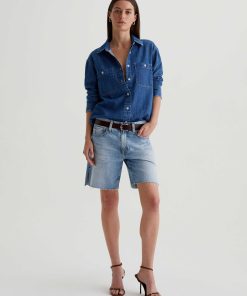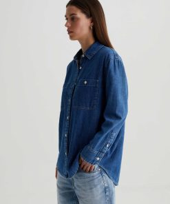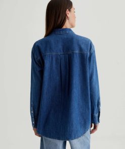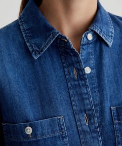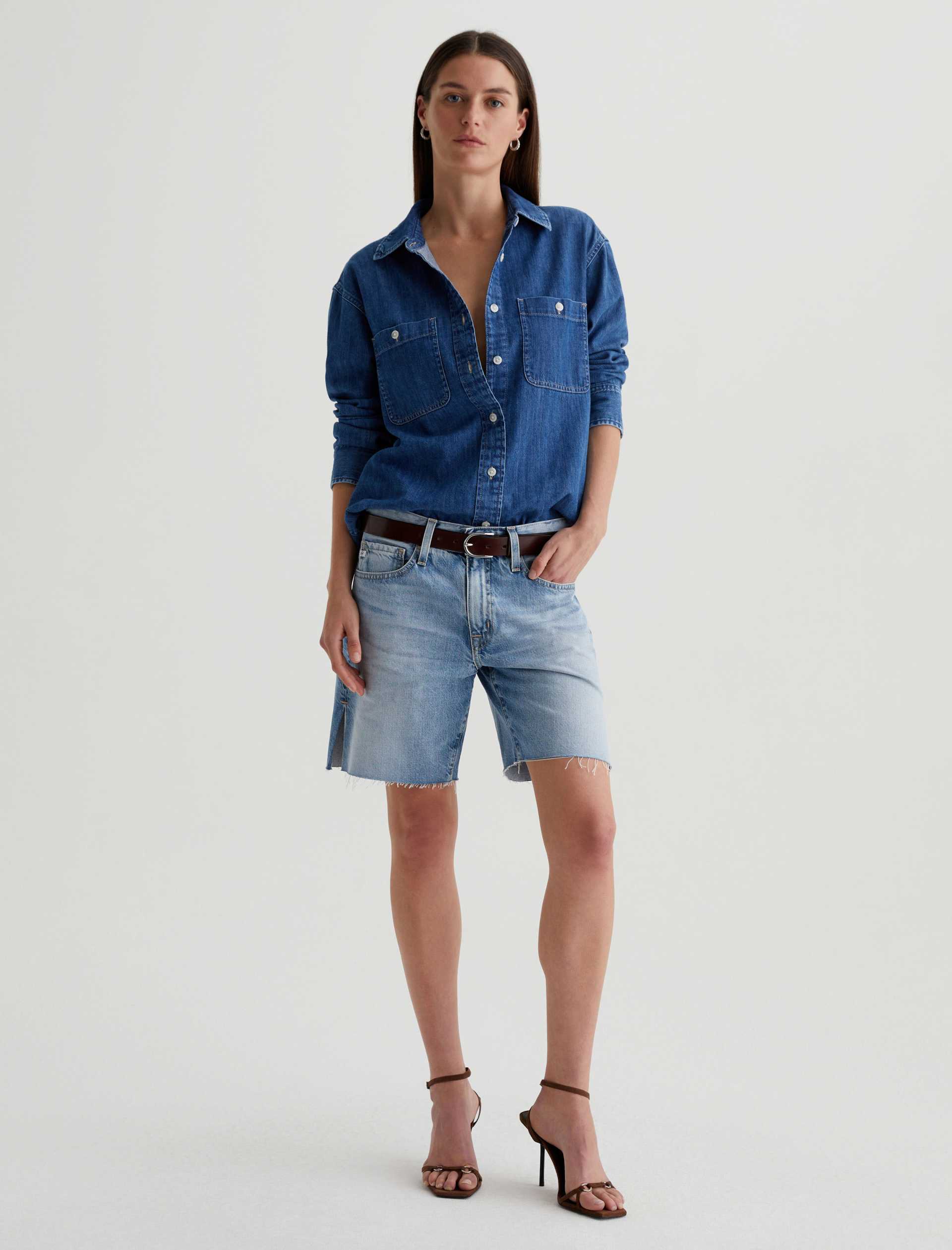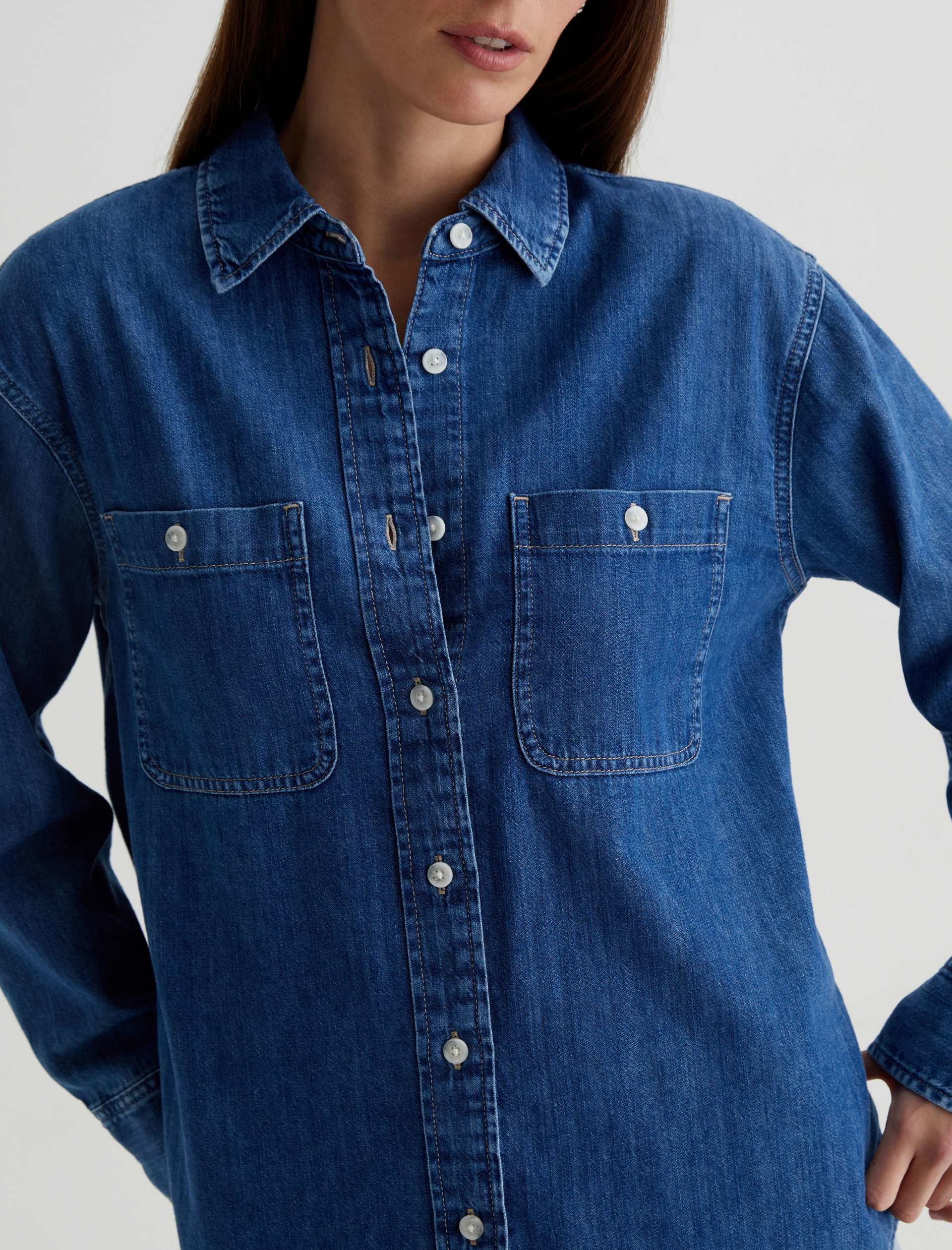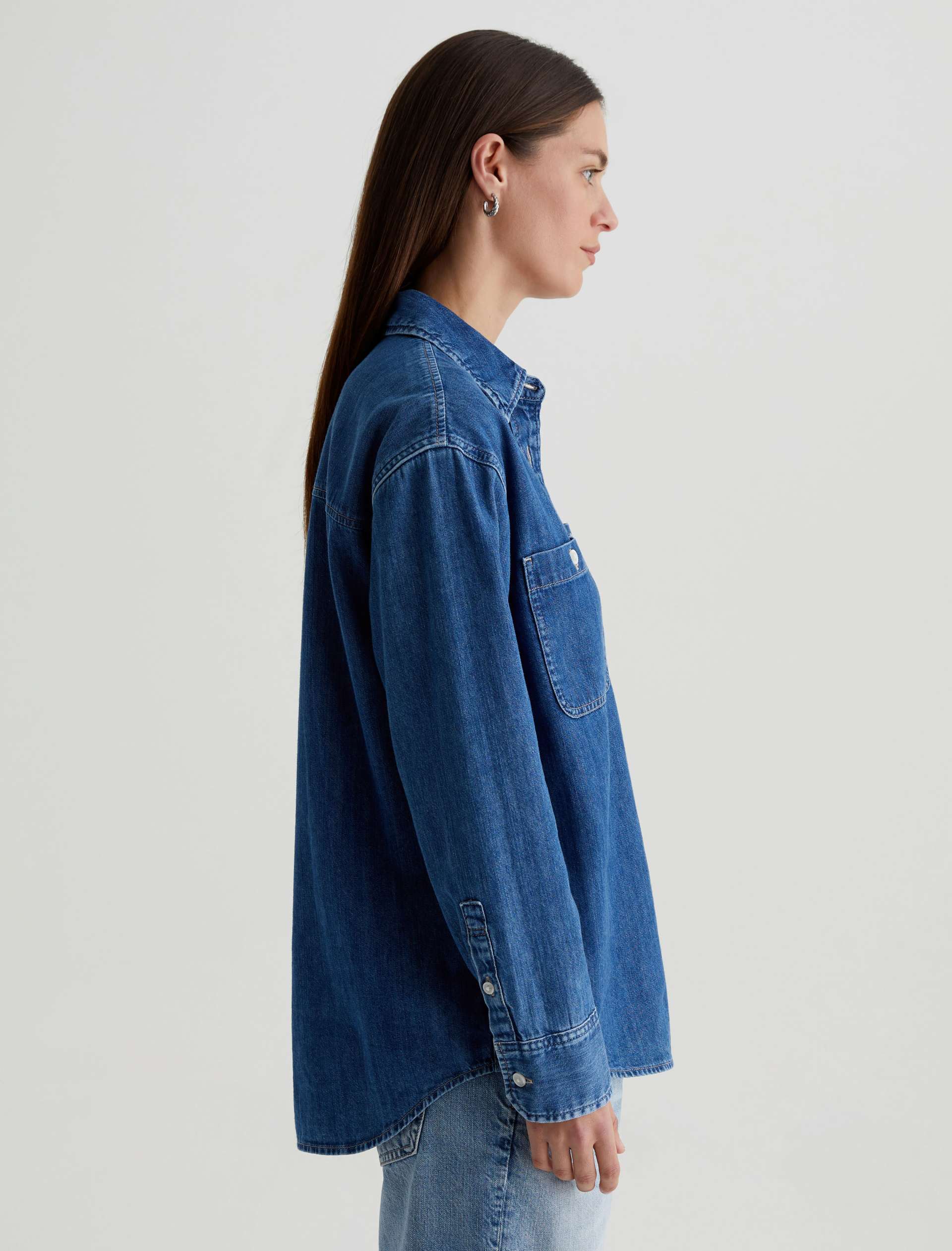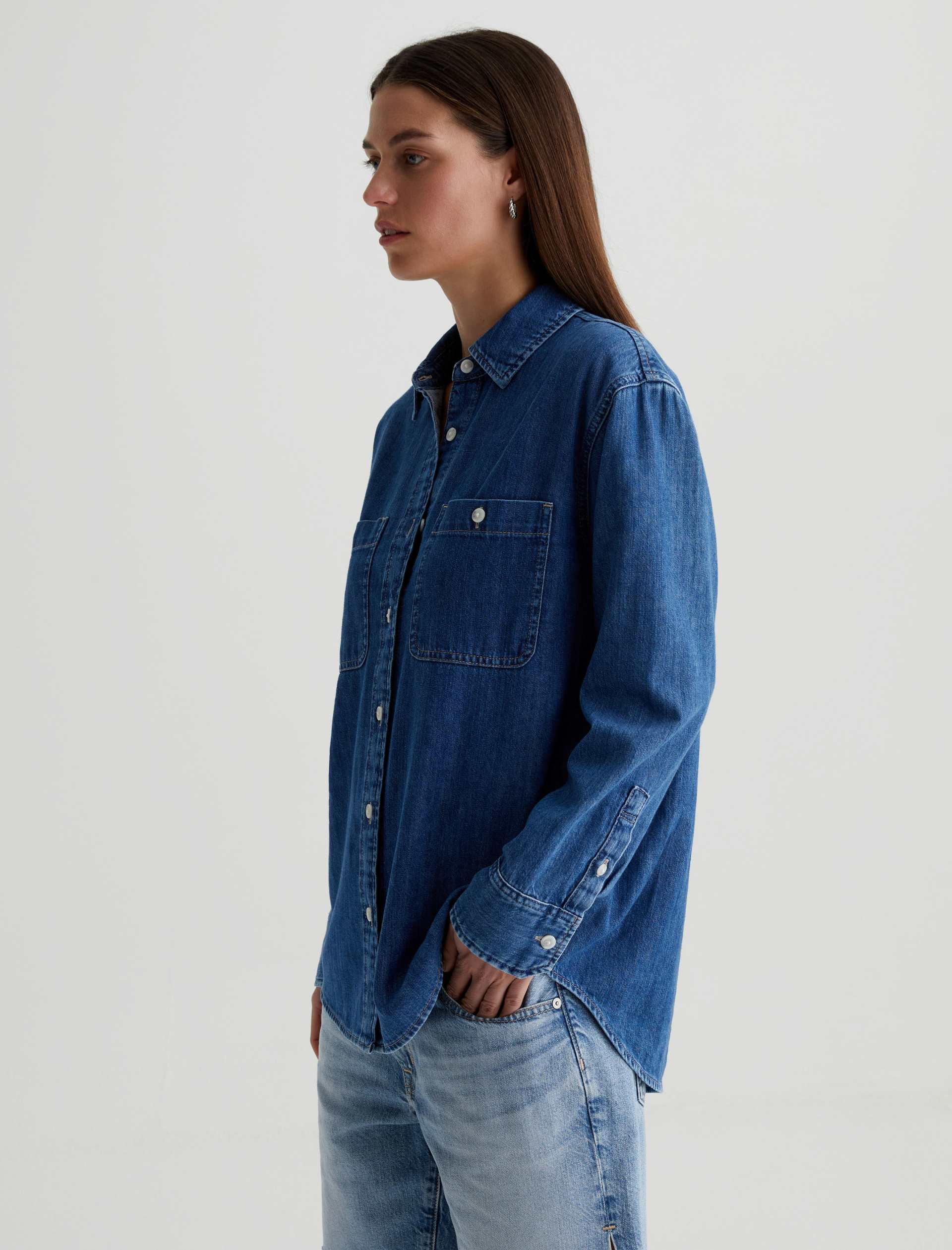 The Leny relaxed-fit shirt has a cool, effortless look in lightweight cotton denim with broken twill construction. Washed to a classic blue shade, this long-sleeve style has button-through patch pockets and pleat detailing at the back.