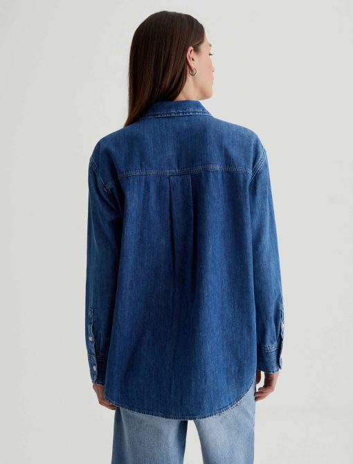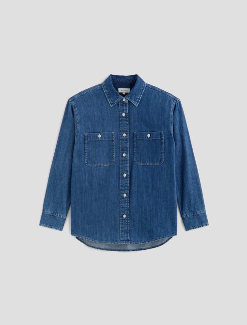 The Leny relaxed-fit shirt has a cool, effortless look in lightweight cotton denim with broken twill construction. Washed to a classic blue shade, this long-sleeve style has button-through patch pockets and pleat detailing at the back.