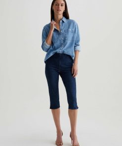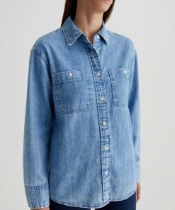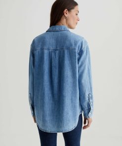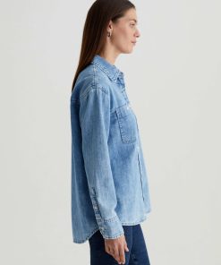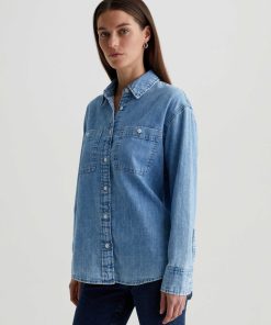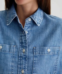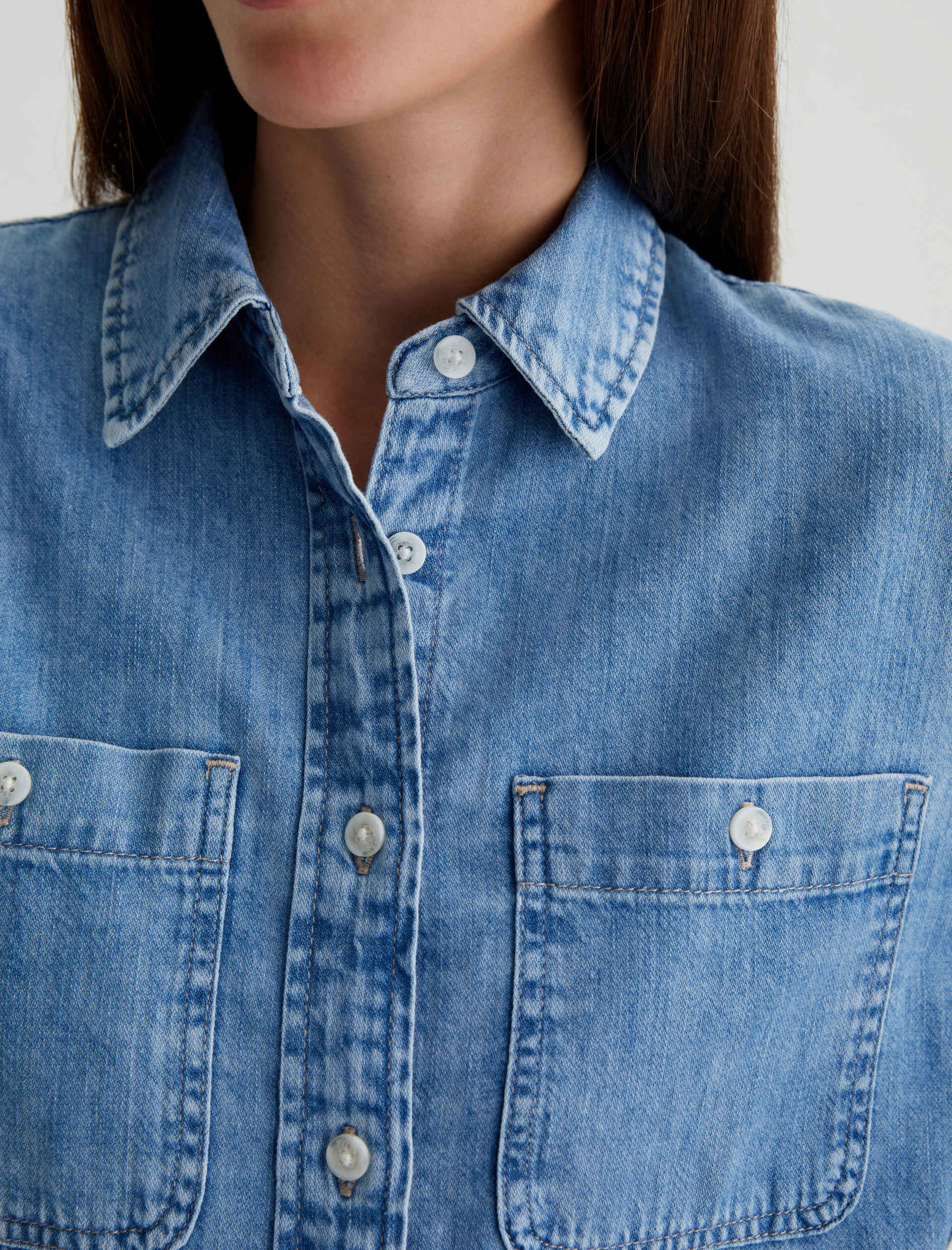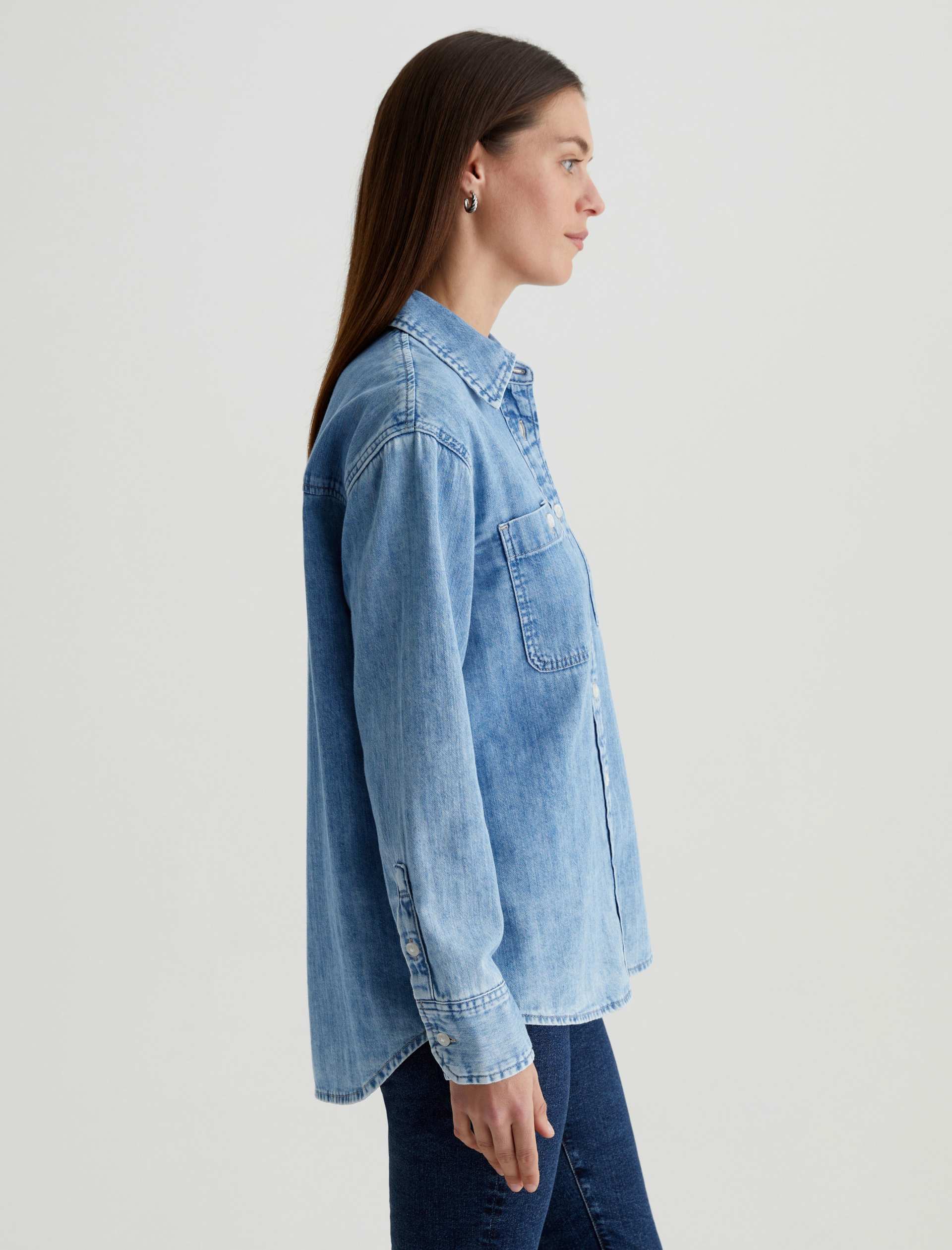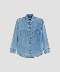 The Leny relaxed-fit shirt has a cool, effortless look in lightweight cotton denim with broken twill construction. Washed to a faded blue, this long-sleeve style has button-through patch pockets and pleat detailing at the back.