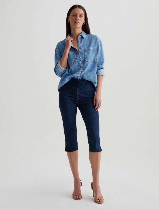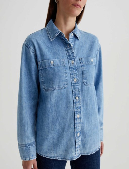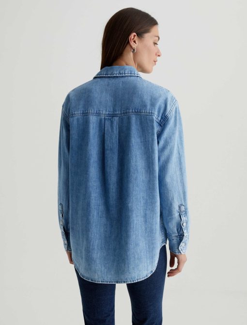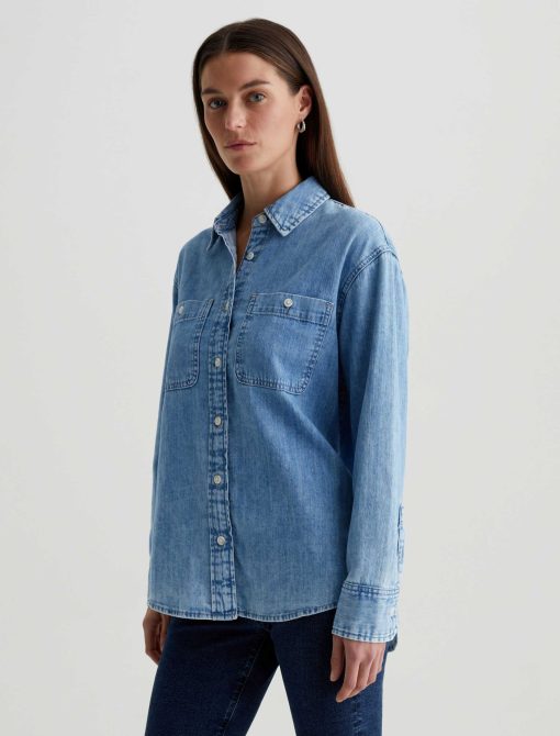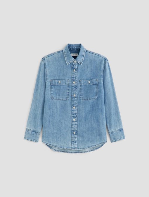 The Leny relaxed-fit shirt has a cool, effortless look in lightweight cotton denim with broken twill construction. Washed to a faded blue, this long-sleeve style has button-through patch pockets and pleat detailing at the back.