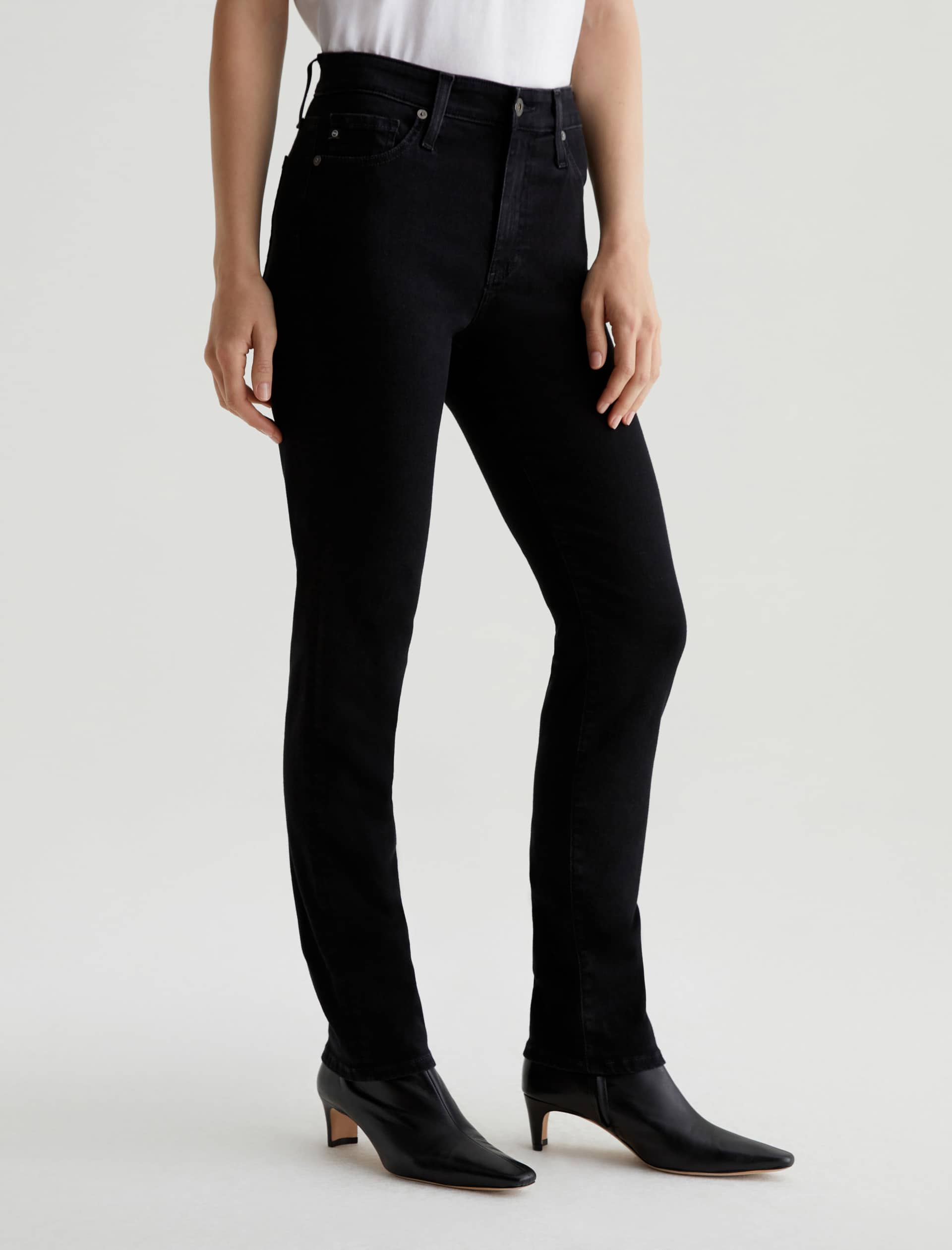 Mari is a mid-rise slim-straight jean in rich, saturated black. Cut to sit right at the natural waist, this style fits easy around the hips and features straight legs with a subtle slim leg openings. These women’s five-pocket jeans are designed in 9 oz. True Vant Denim with power stretch for a comfortable, figure-huggi