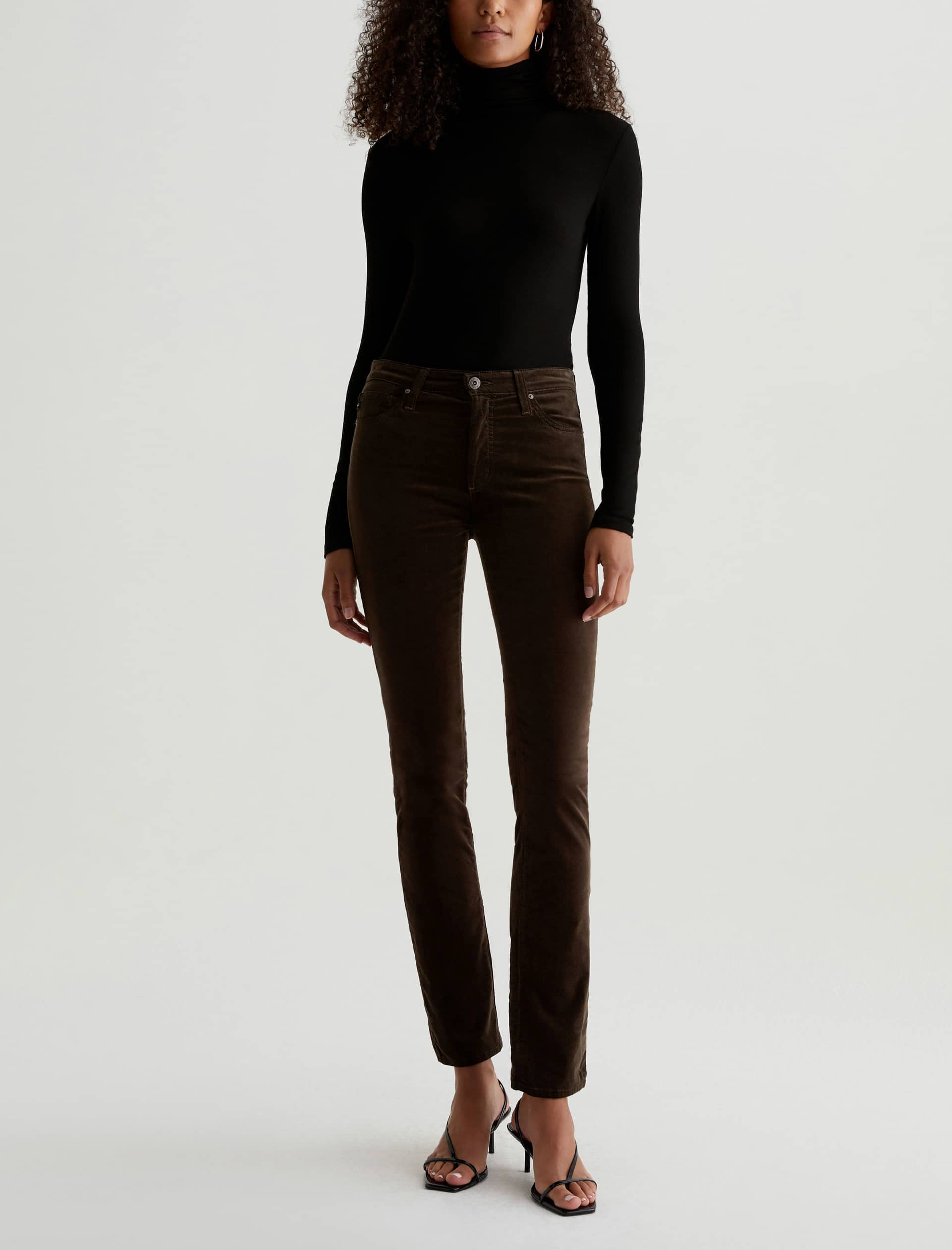Soft and plush in Opulent Stretch Velvet, the Mari Extended updates our mid-rise slim-straight with longer inseams. Featuring a rich brown shade, the high-waisted style fits easy around the hips and has straight legs that slim down toward the leg openings.Some styles previously labeled as ‘High-Rise’ have been reclassi