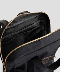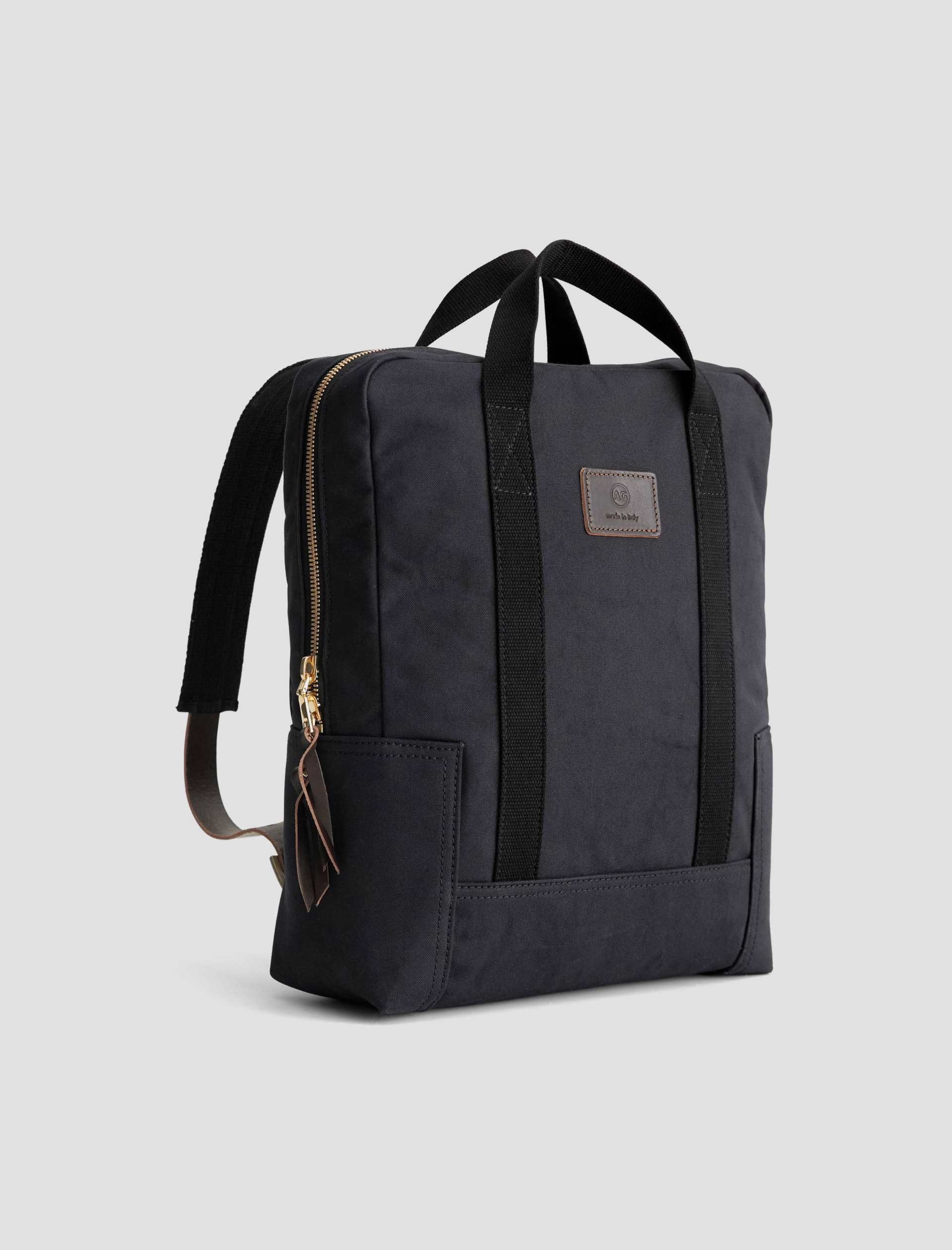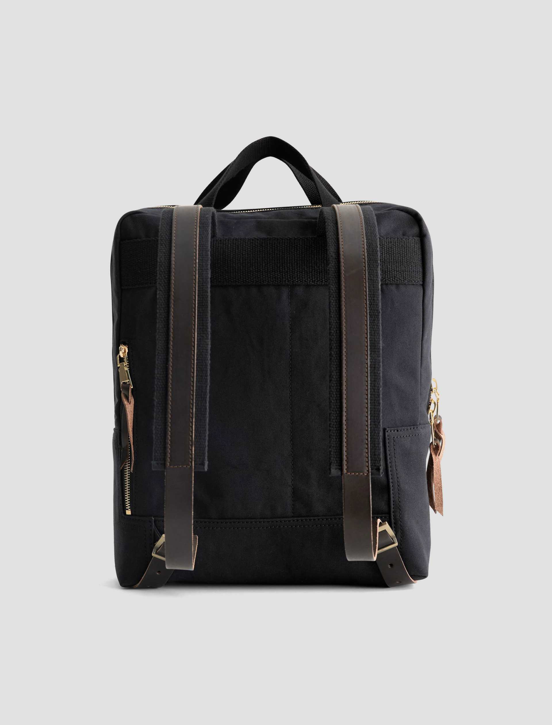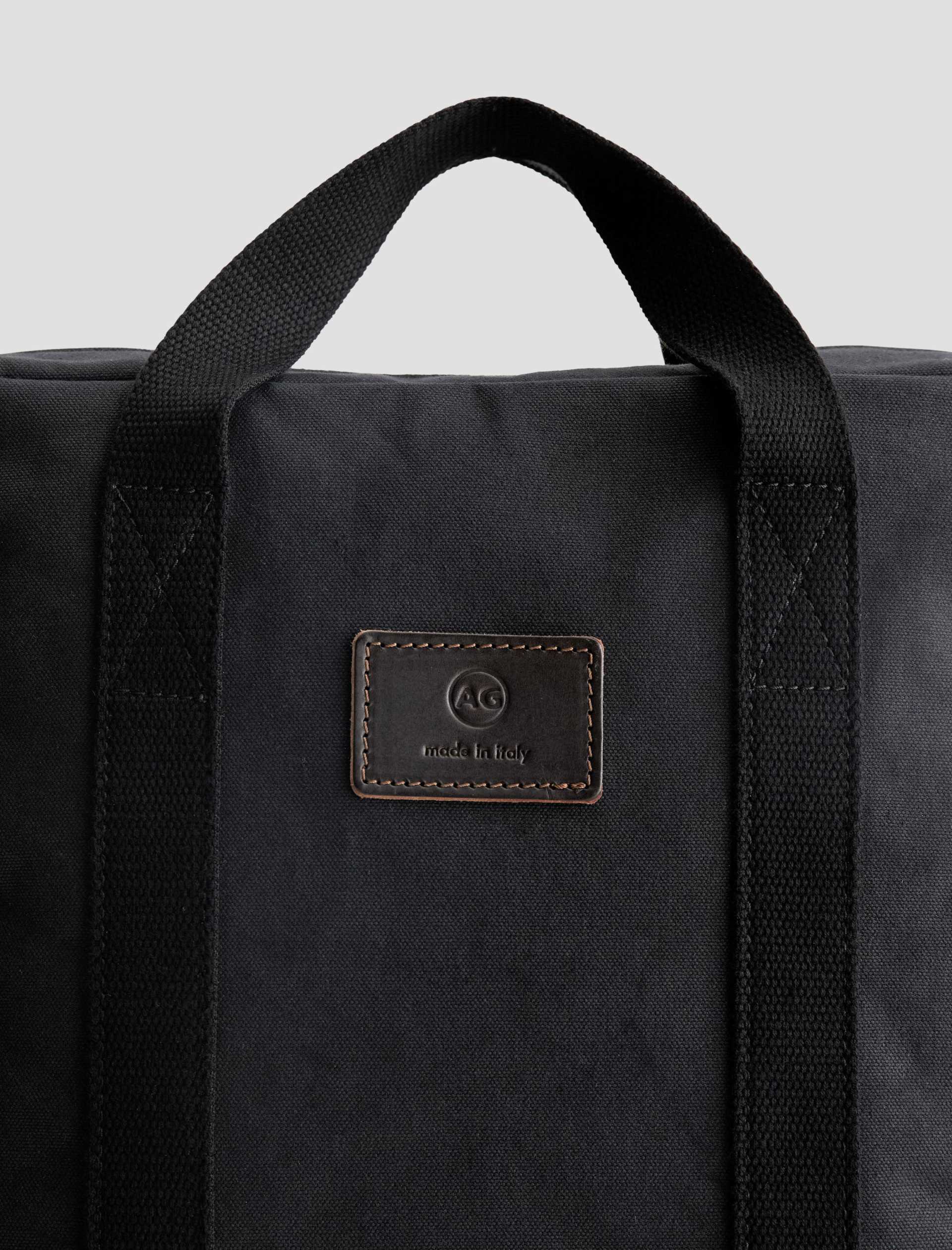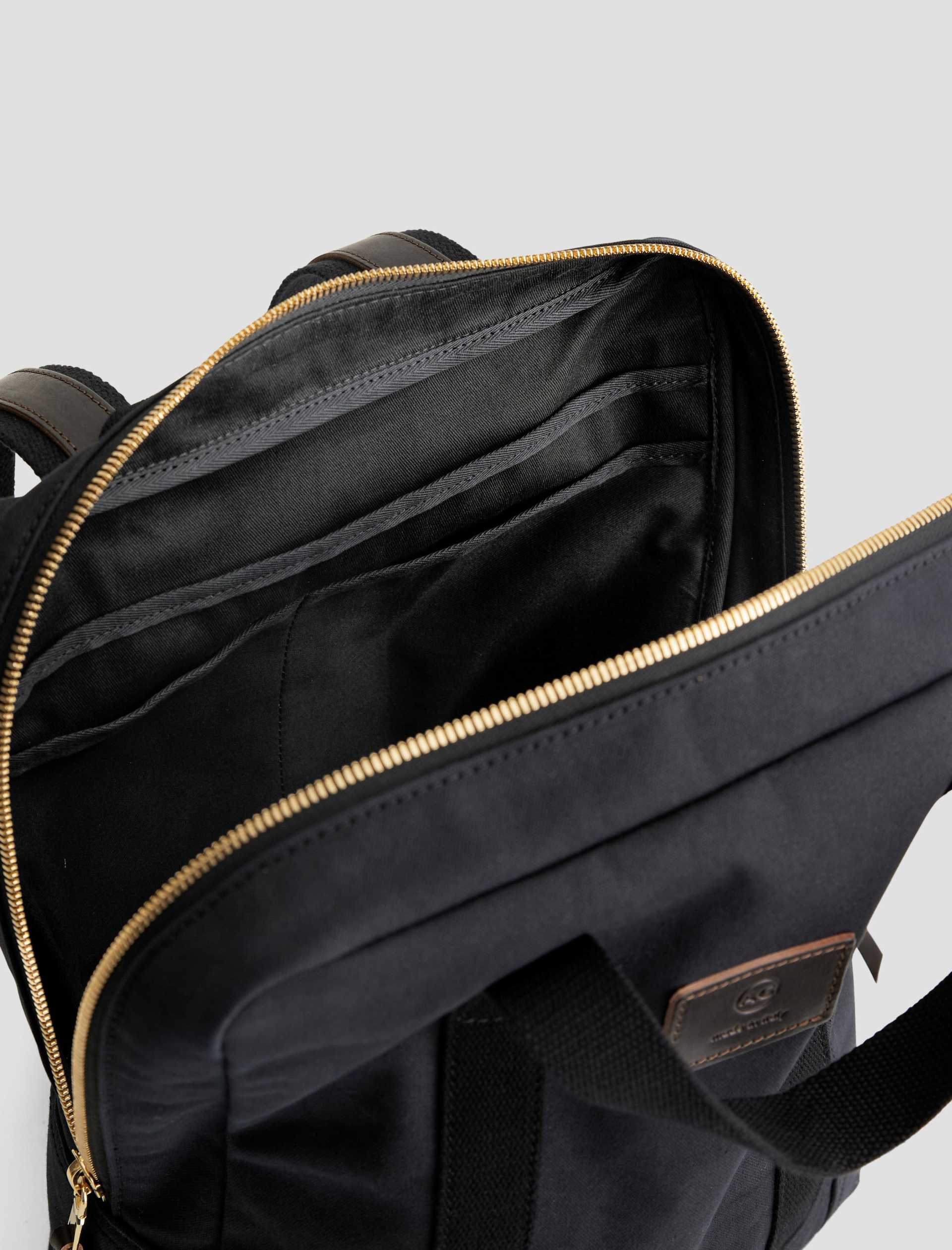 Made by hand in Italy, our Milan Backpack is designed for easy travel and daily commutes. It’s cut from sturdy black canvas and has adjustable shoulder straps that feature dark-brown leather atop heavy-duty cotton webbing. Accented by grab-and-go top handles, the main compartment features a gold-tone zipper, an interio
