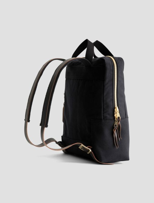 Made by hand in Italy, our Milan Backpack is designed for easy travel and daily commutes. It’s cut from sturdy black canvas and has adjustable shoulder straps that feature dark-brown leather atop heavy-duty cotton webbing. Accented by grab-and-go top handles, the main compartment features a gold-tone zipper, an interio