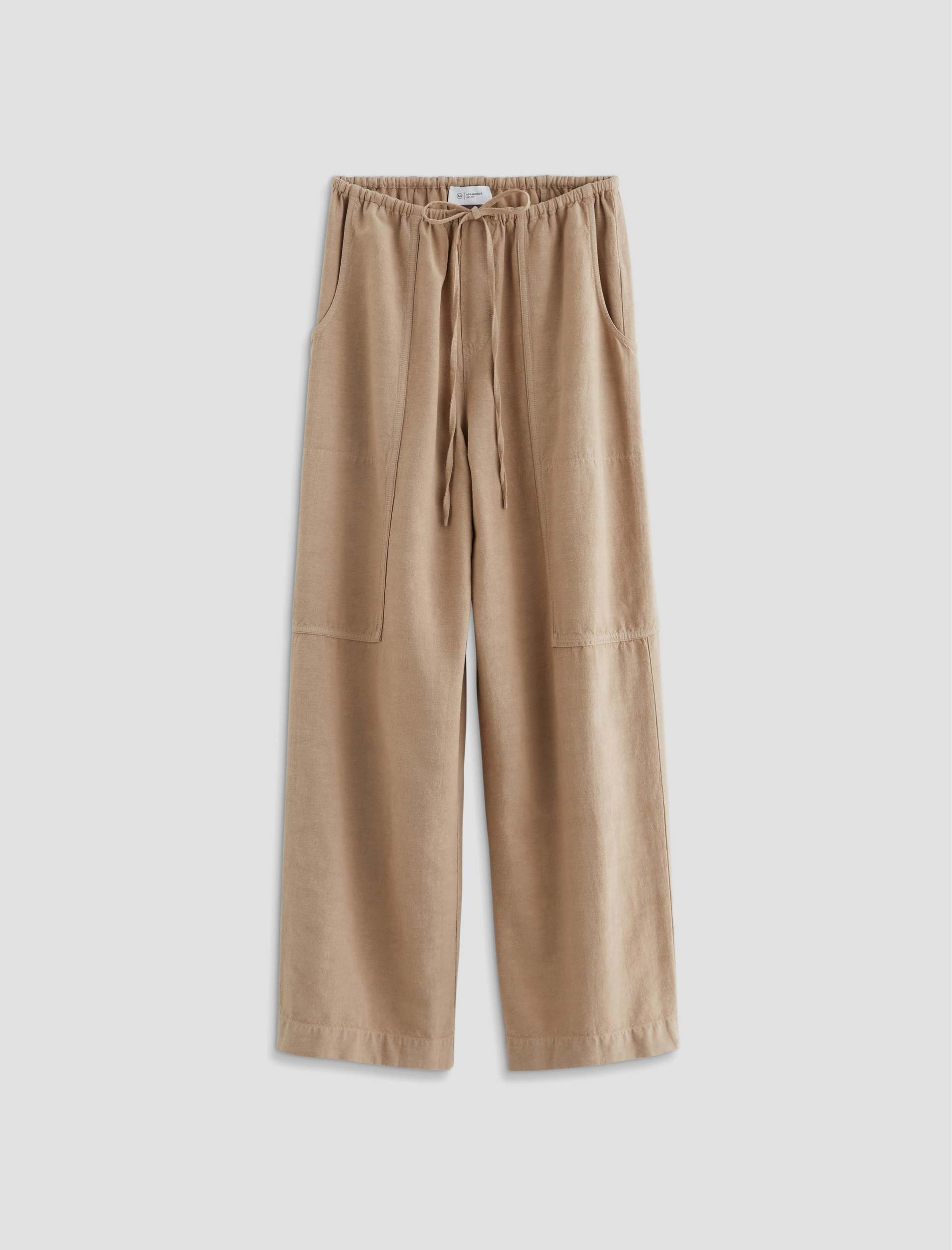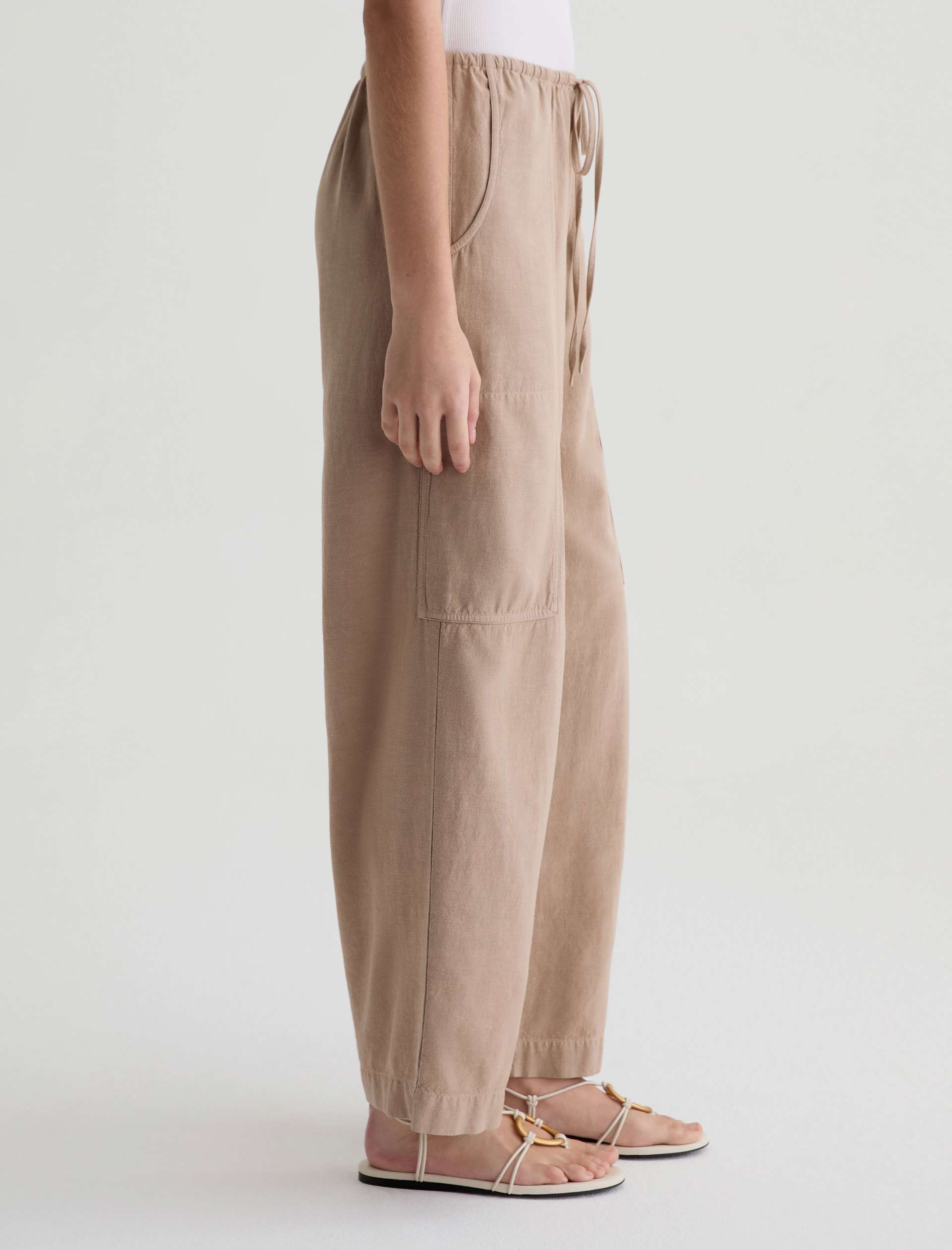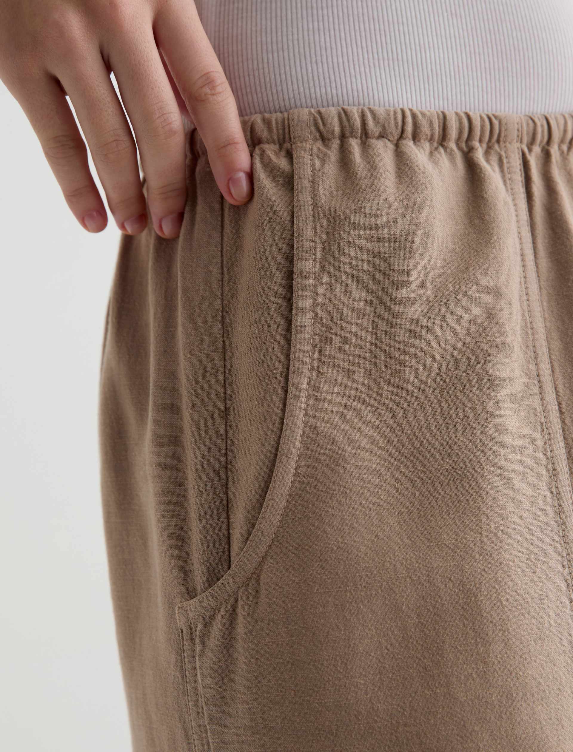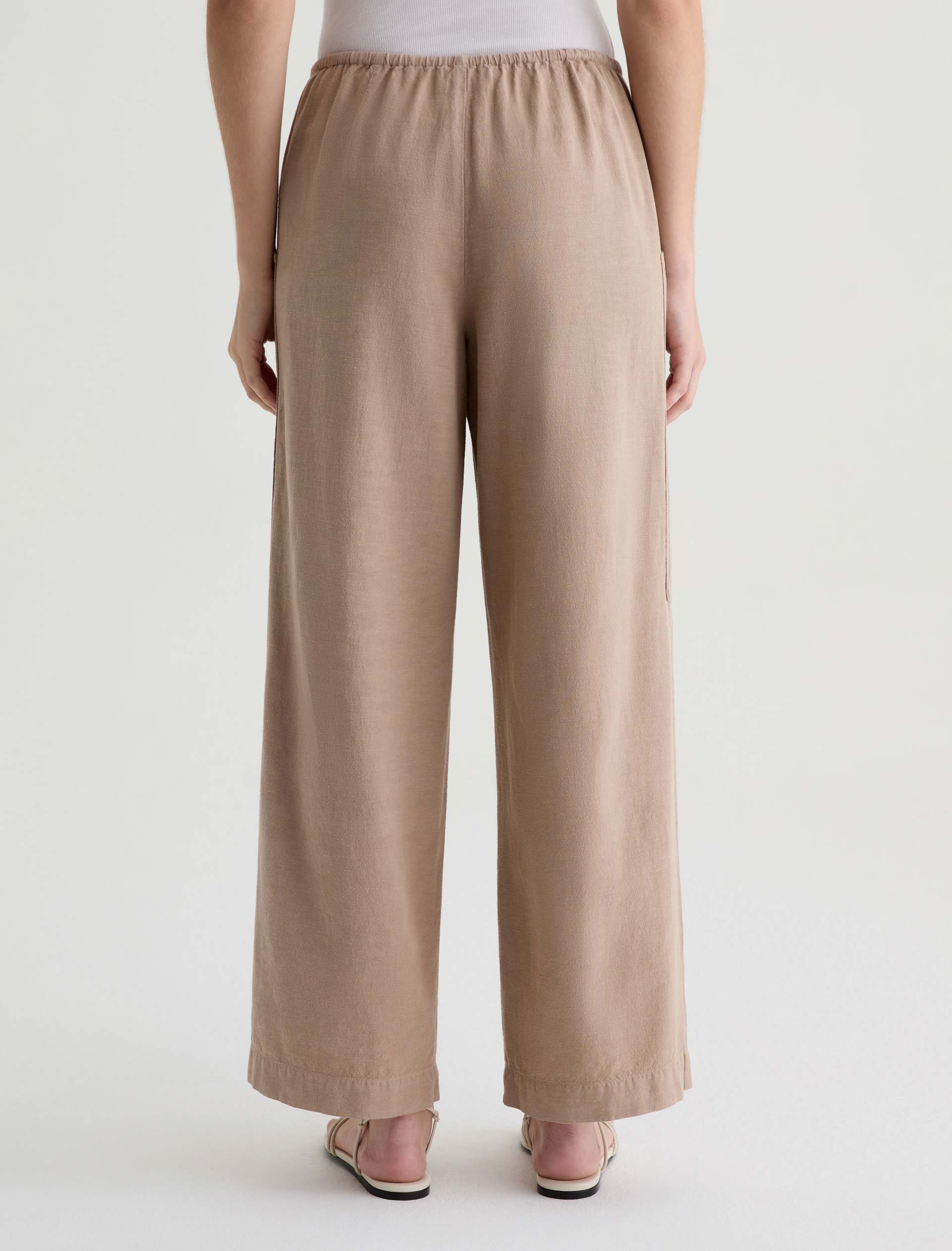 Our Nina is a high-rise, pull-on silhouette crafted from a breathable linen blend for added softness and drape. This Simple Taupe silhouette is designed for all-day comfort, even during your most active moments.