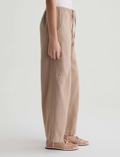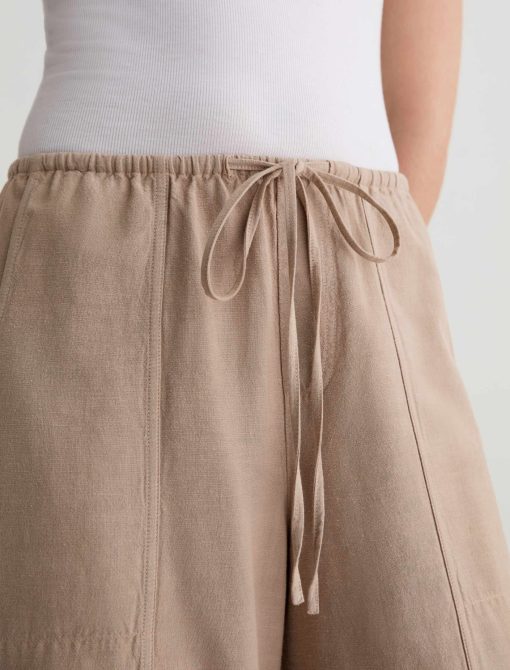 Our Nina is a high-rise, pull-on silhouette crafted from a breathable linen blend for added softness and drape. This Simple Taupe silhouette is designed for all-day comfort, even during your most active moments.