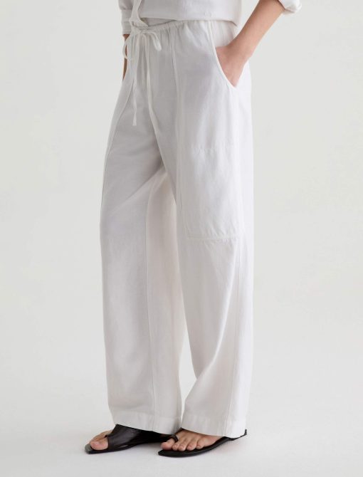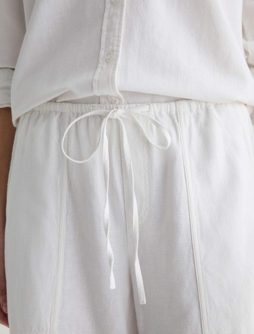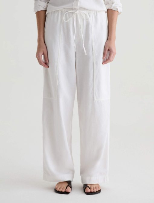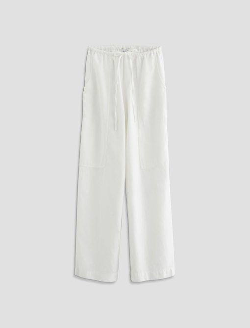 Nina is a white, high-rise, wide-leg, pull-on silhouette, crafted from a lightweight linen for a soft, fluid feel all season long. Effortlessly comfortable.