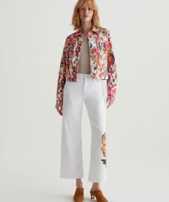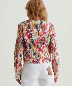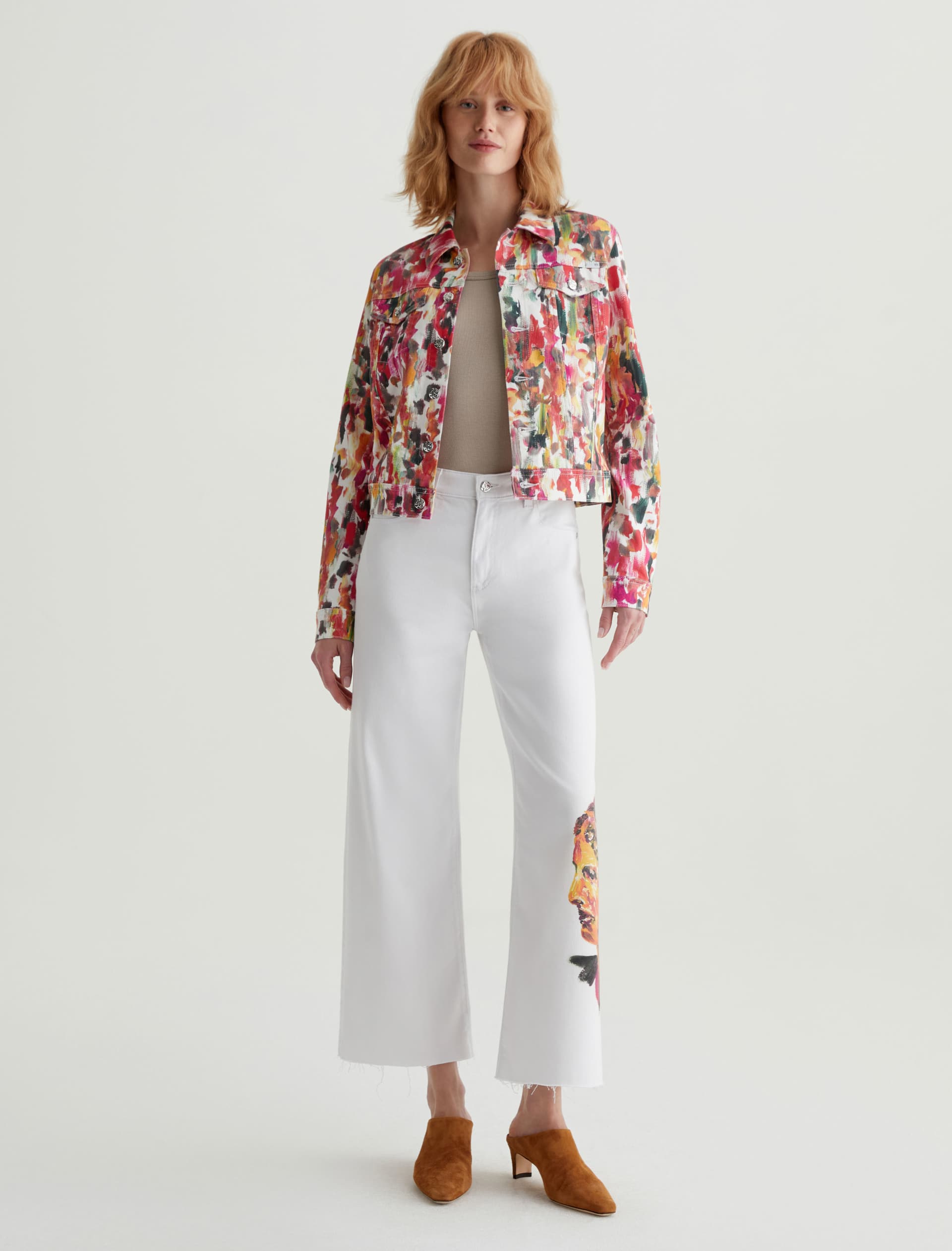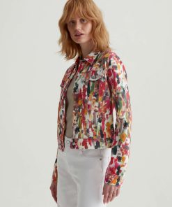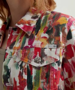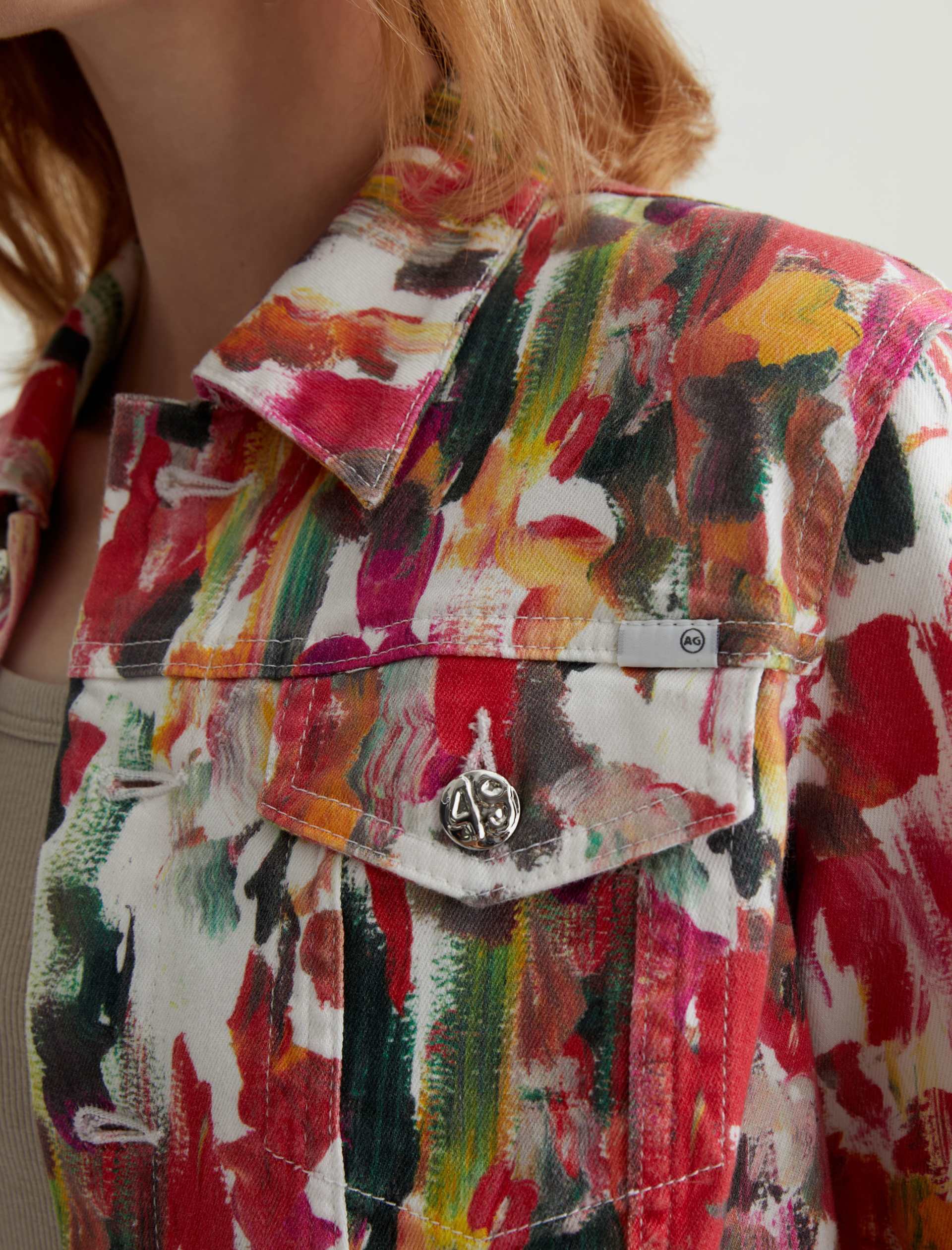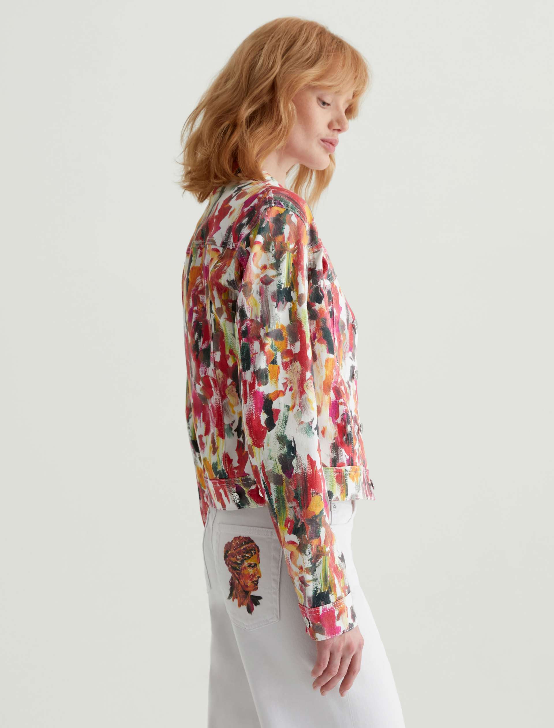 The Robyn Jacket is a women’s trucker with a slim fit, flap pockets, and sturdy metal hardware. It’s crafted from 10 oz. Superior Stretch Twill for a comfortable feel. About the Art Project print: This original design features an Impressionist-inspired look in a rich palette of red, magenta, green, and gold. Short, qui