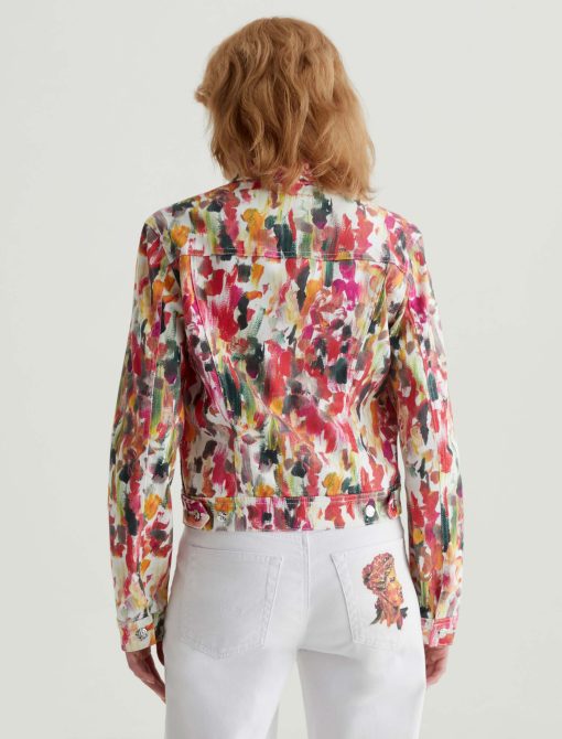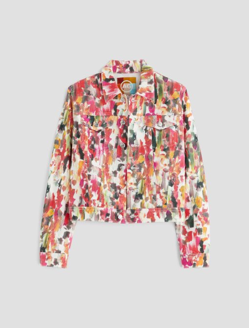 The Robyn Jacket is a women’s trucker with a slim fit, flap pockets, and sturdy metal hardware. It’s crafted from 10 oz. Superior Stretch Twill for a comfortable feel. About the Art Project print: This original design features an Impressionist-inspired look in a rich palette of red, magenta, green, and gold. Short, qui