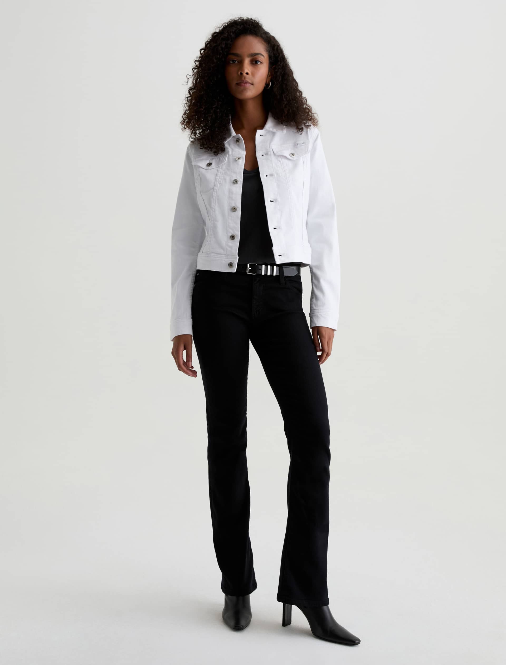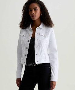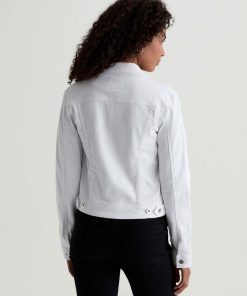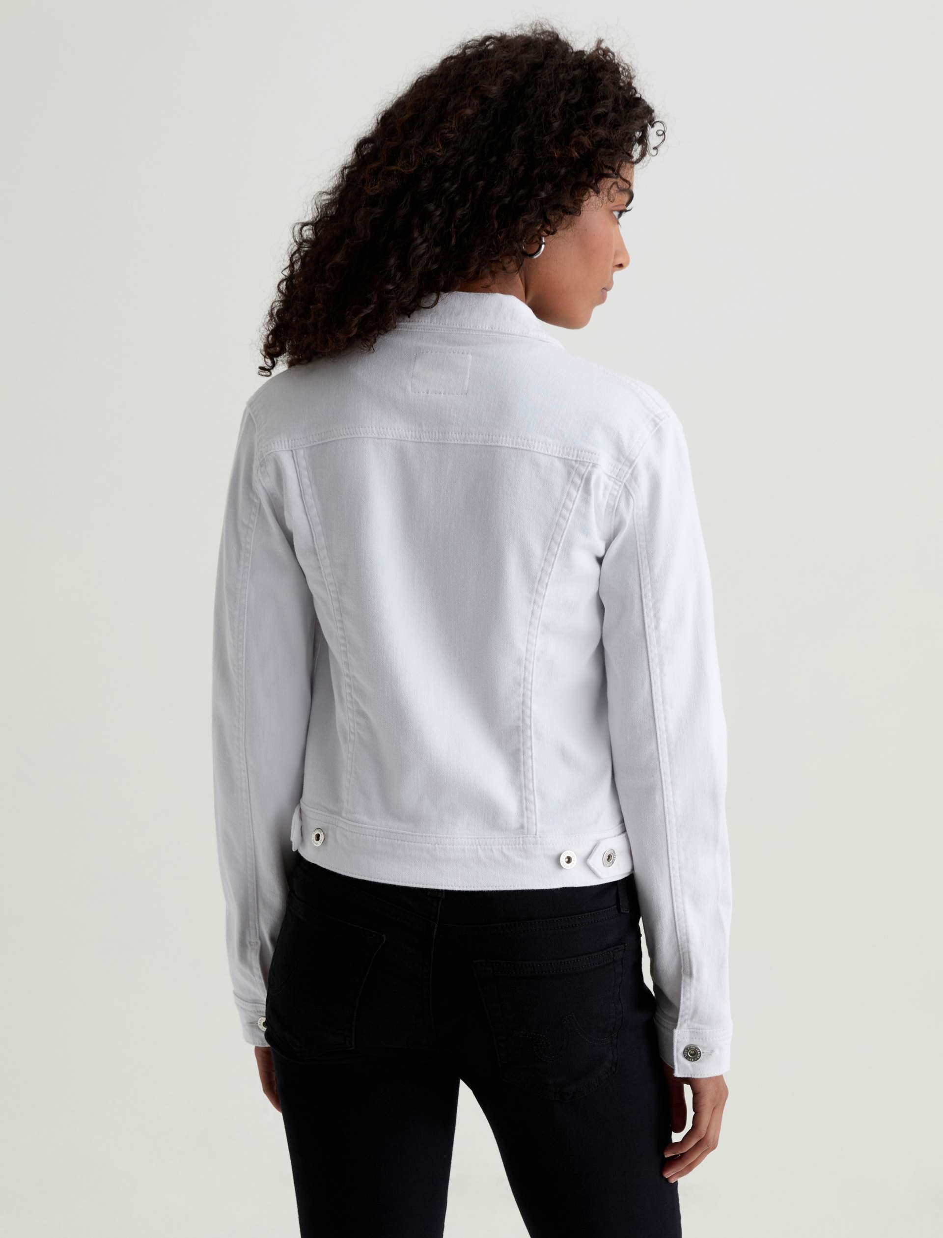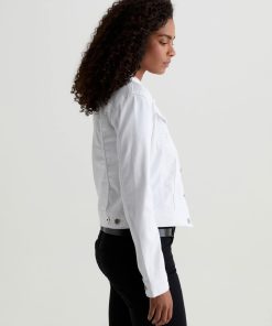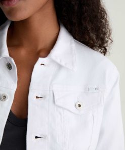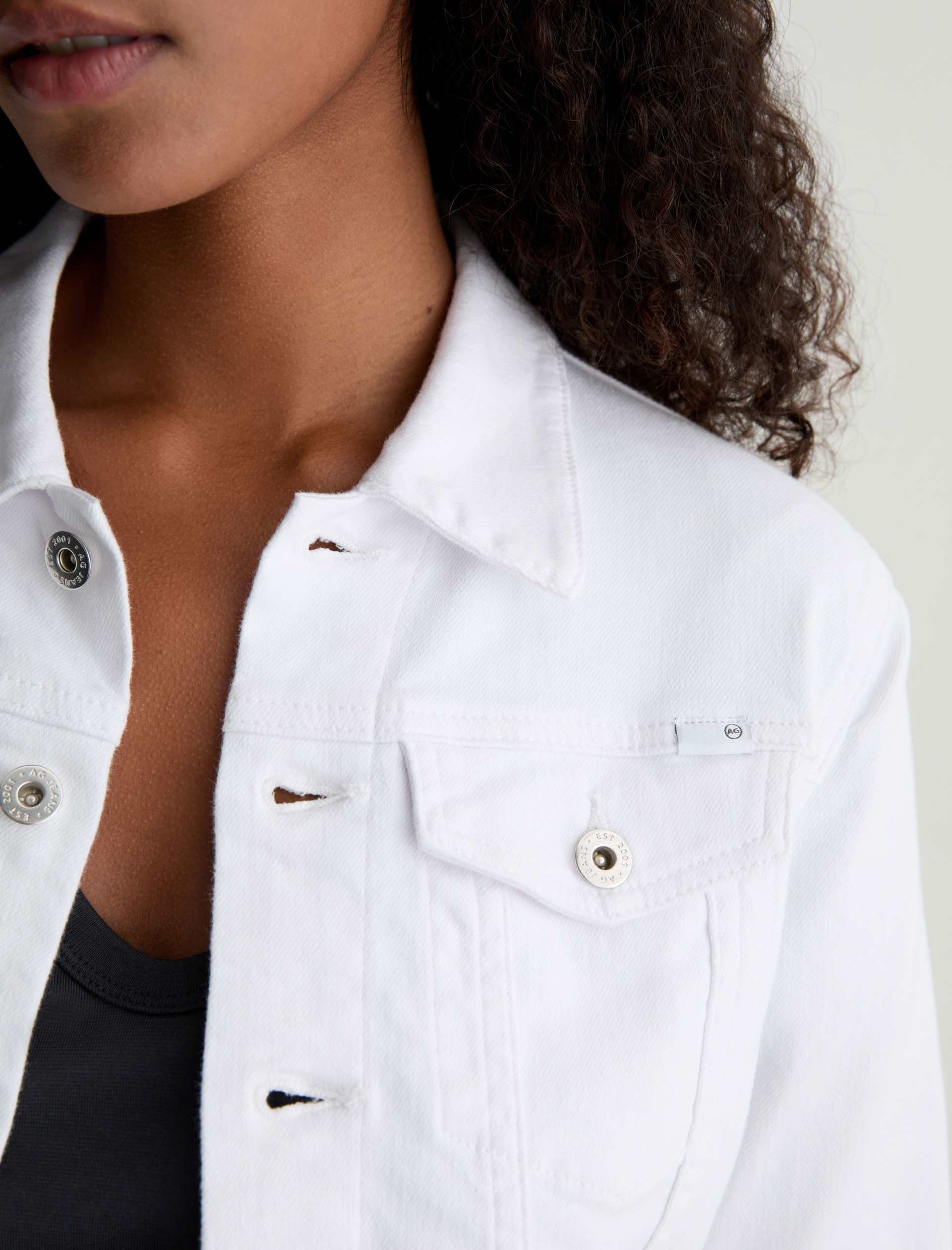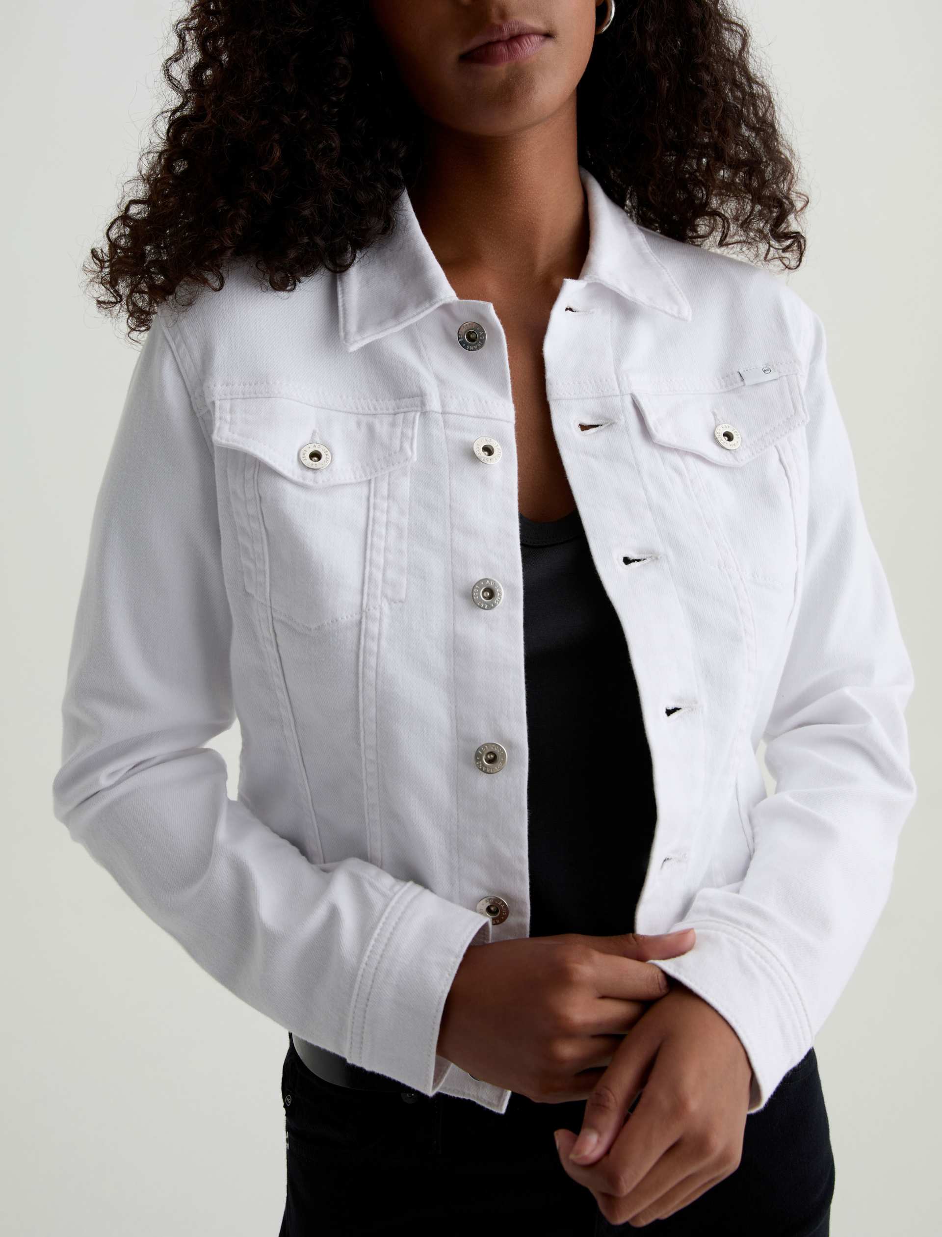 The Robyn Jacket is a slim-cut jean jacket for women, done here in white. Fitted yet comfortable, this long-sleeve layering piece has an easy feel in 10.25 oz Cloud Soft Stretch Denim, an exclusive AG Cloud Soft Denim™ fabric that’s designed to get more comfortable with every wear.Cloud Soft Stretch Denim, 10.25 oz. 93