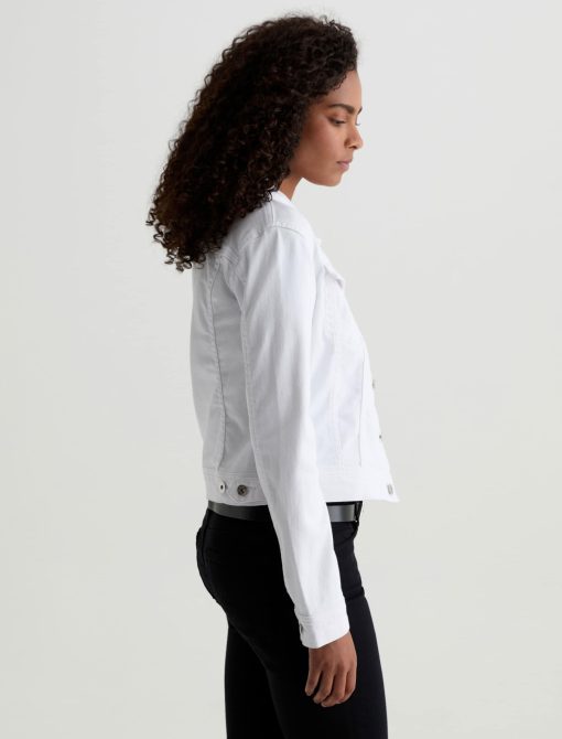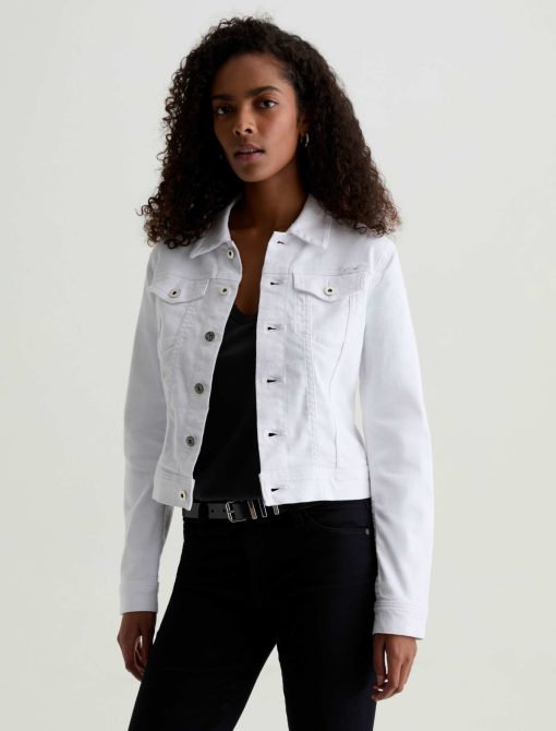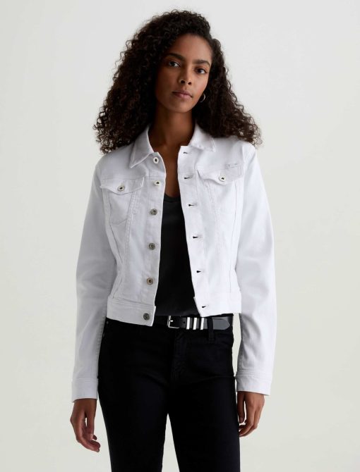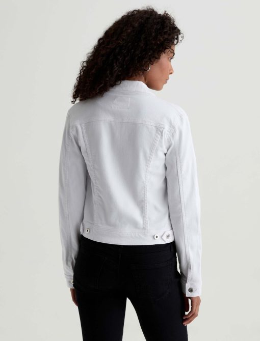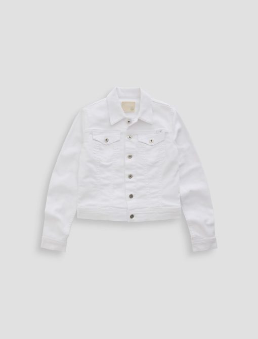 The Robyn Jacket is a slim-cut jean jacket for women, done here in white. Fitted yet comfortable, this long-sleeve layering piece has an easy feel in 10.25 oz Cloud Soft Stretch Denim, an exclusive AG Cloud Soft Denim™ fabric that’s designed to get more comfortable with every wear.Cloud Soft Stretch Denim, 10.25 oz. 93