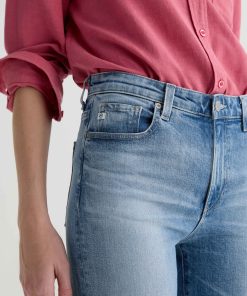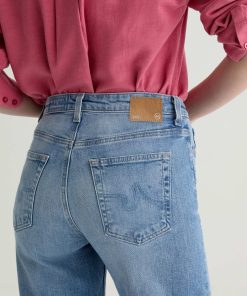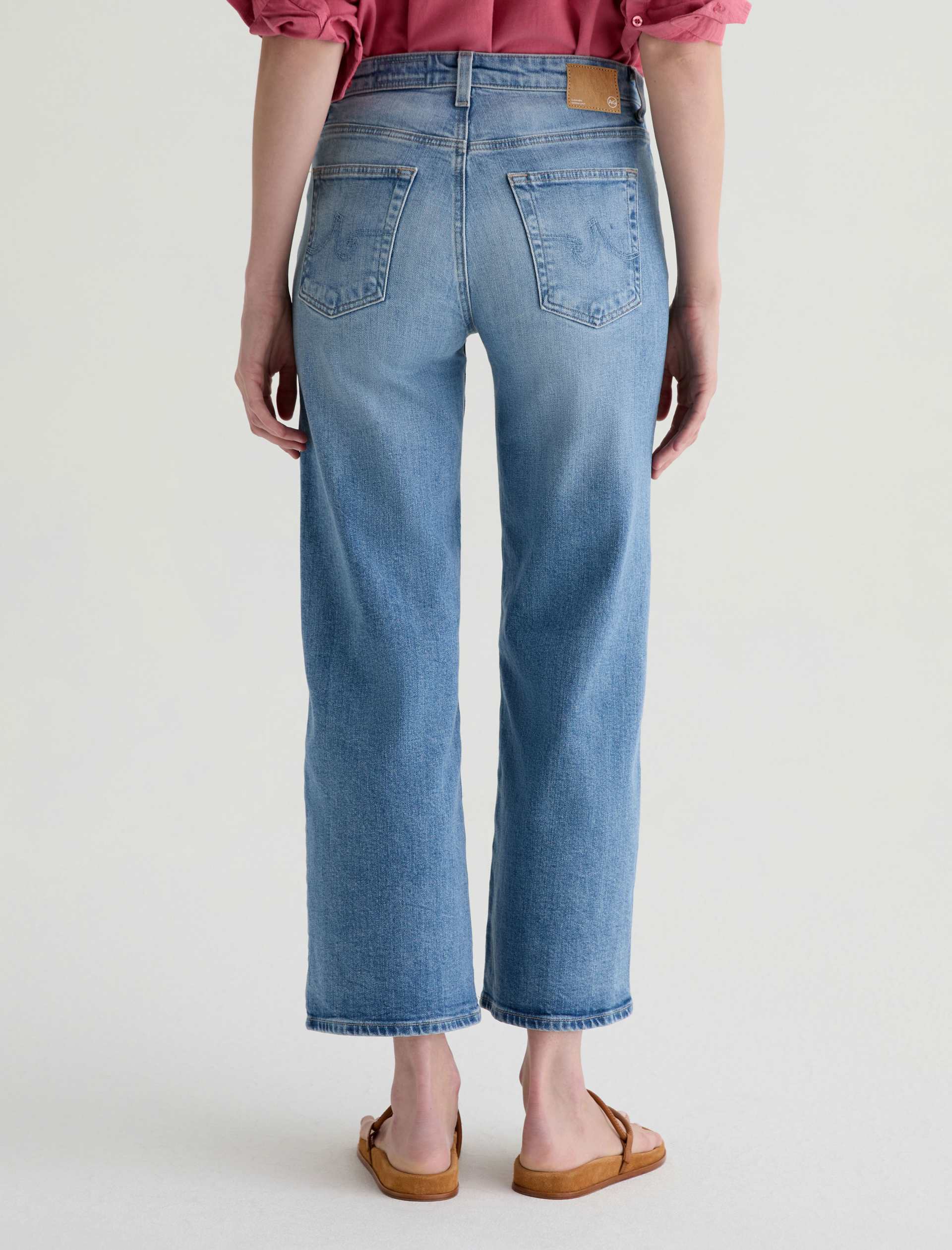 The Saige Wide-Leg crop is a high-rise jean with a wide-leg silhouette and clean hems. This five-pocket style offers a relaxed yet structured look. Crafted from 11.75 oz. Vintage Comfort Stretch Denim, the pair comes in a Helios light wash.